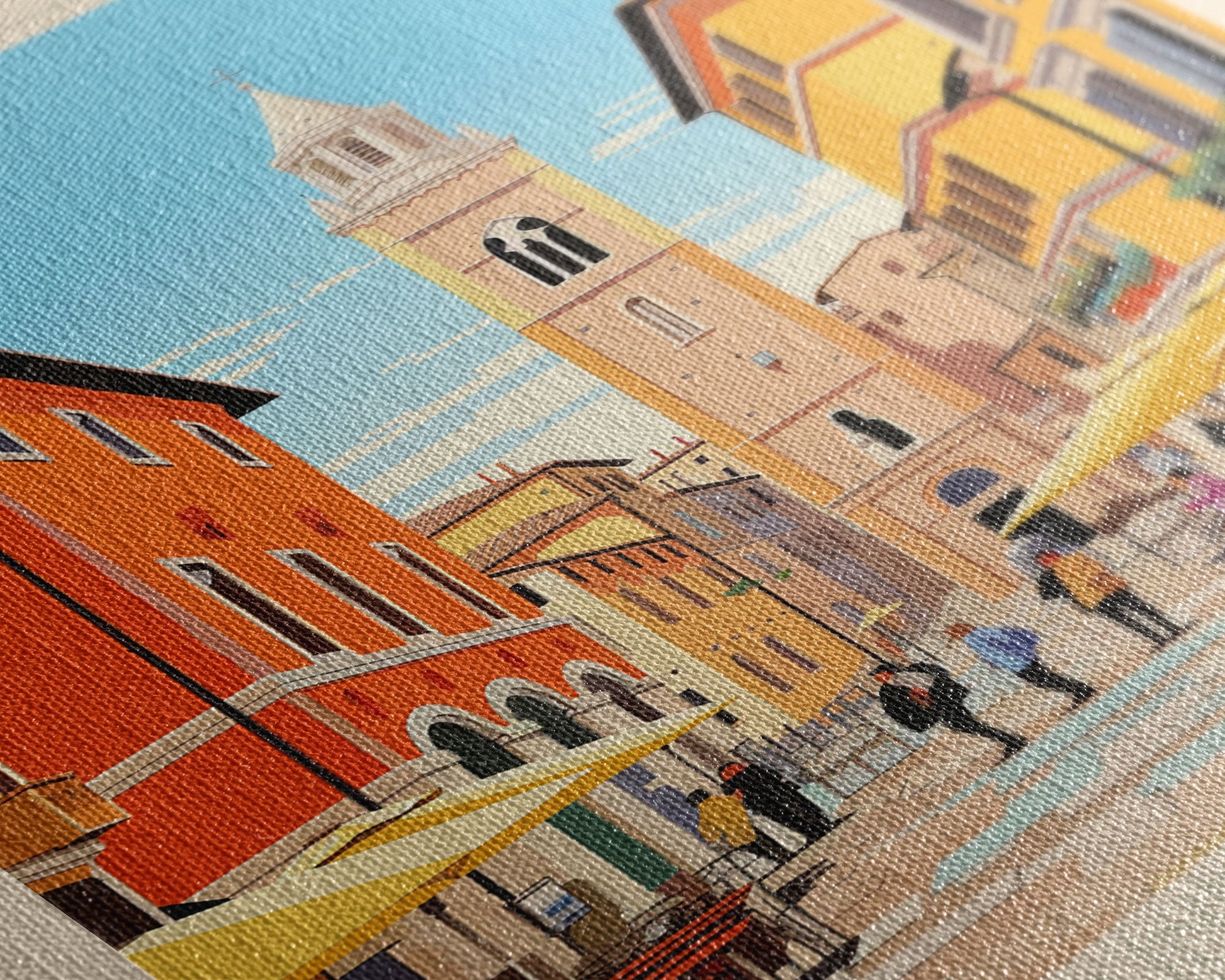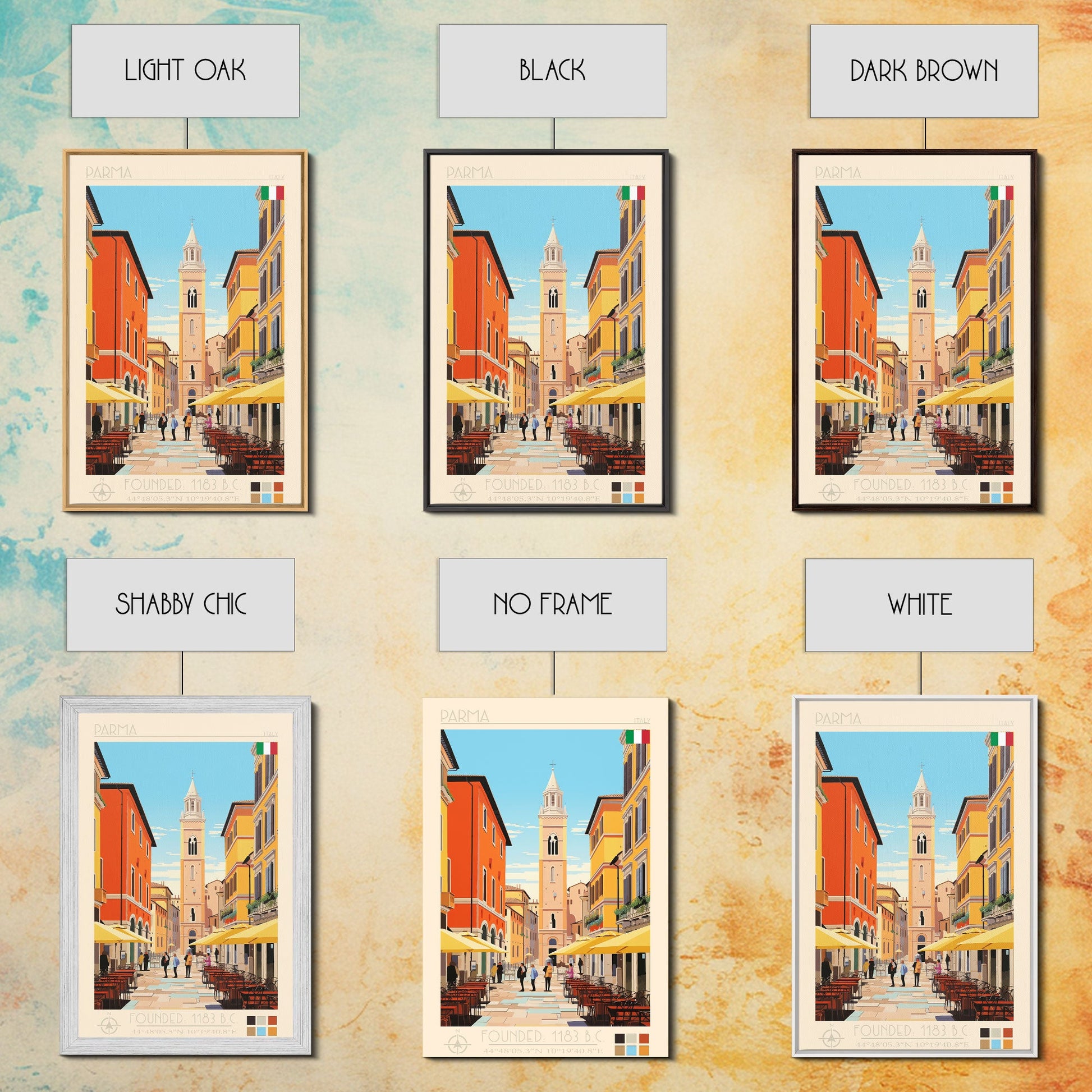 Parma Italy Travel Poster Framed Canvas Print, Midcentury Modern Art, Pop Art Wall Decor, Scenic Wall Art, Bedroom Decoration