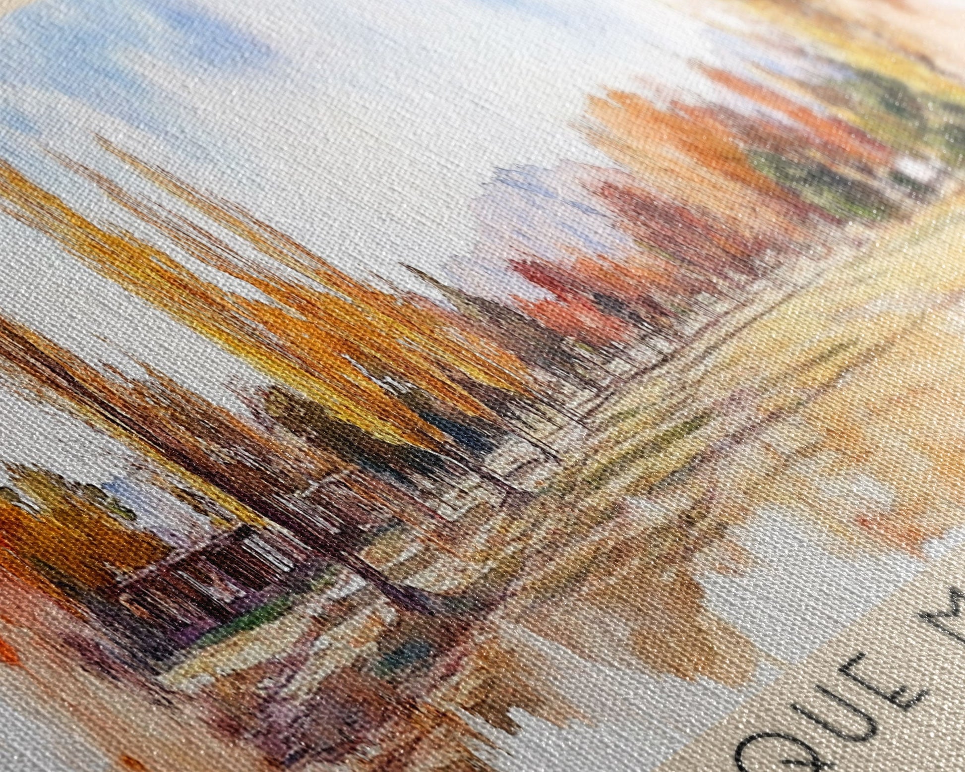 Most of our canvases are made in the USA, with the exception of canvases ordered with the light oak unstained frames, and any large canvases (24x48, 30x60, 16x48 and 20x60) ordered WITH a frame. These are temporarily made in and shipped from Europe, while we try to find a more consistent supplier in the USA.