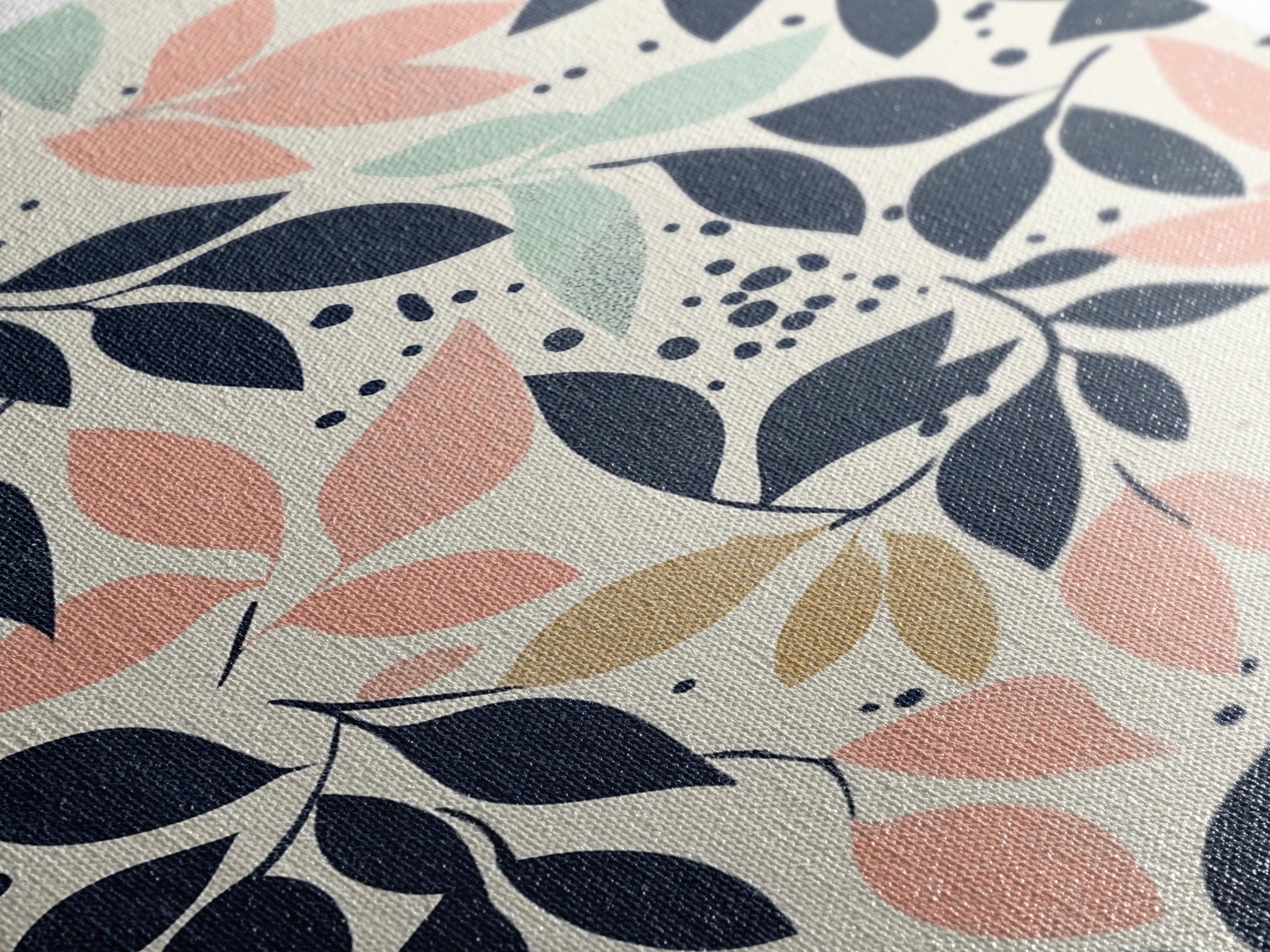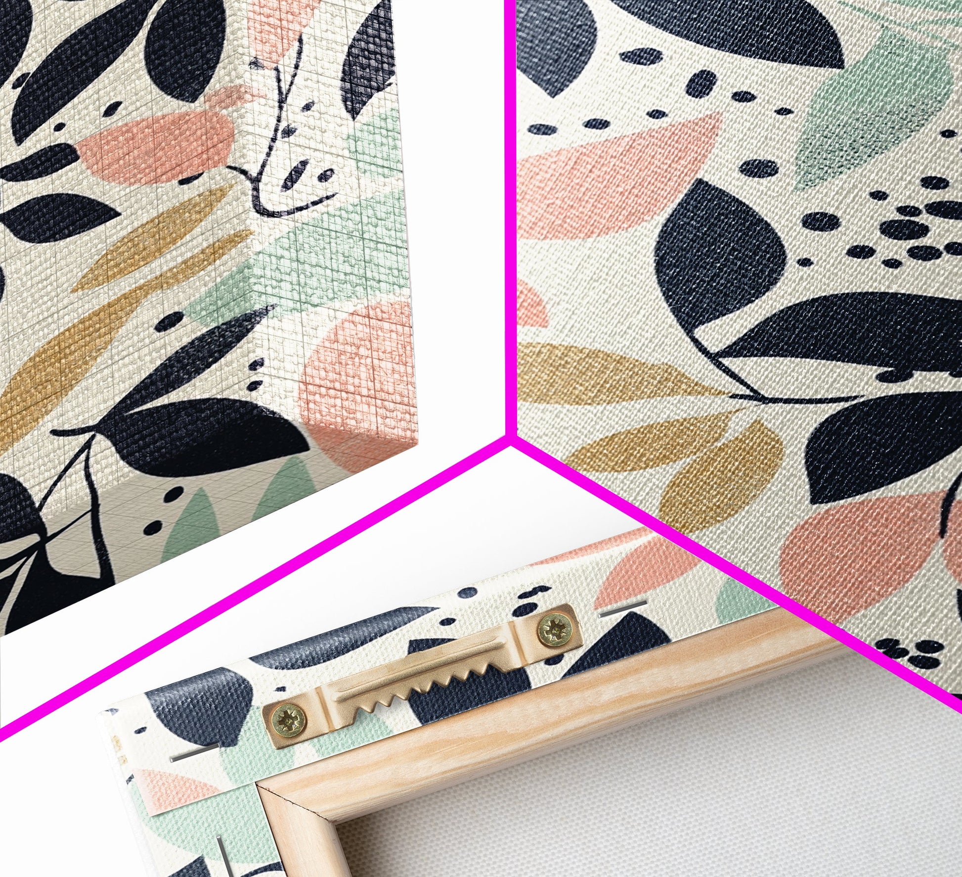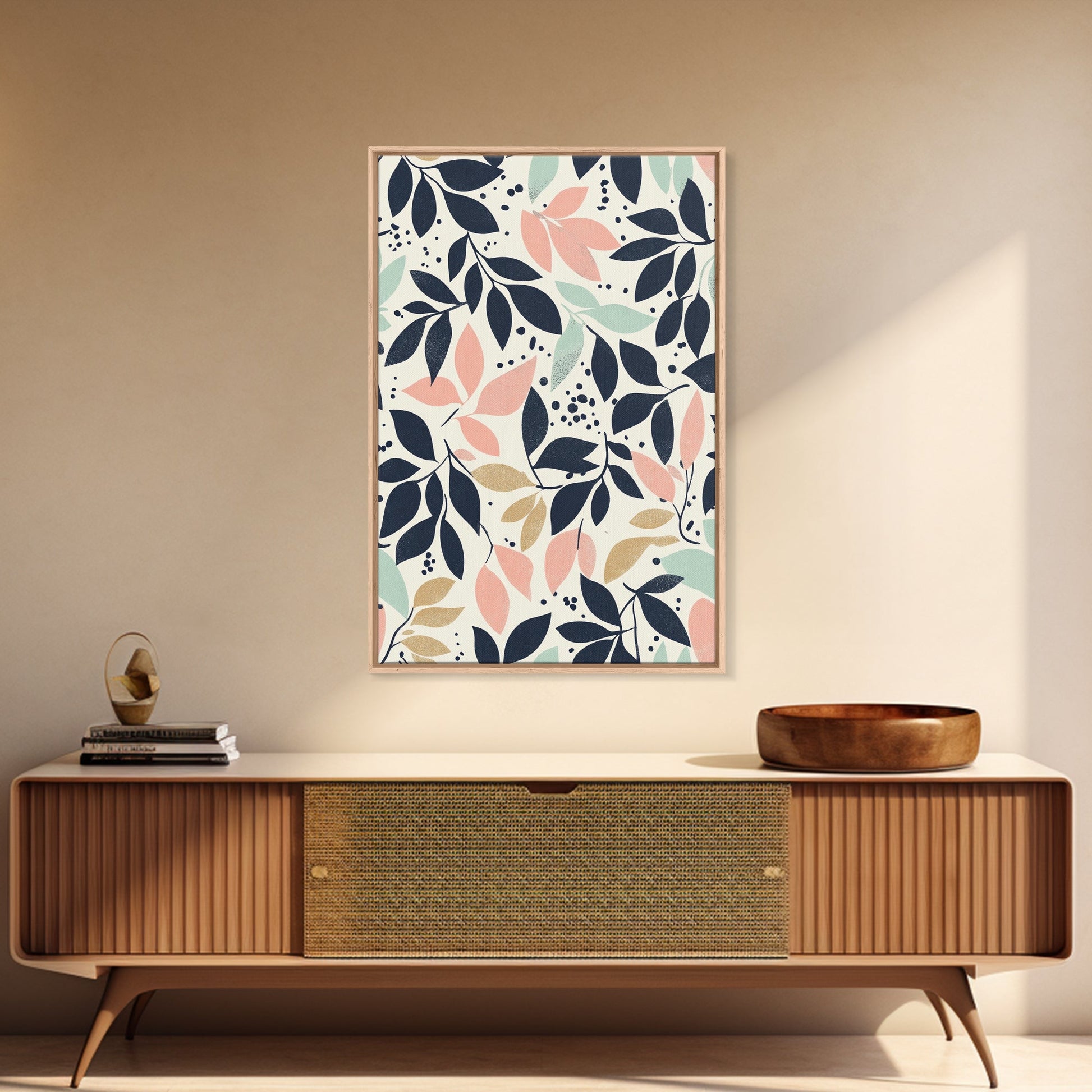Pastel Florel and Botanical Wall Art, Mid Century Modern Leaves Art Print, Wood Frame Wall Art Canvas Print, Canvas Art, Living Room Decor