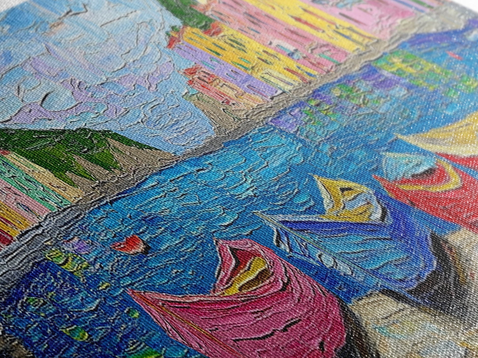 Pastel Row Boats in an Italian Fishing Village, Framed Canvas Print, Original Artwork, Retro Italy Painting, Impasto Style Print