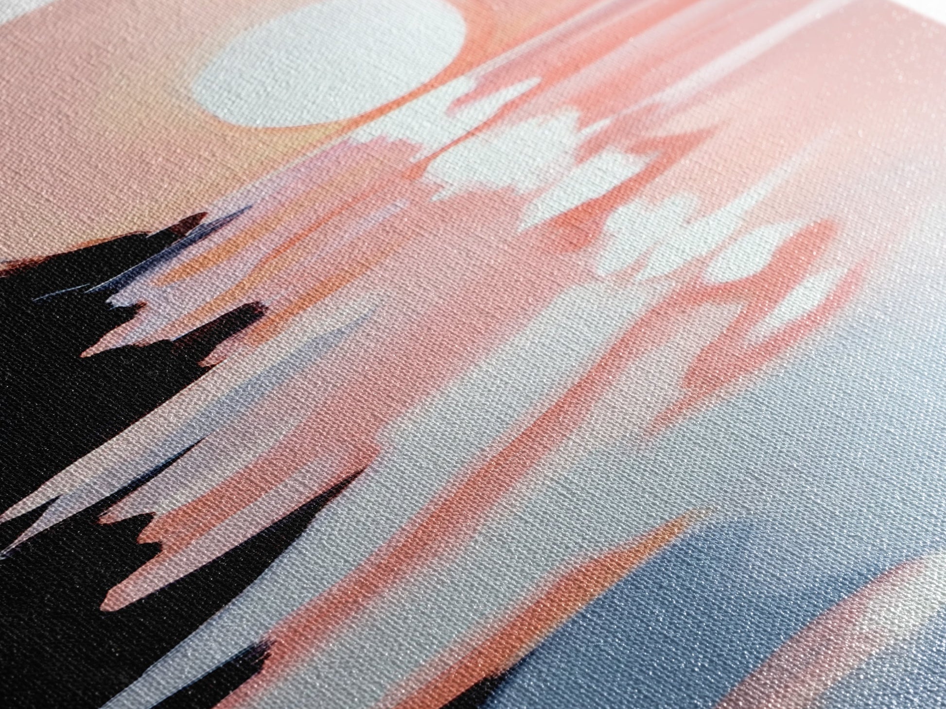 Pastel Sunrise, Abstract Landscape Art, Framed Canvas Print, Beach Wall Decor, Contemporary Coastal Artwork, Relaxing Home Aesthetic