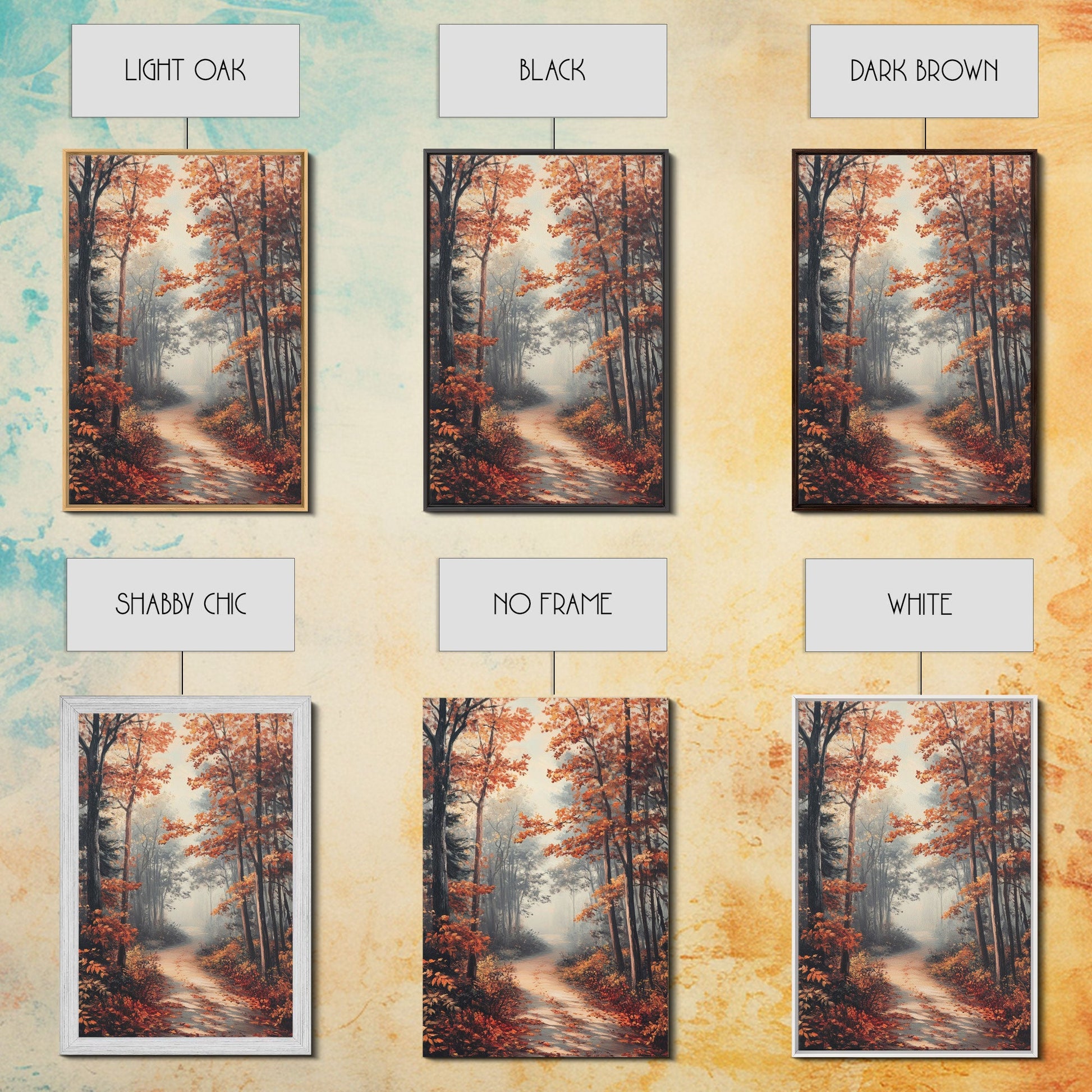 Path Through The Fall Leaves - Framed Canvas Print - Fall Decor - Autumn Gift Idea - Autumn Wall Art - Landscape Painting