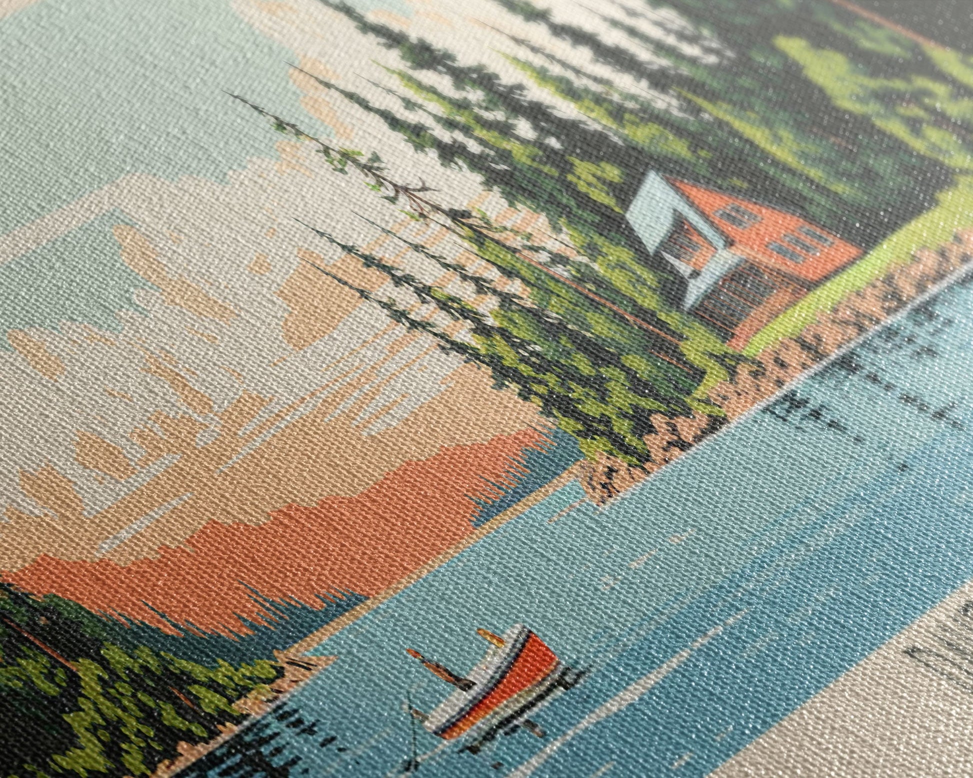 Payette Lake, Idaho Framed Canvas Print, Panoramic Wall Art, Midcentury Modern, Pop Art, Home Decor, Travel Poster, Living Room Art