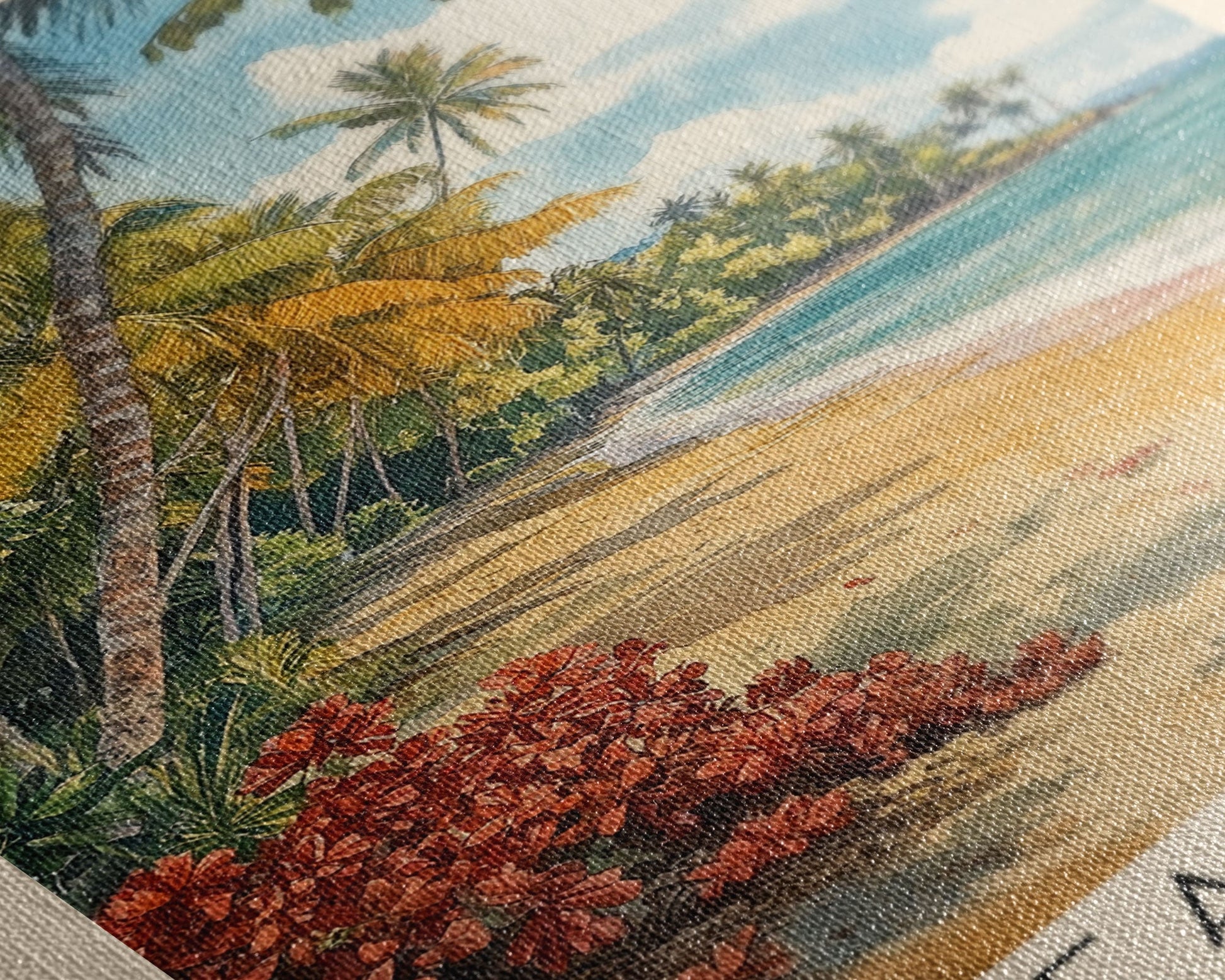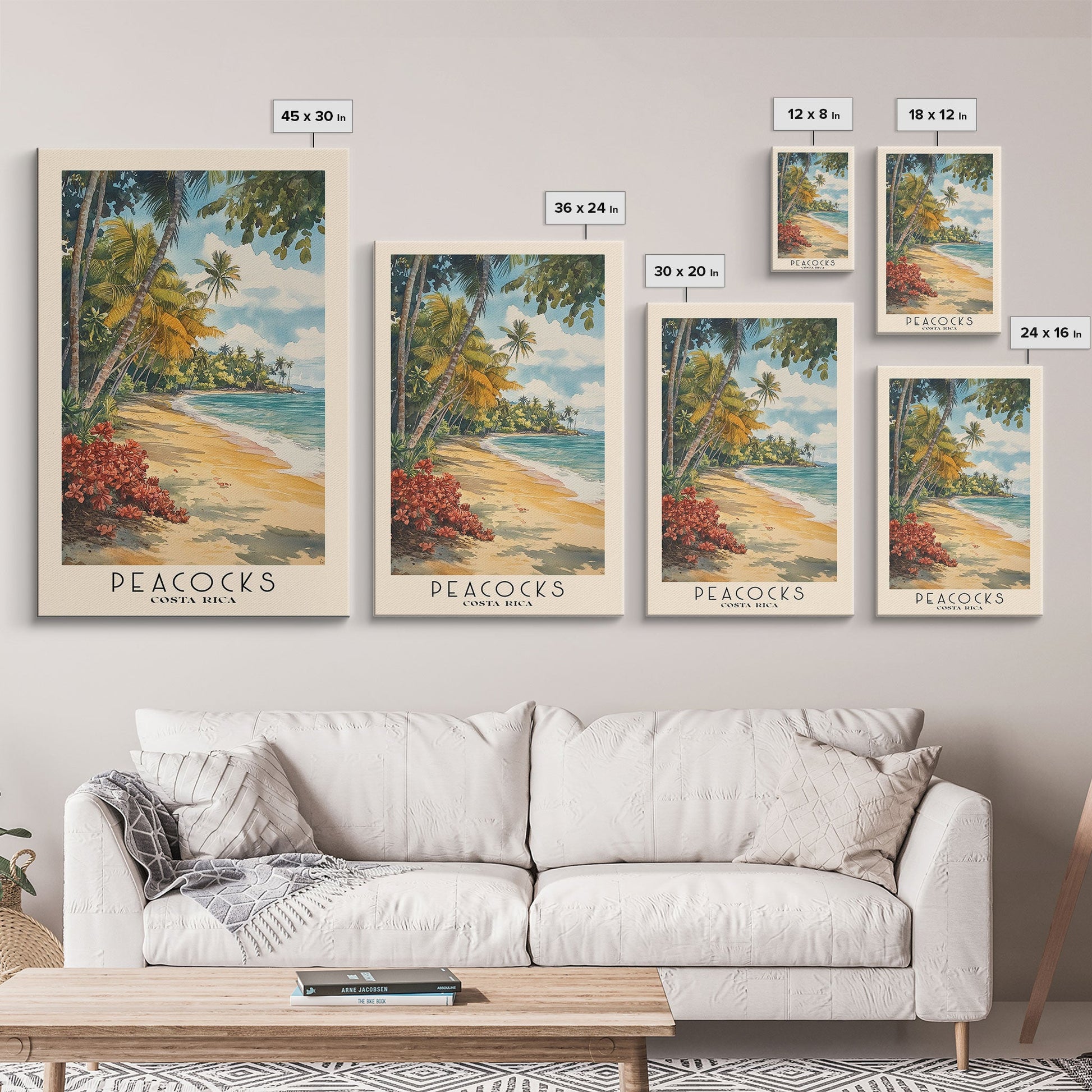 Peacocks, Costa Rica Watercolor Beach Print, Vacation Gift, Costa Rica Wall Art, Framed Canvas Print, Framed Beach Painting