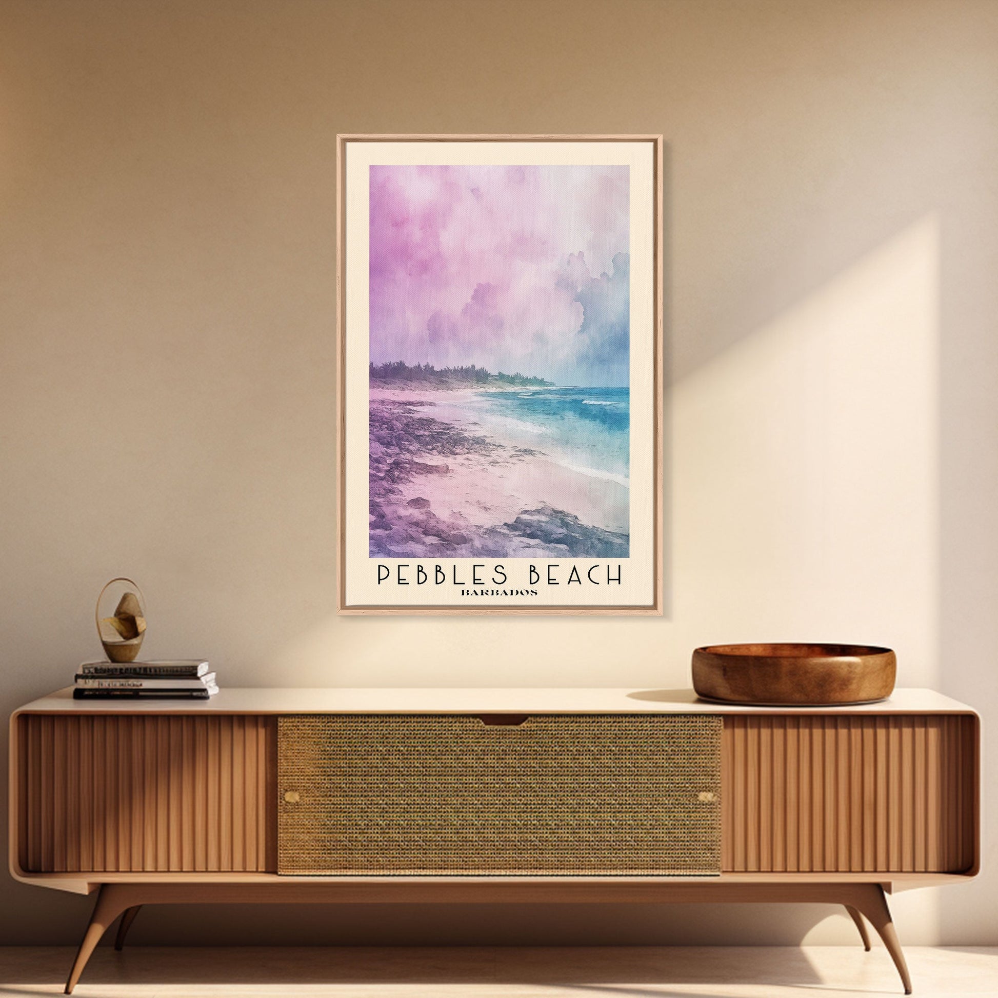 Pebbles Beach, Barbados Watercolor Beach Print, Vacation Gift, Barbados Wall Art, Beach Painting, Beach Decor, Beach Painting