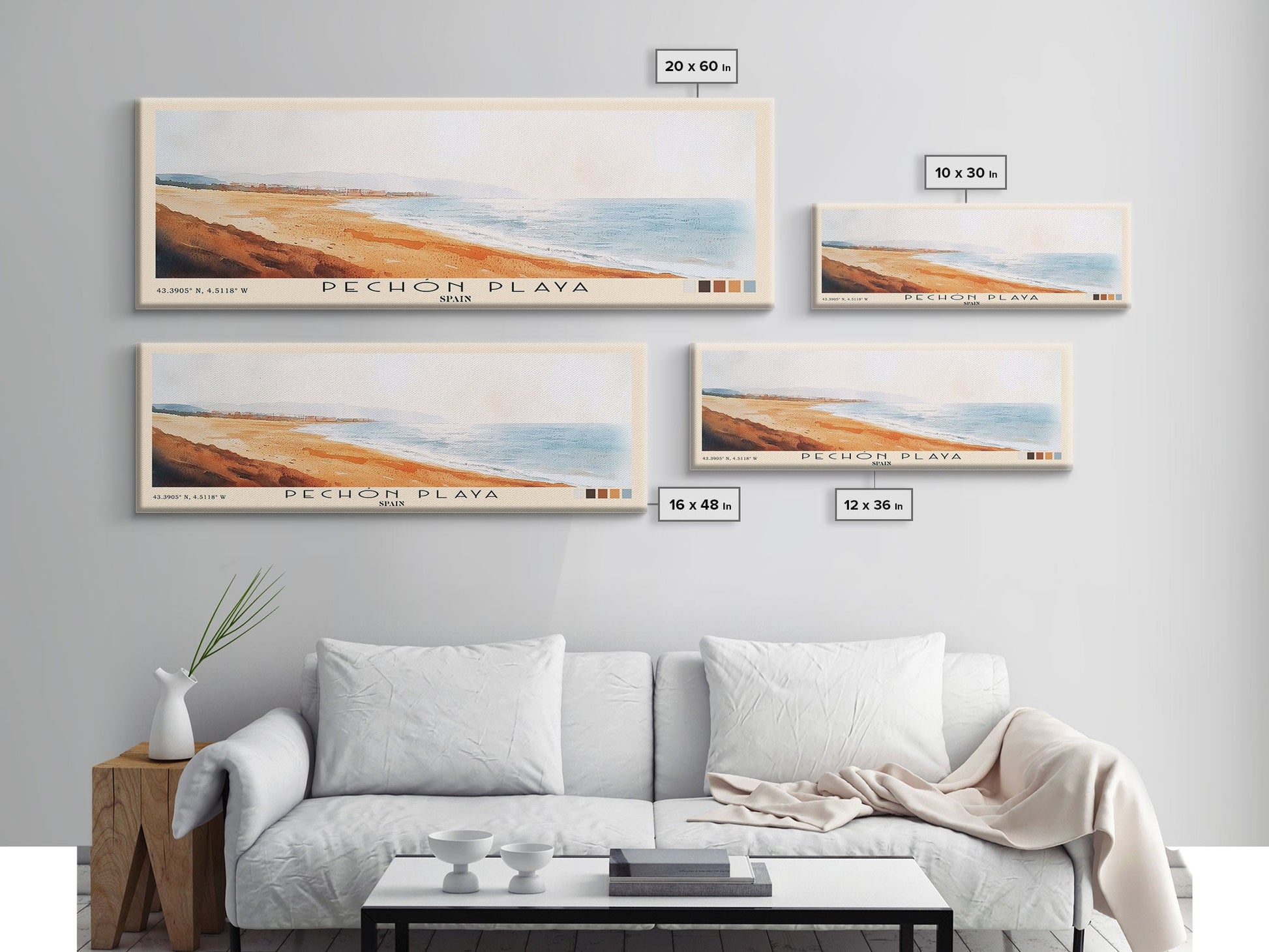 Pechón Playa, Spain Watercolor Print, Vacation Gift, Spain Wall Art, Beach Painting, Beach Decor, Large Wall Art, Wood Frame Art
