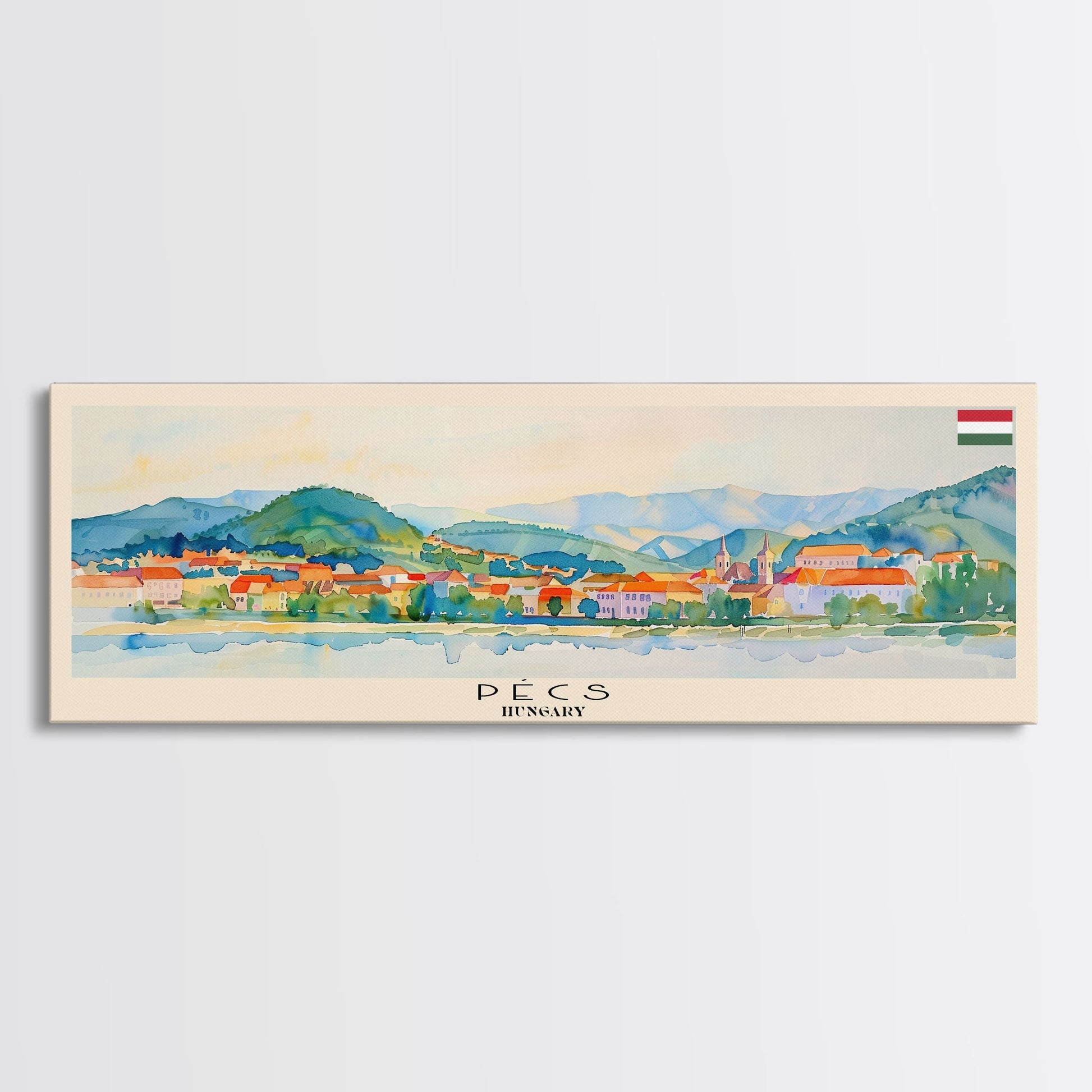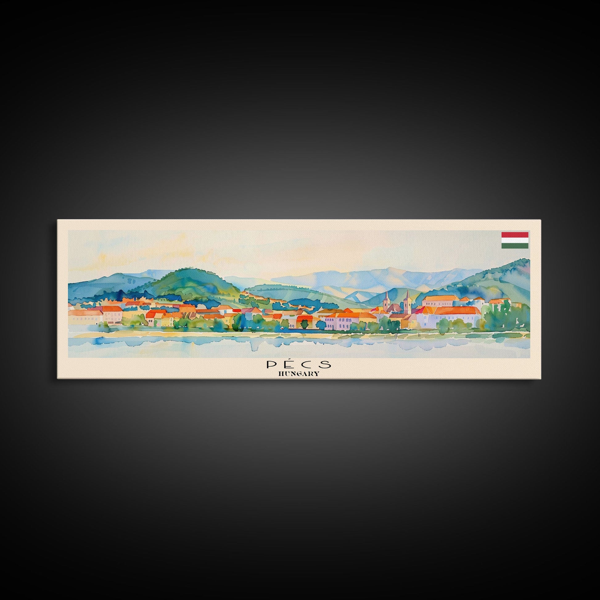 Pécs Hungary Panoramic Travel Poster, Framed Canvas Print or Metal Wall Art, Travel Art, Home Decor, Panoramic Painting, Midcentury Art