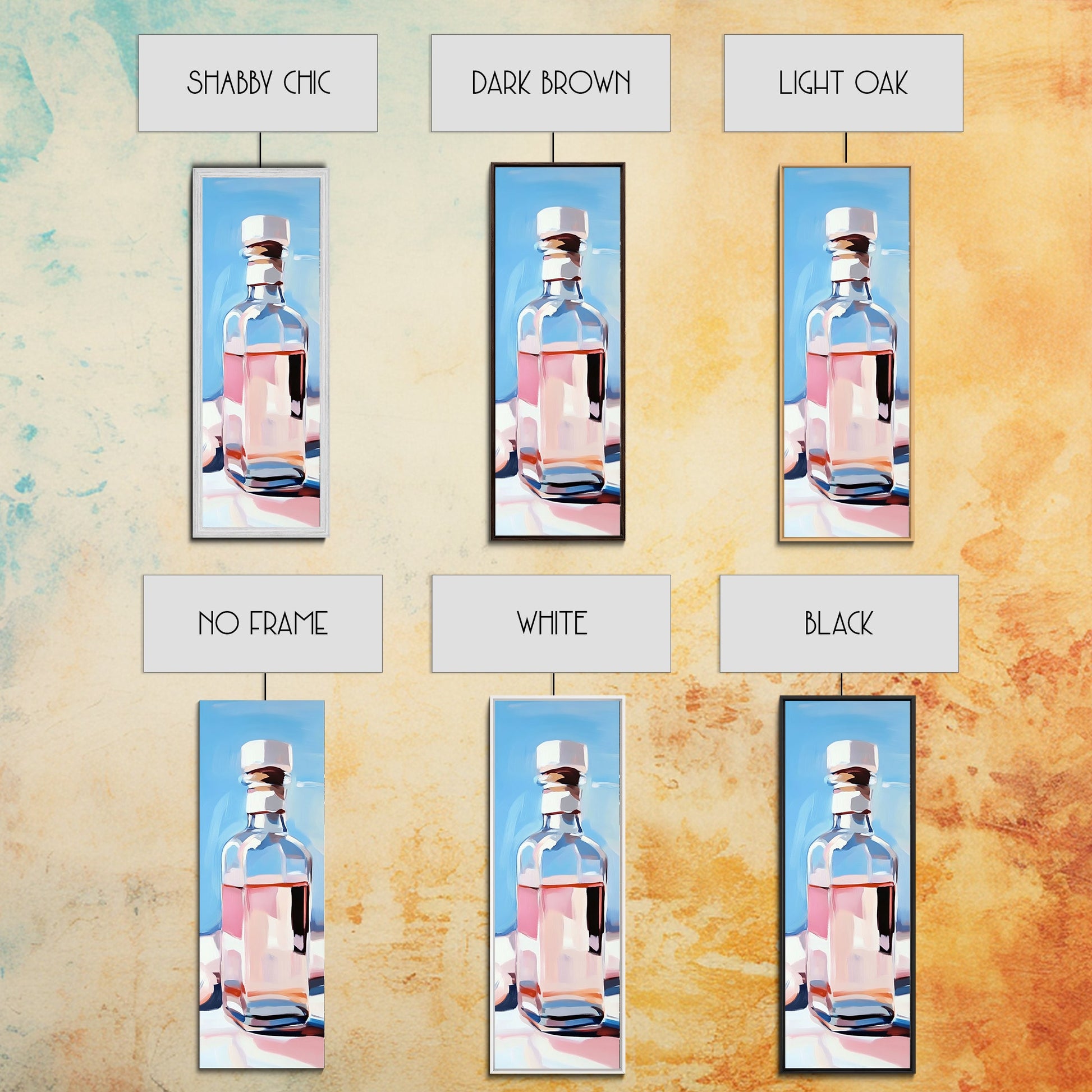 Perfume Bottle, Glass Art, Minimalist, Blue, White, Pink, Fashion, Beauty, Elegant, Living Room, Framed Canvas Print