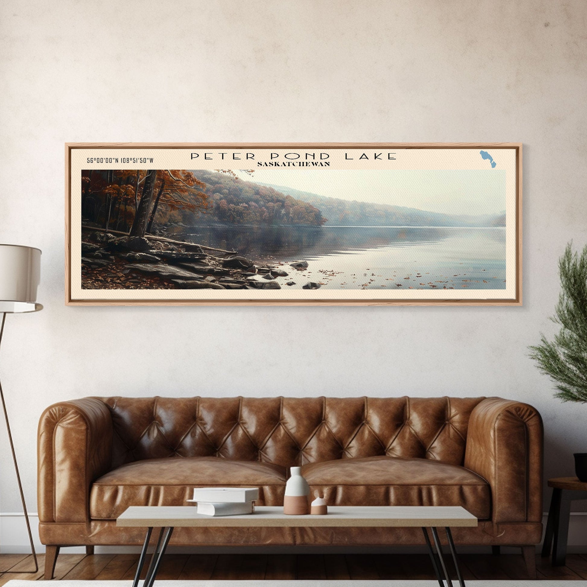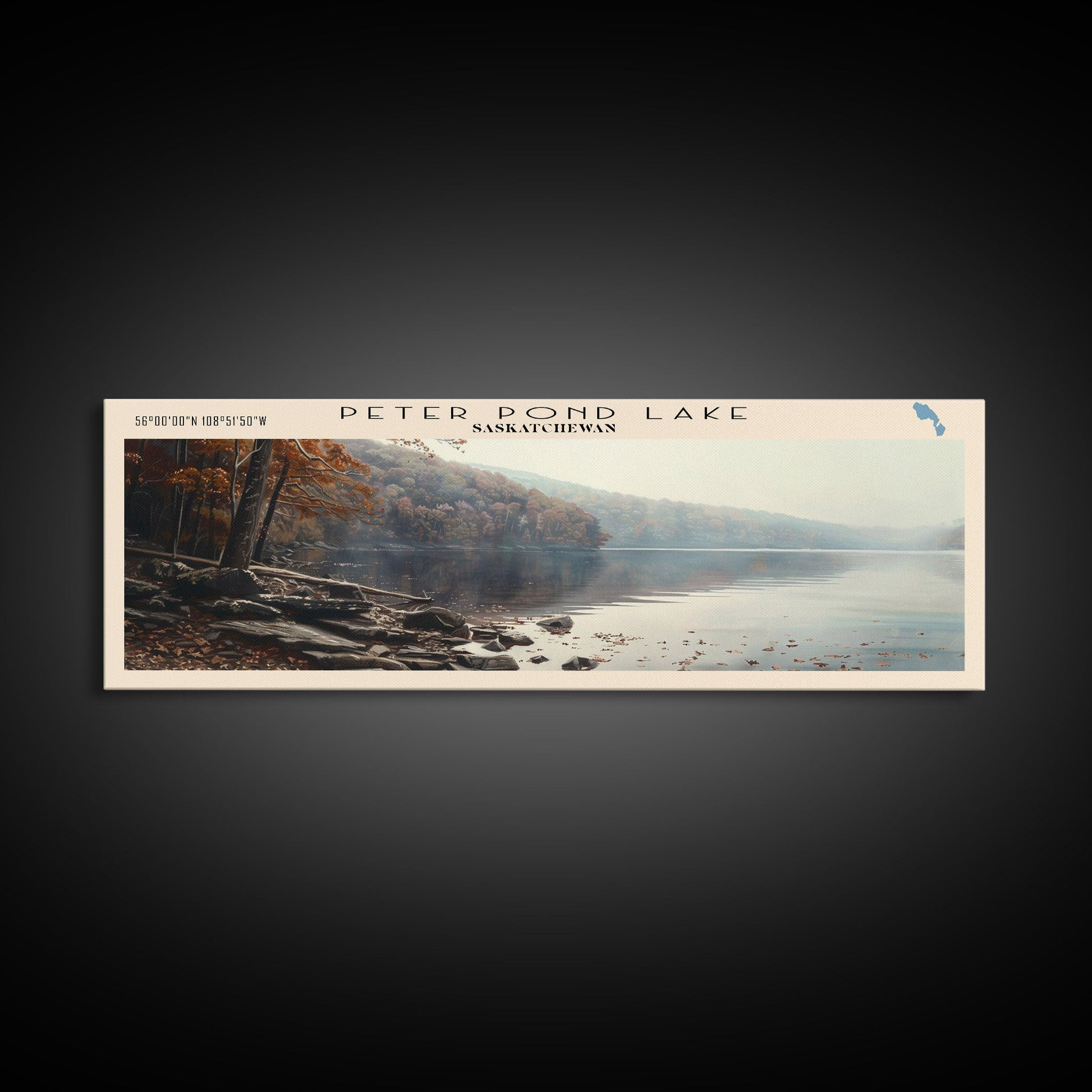 Peter Pond Lake Framed Canvas Print, Lake House Decor, Panoramic Wall Art, Travel Poster, Scenic Landscape Painting, Contemporary Art