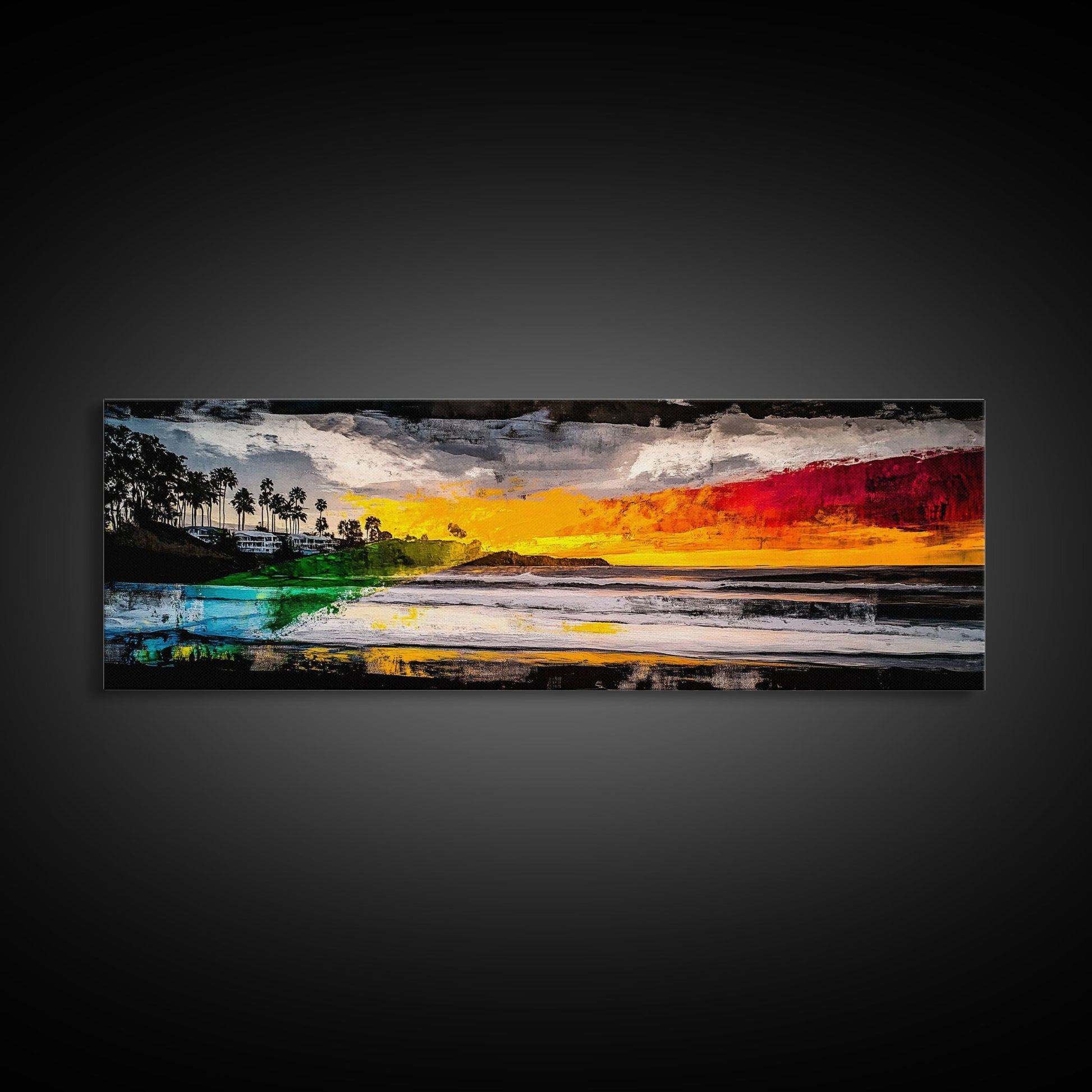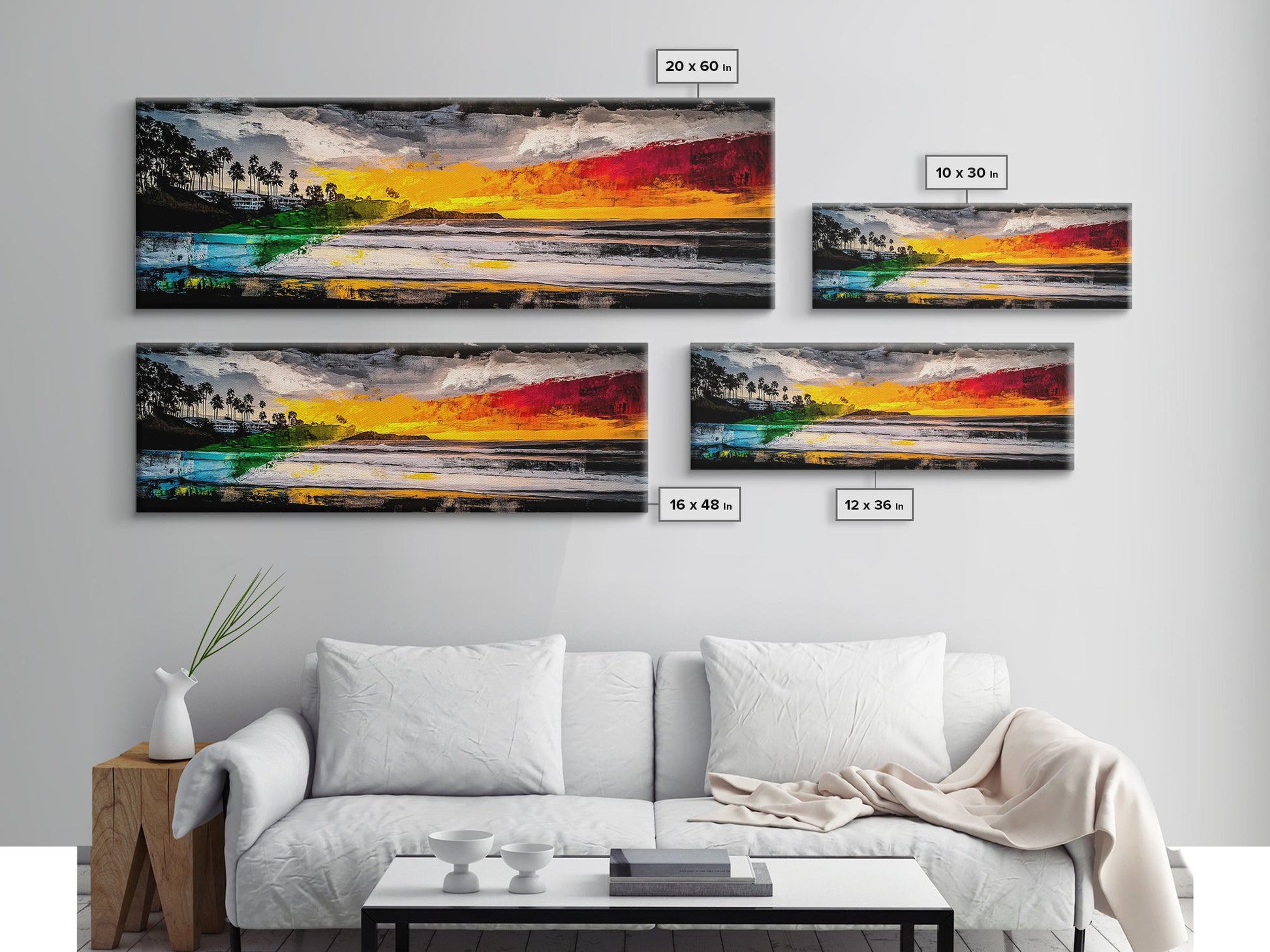 Pier, Ocean, Sunset, Framed Canvas Print, Nautical Wall Art, Coastal Home Decor, Minimalist Seascape, Surf Beach Art, Large Modern Painting