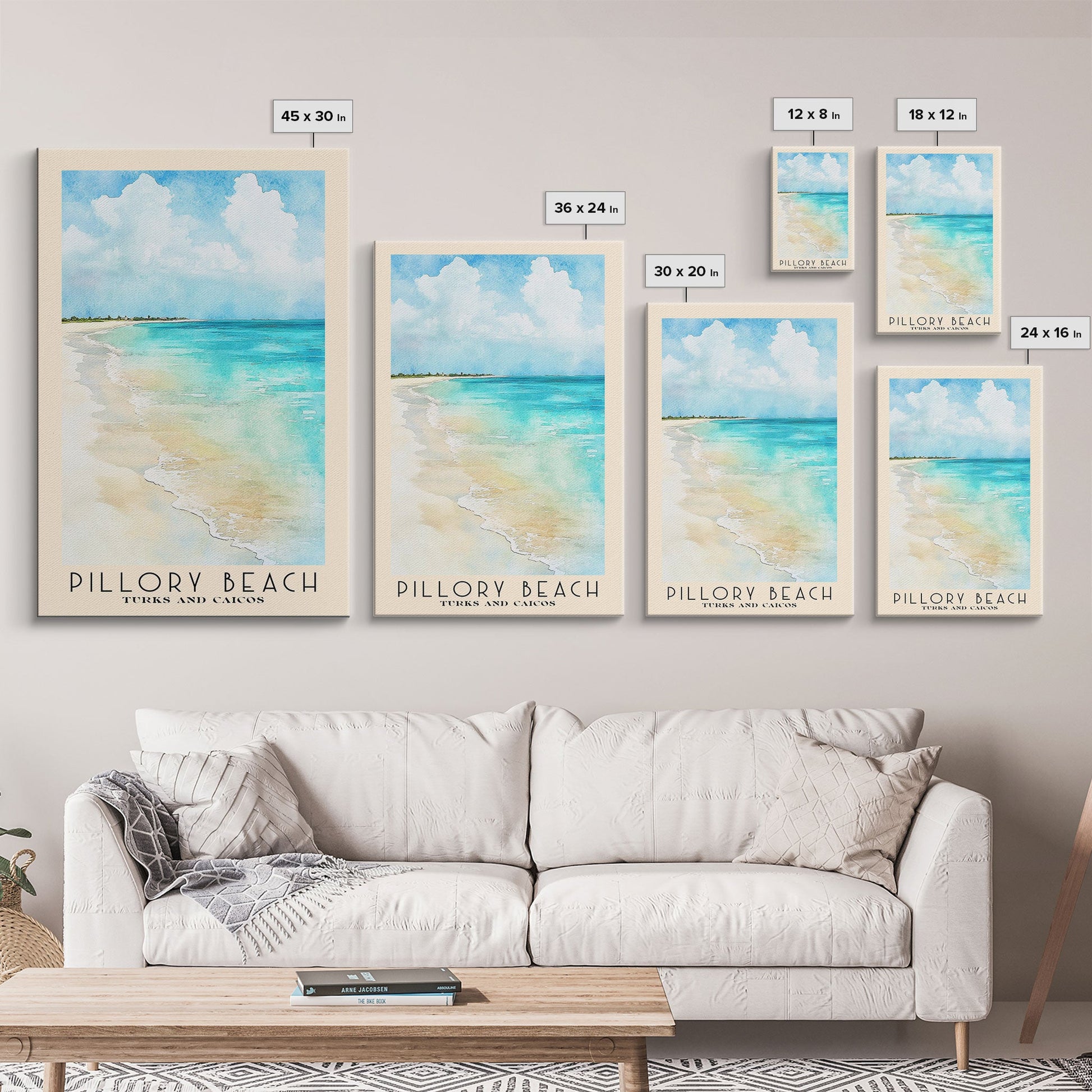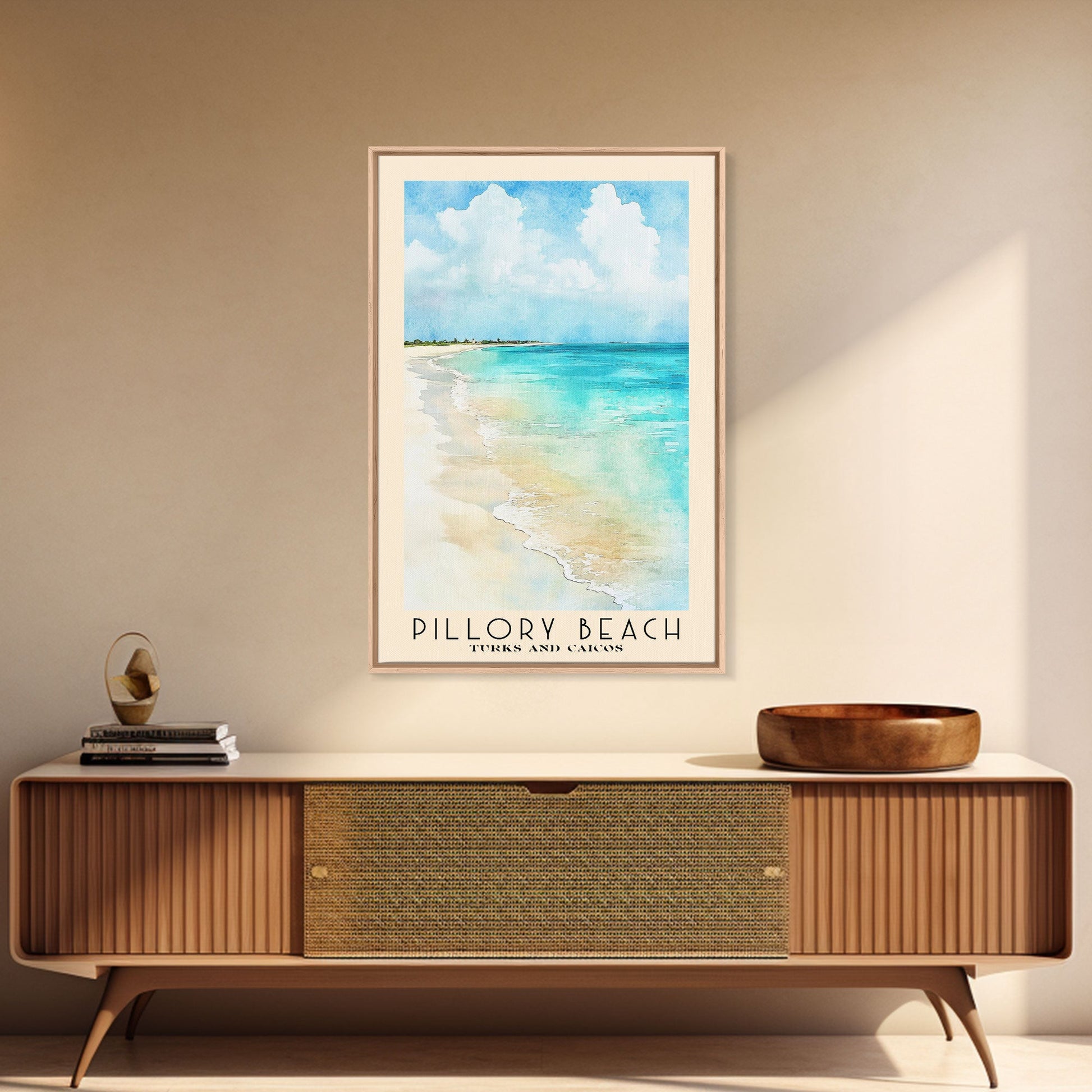 Pillory Beach, Turks and Caicos Watercolor Beach Print, Vacation Gift, Turks and Caicos Wall Art, Framed Canvas Print, Framed Beach Painting