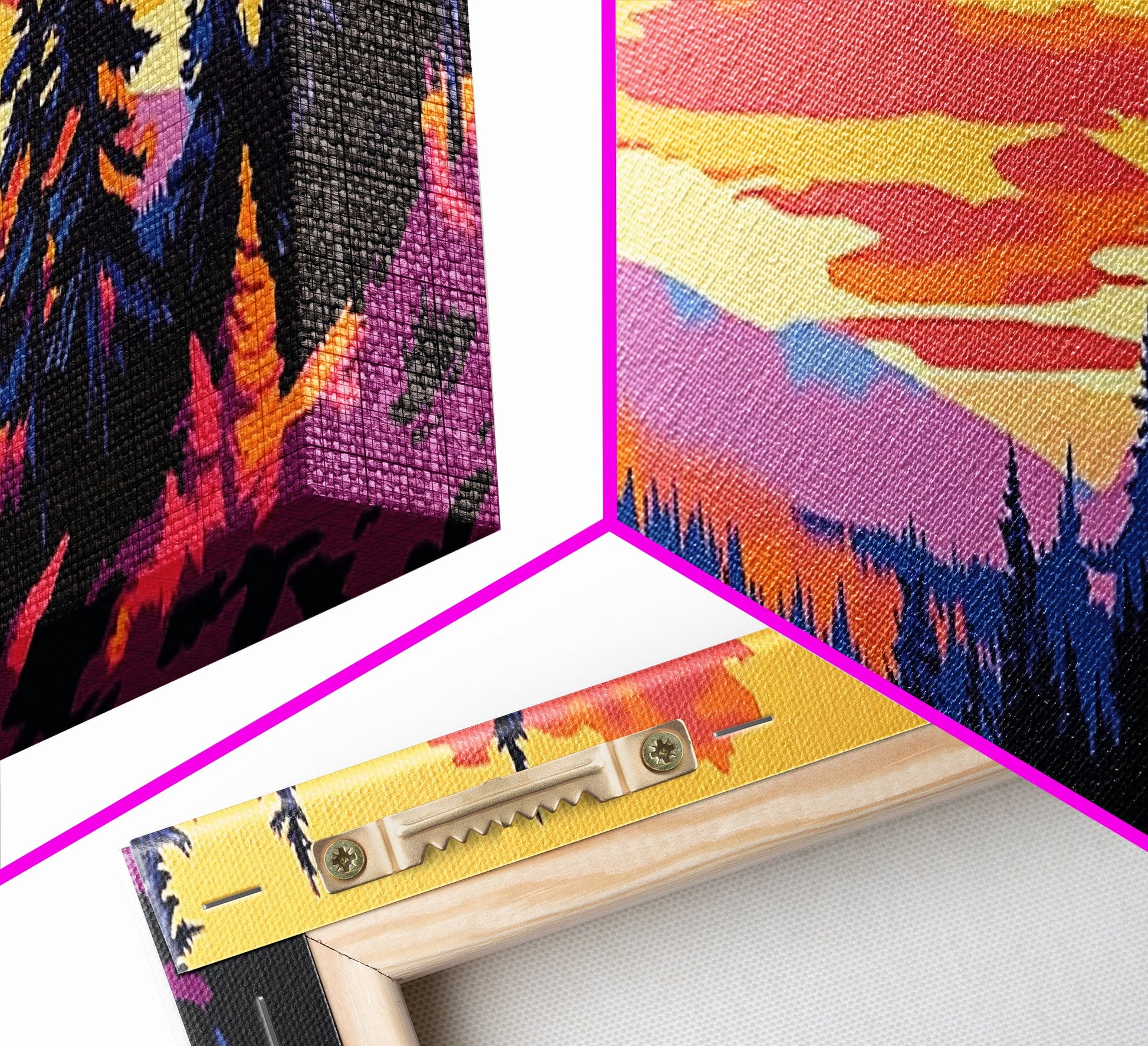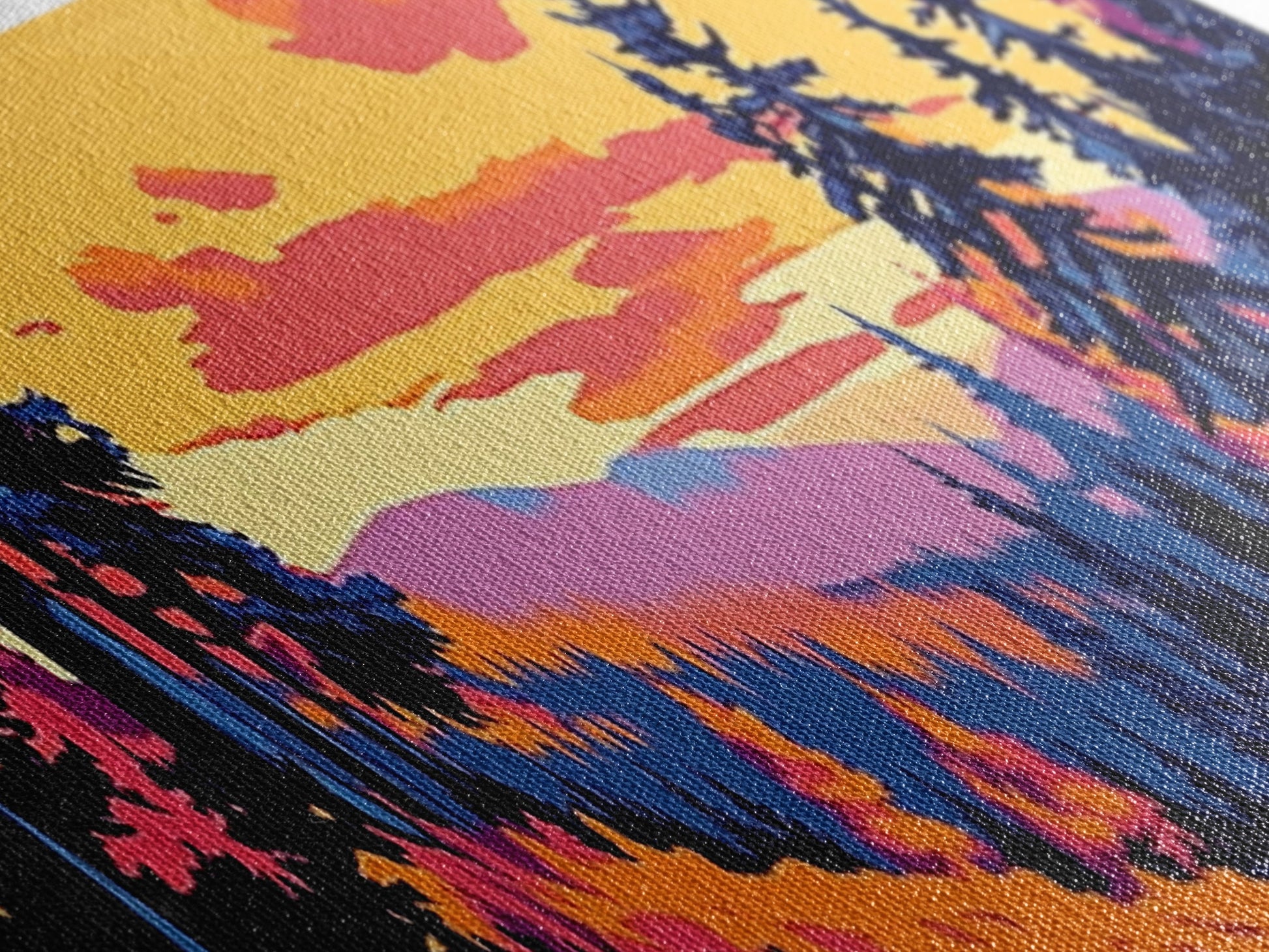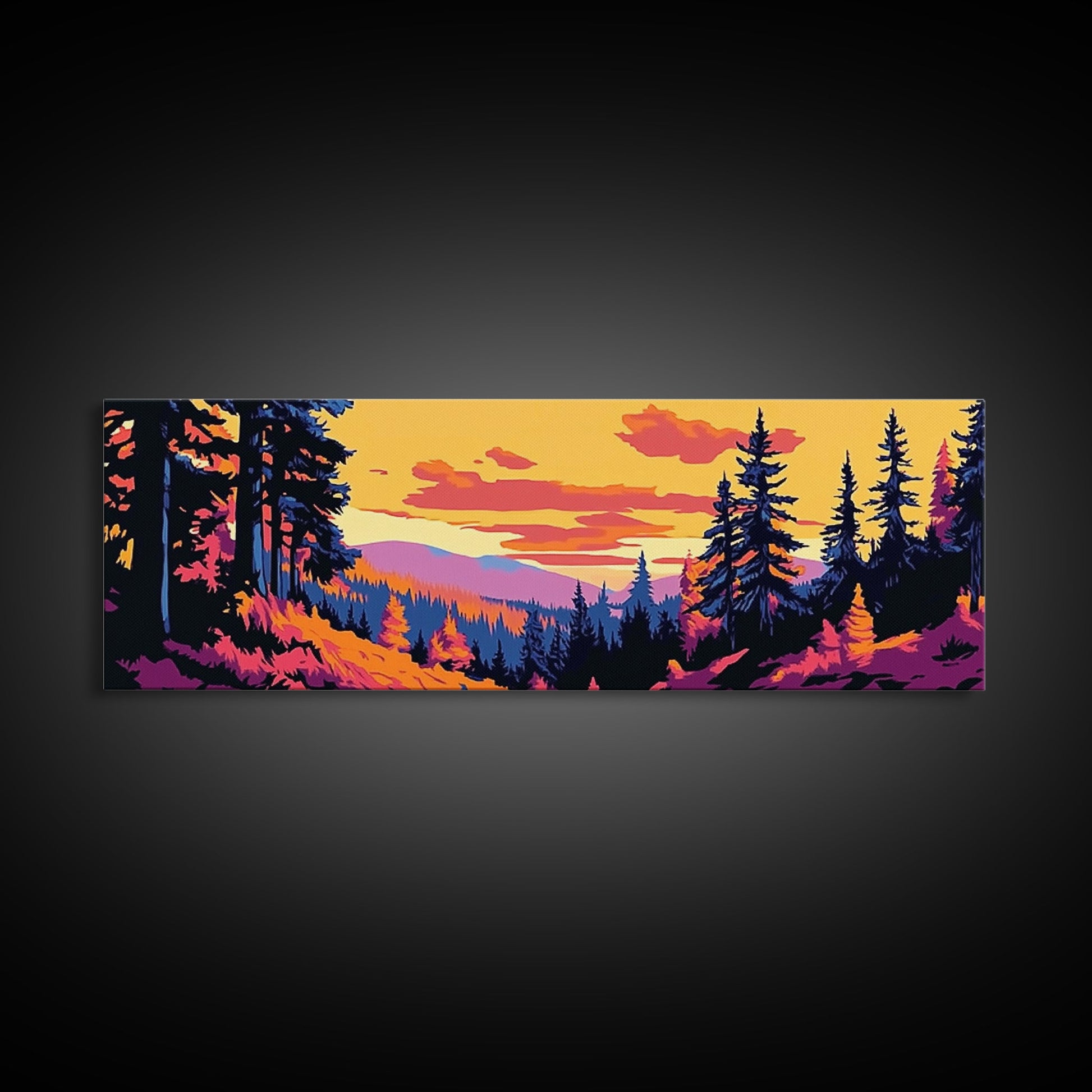 Pine Tree Landscape, Autumn Wilderness Art, Cozy Nature Decor, Warm Sunset Tones, Rustic Cabin Accent, Woodland Aesthetic, Canvas Print