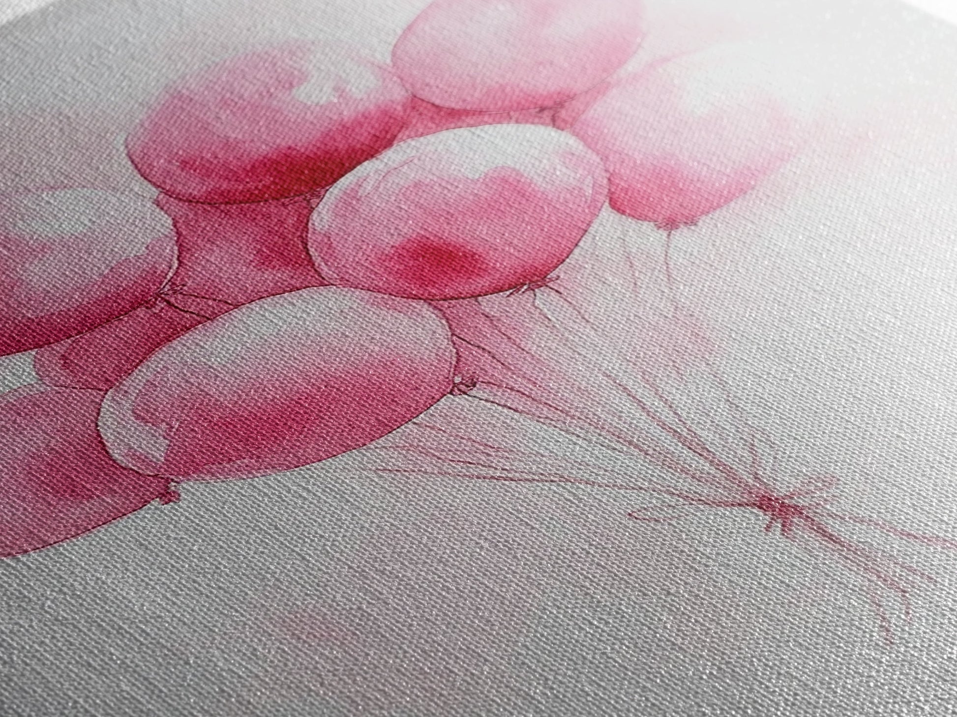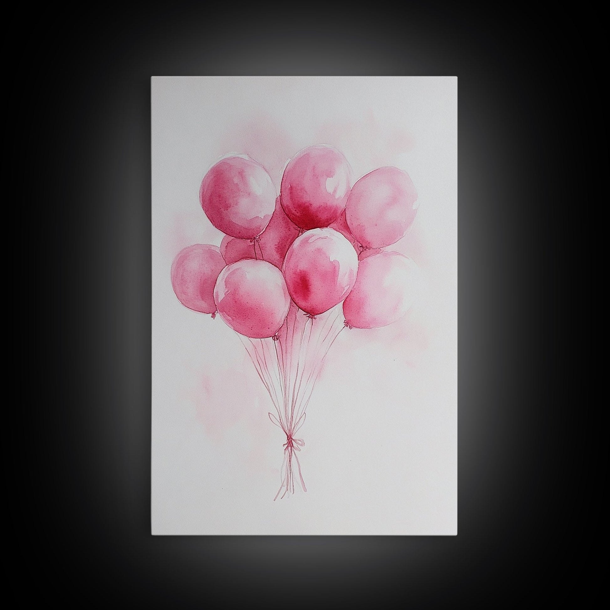 Pink Abstract Balloon Bouquet Framed Canvas Print, Whimsical Party Wall Art Light Pink Decor, Ideal Rustic Bedroom Aesthetic