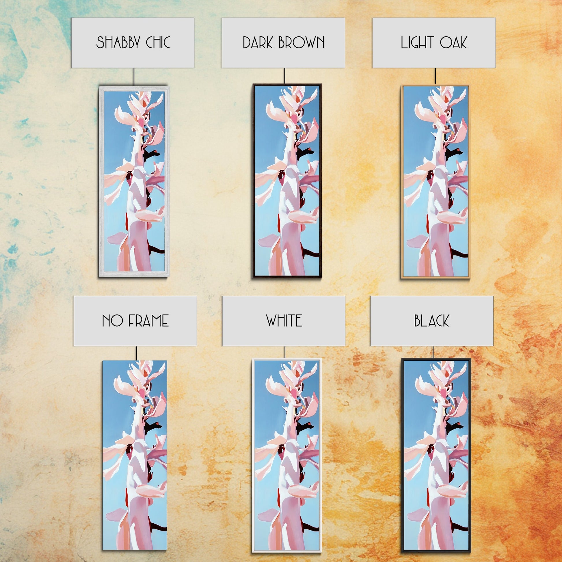 *Optional frames add a total of 1.5 inches to each dimension, for example a 10x20 canvas with a frame will be 11.5 by 21.5 inches total. All framed canvas are 1.5" total depth.