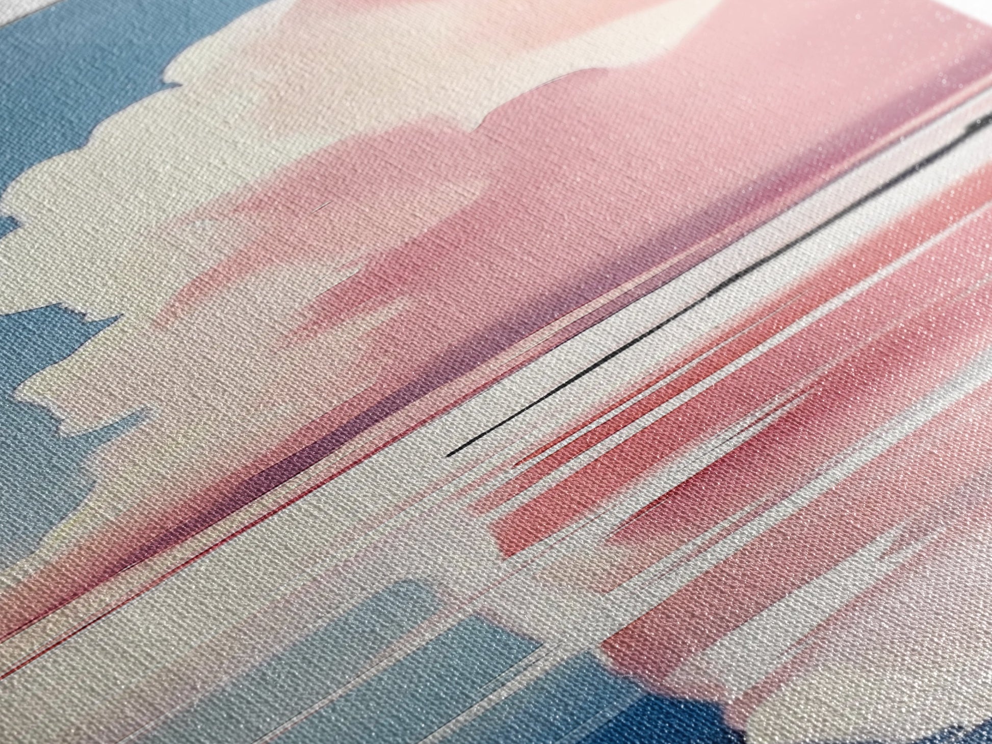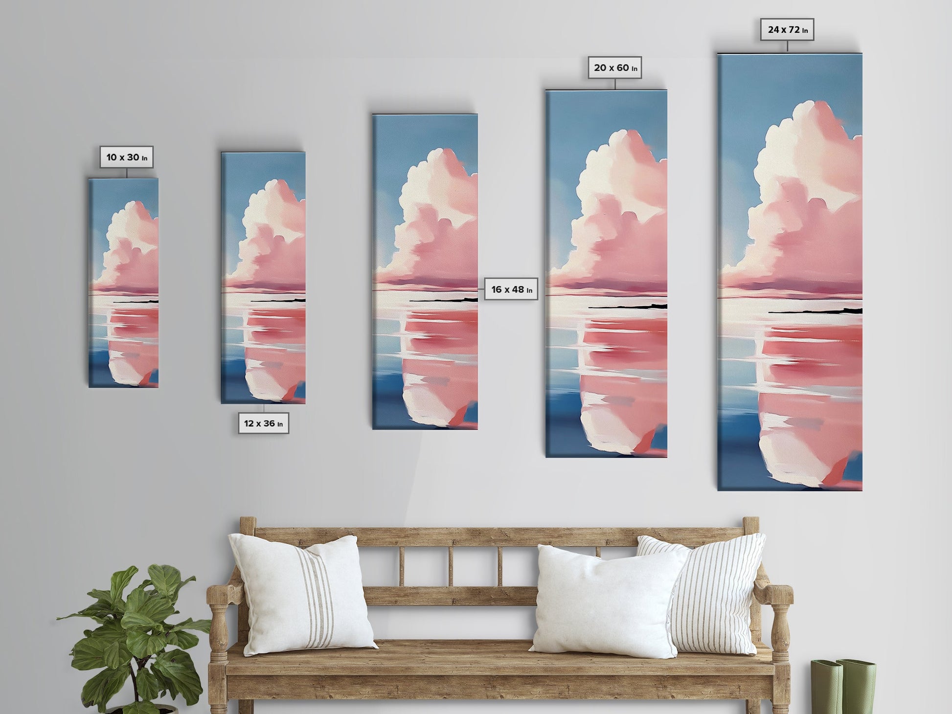Pink Clouds, Coastal Wall Art, Minimalist Landscape, Modern Seascape, Large Framed Canvas Print, Living Room Art, Soft Pastel Decor