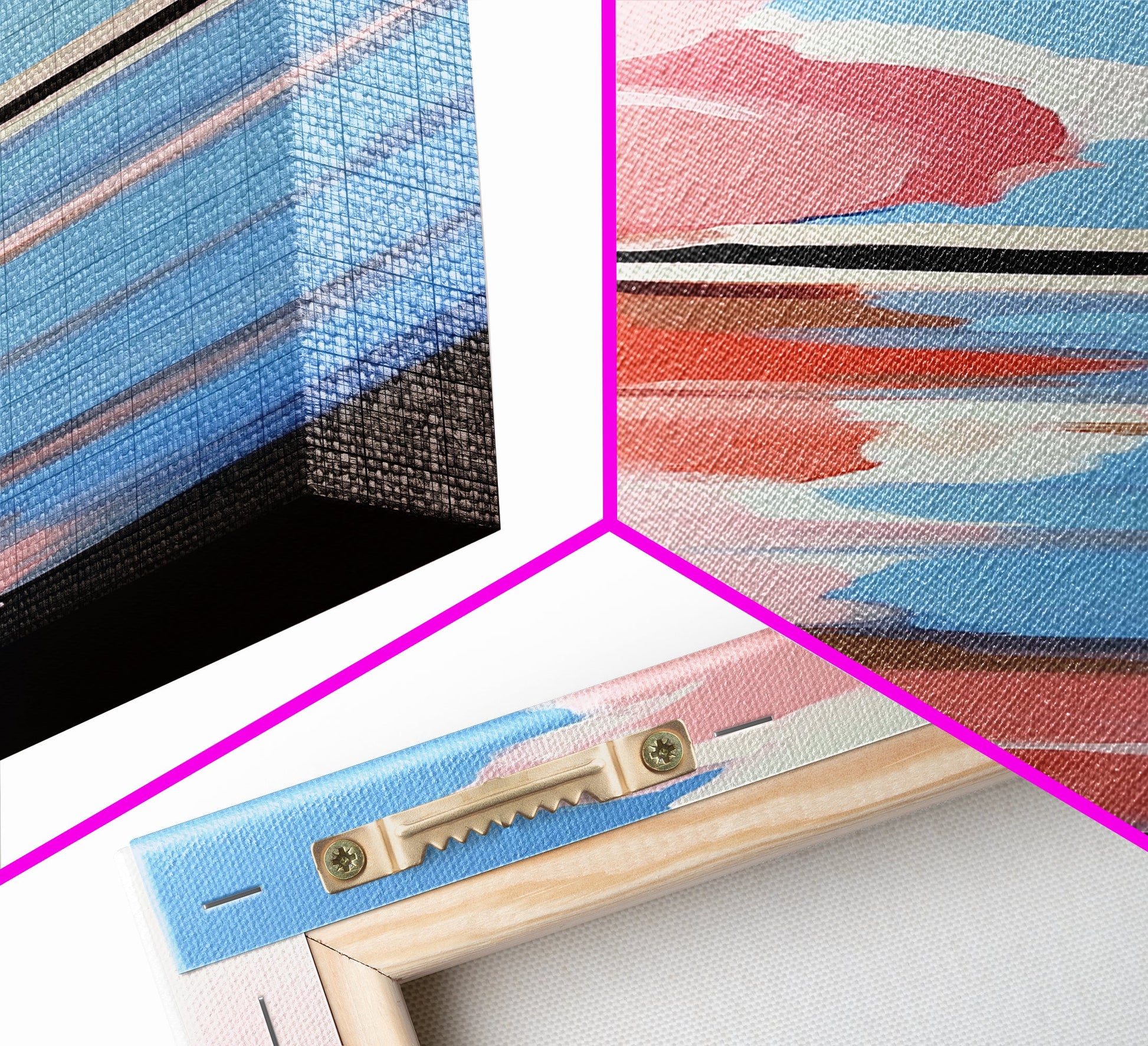Hello and thank you for taking the time to view our modern high quality giclée artwork! We offer both posters and stretched canvas prints. Our posters are printed on Ultra Matte 60 lb / 230 GSM high quality photo paper, with a thickness of 10 mil. Our canvases are printed on museum grade 350 GSM canvas material with ECO friendly archival grade ink, then hand stretched and stapled over premium, FSC certified and shrink resistant frames. Designed and built to last a lifetime.