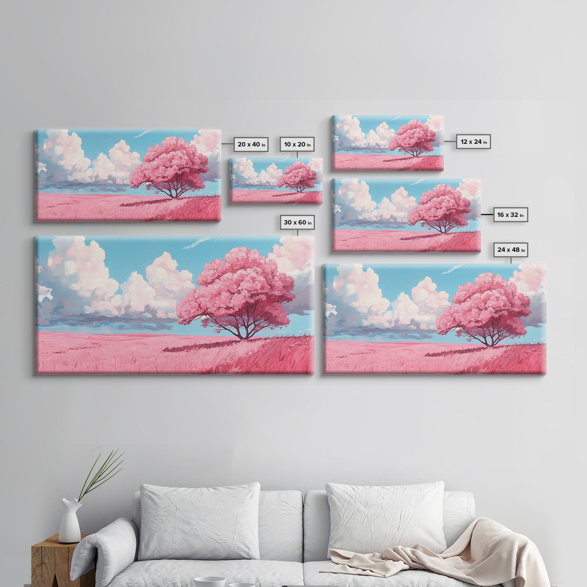 Pink Fields - Abstract Wall Art - Framed Canvas Print - Abstract Landscape Painting - Surrealist Wall Art - Above Sofa Modern Art