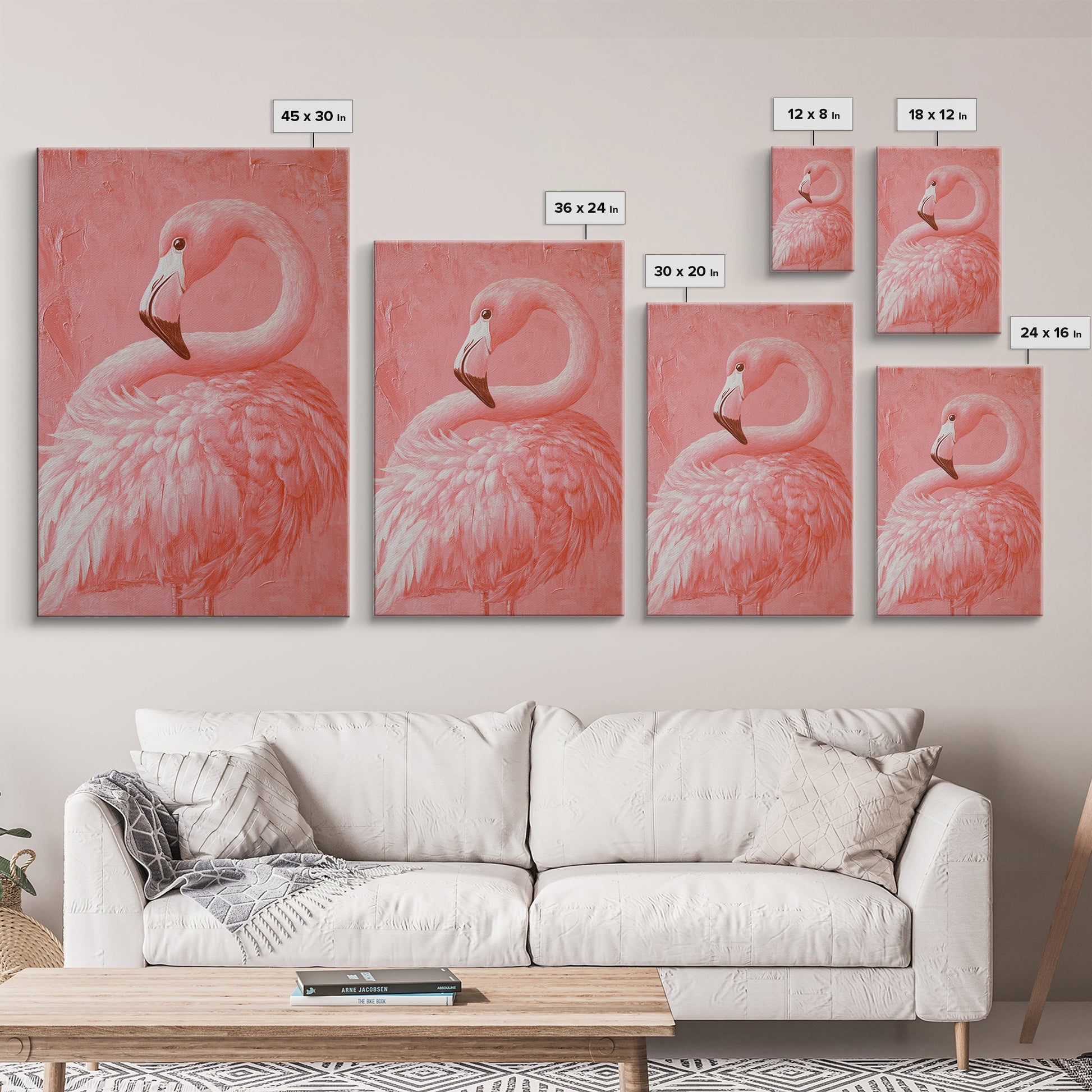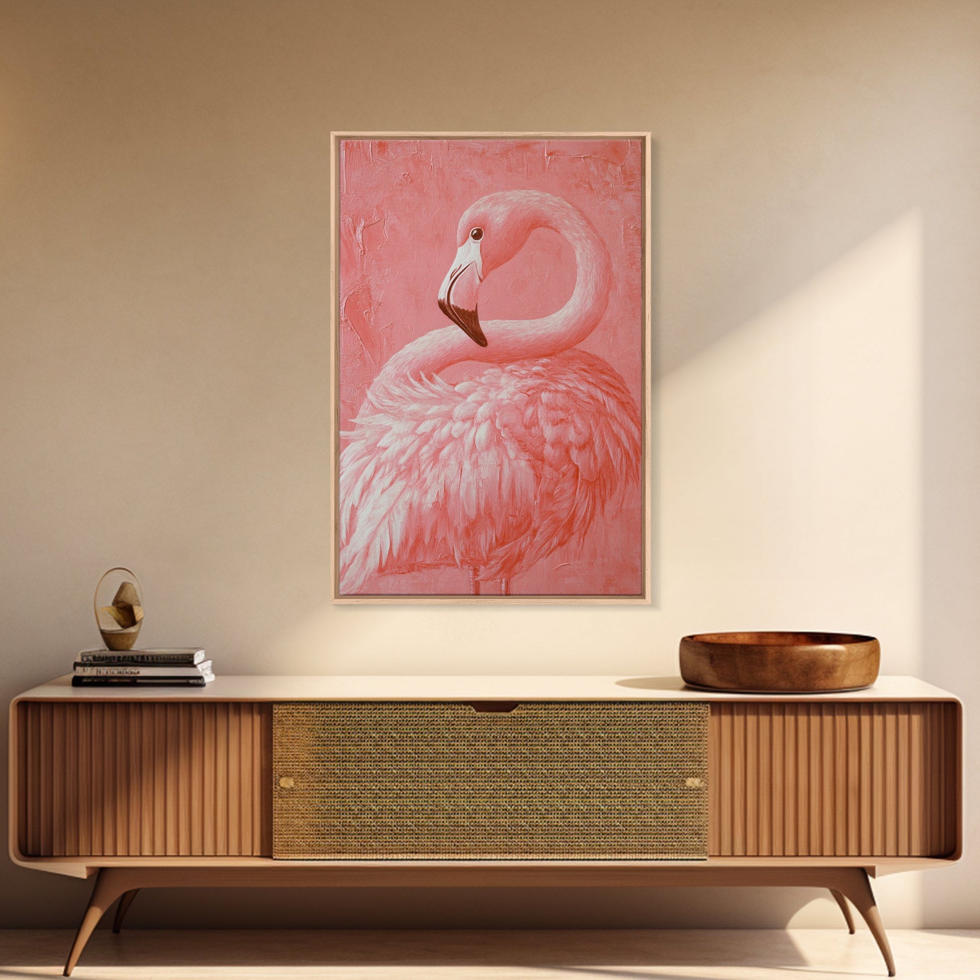 Pink Flamingo Painting Print, Preppy Trendy Wall Art, Animal Print, Framed Canvas Print, Wood Framed Art, Dorm Decor, Apartment Art