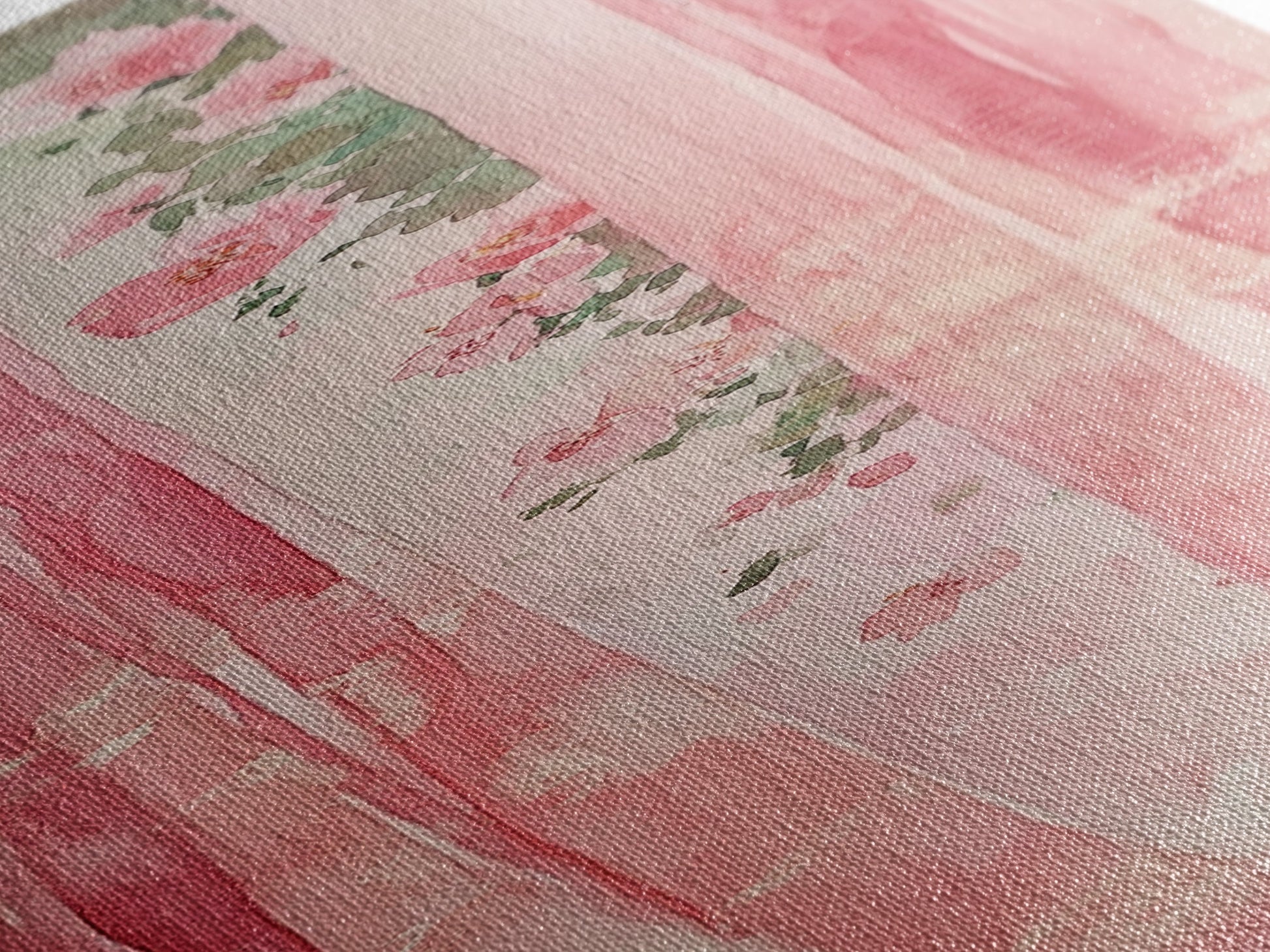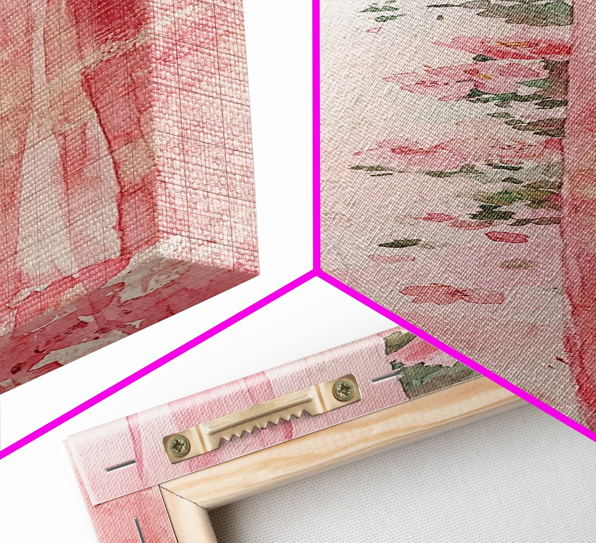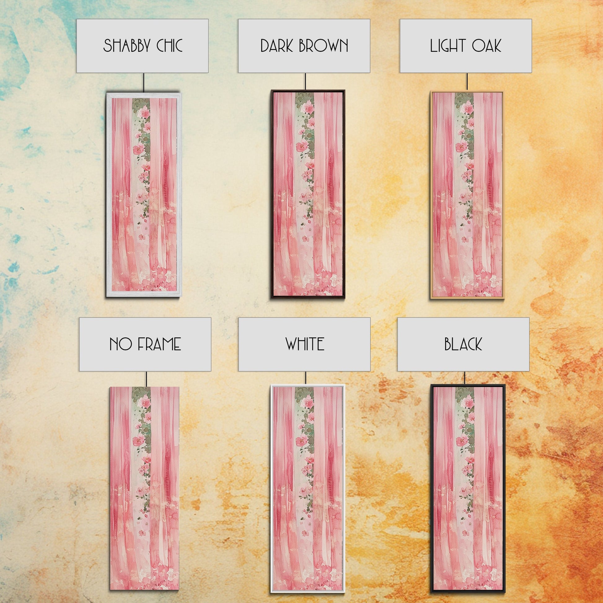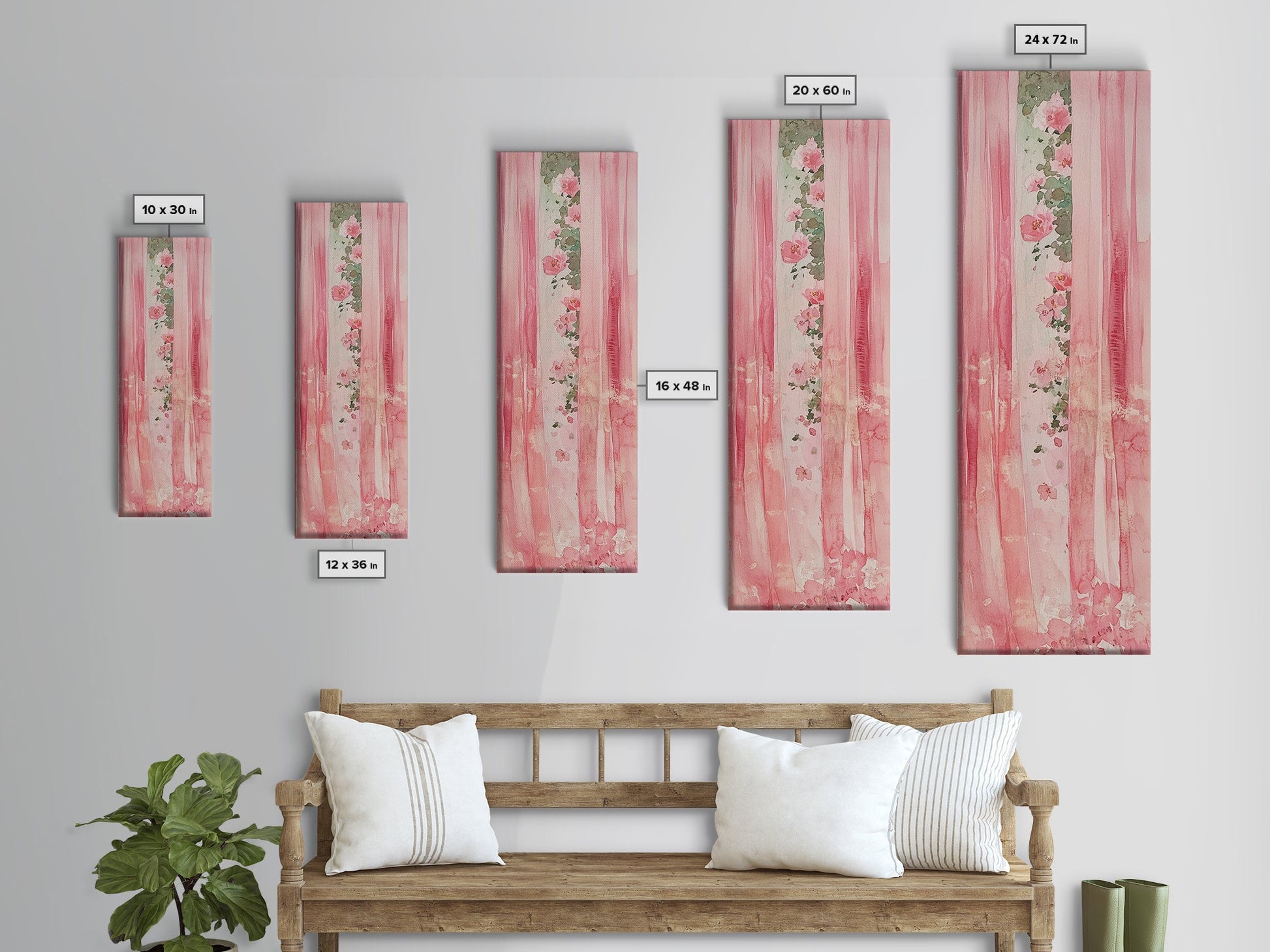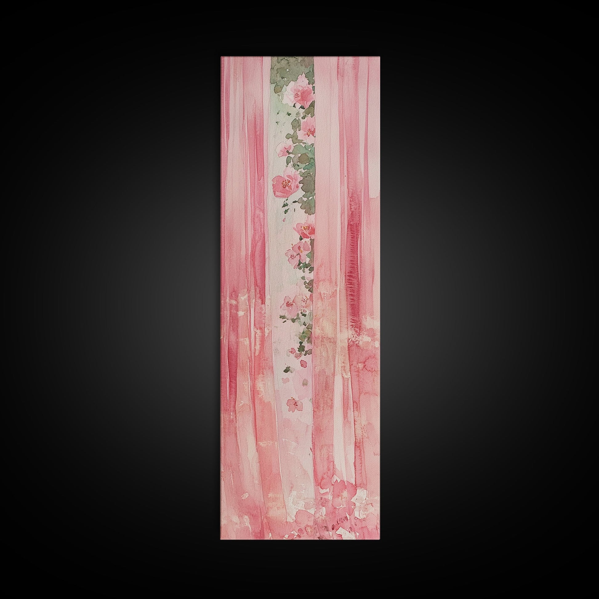 Pink Floral Curtains Framed Canvas Print Whimsical Art Light Pink Wall Art Vertical Wall Art Minimalist Art Rustic Decor Gift