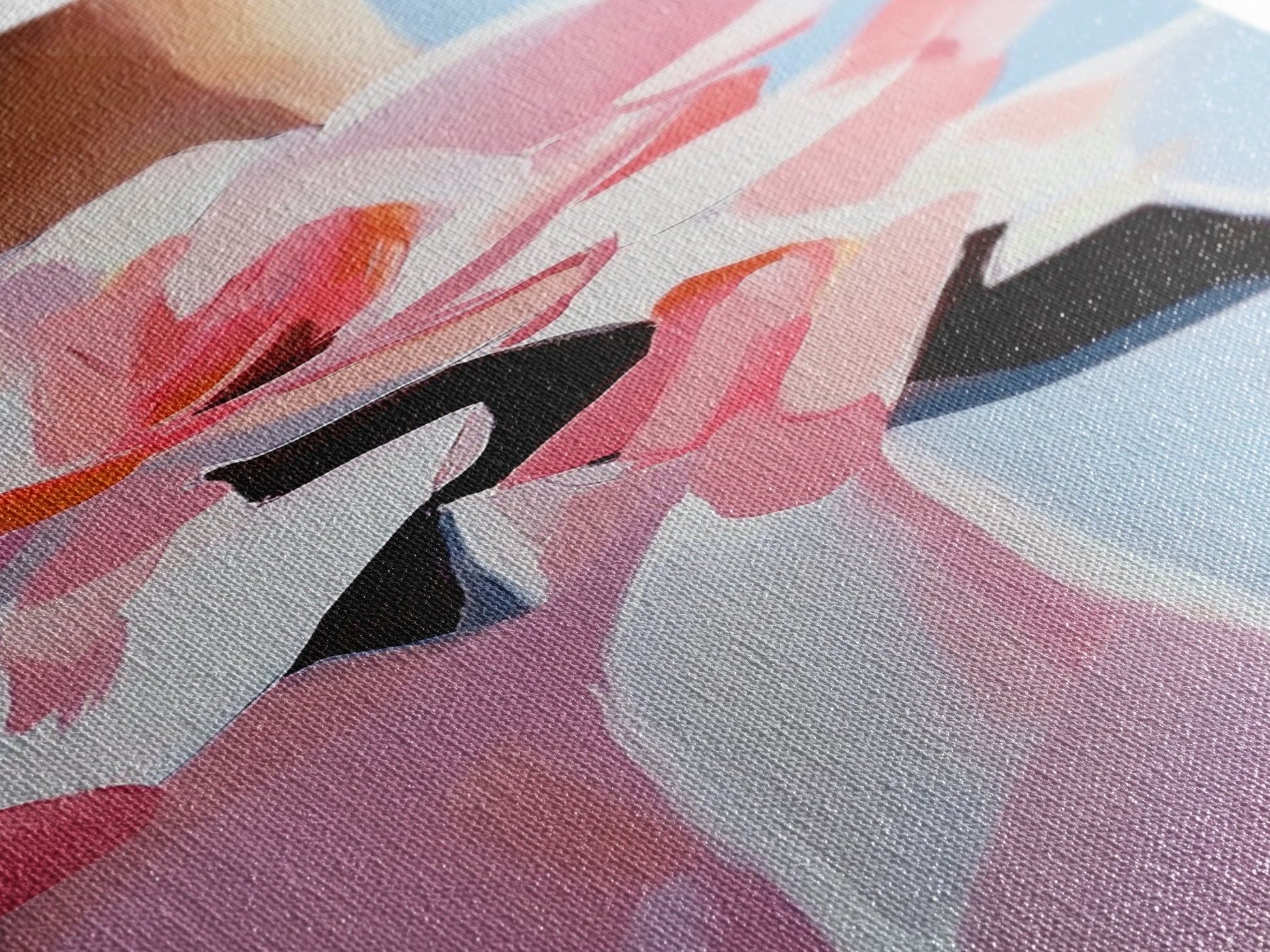 Pink Flowers, Floral Elegance, Feminine Botanical Art, Chic Wall Decor, Romantic Aesthetic, Modern Bloom Painting, Framed Canvas Print