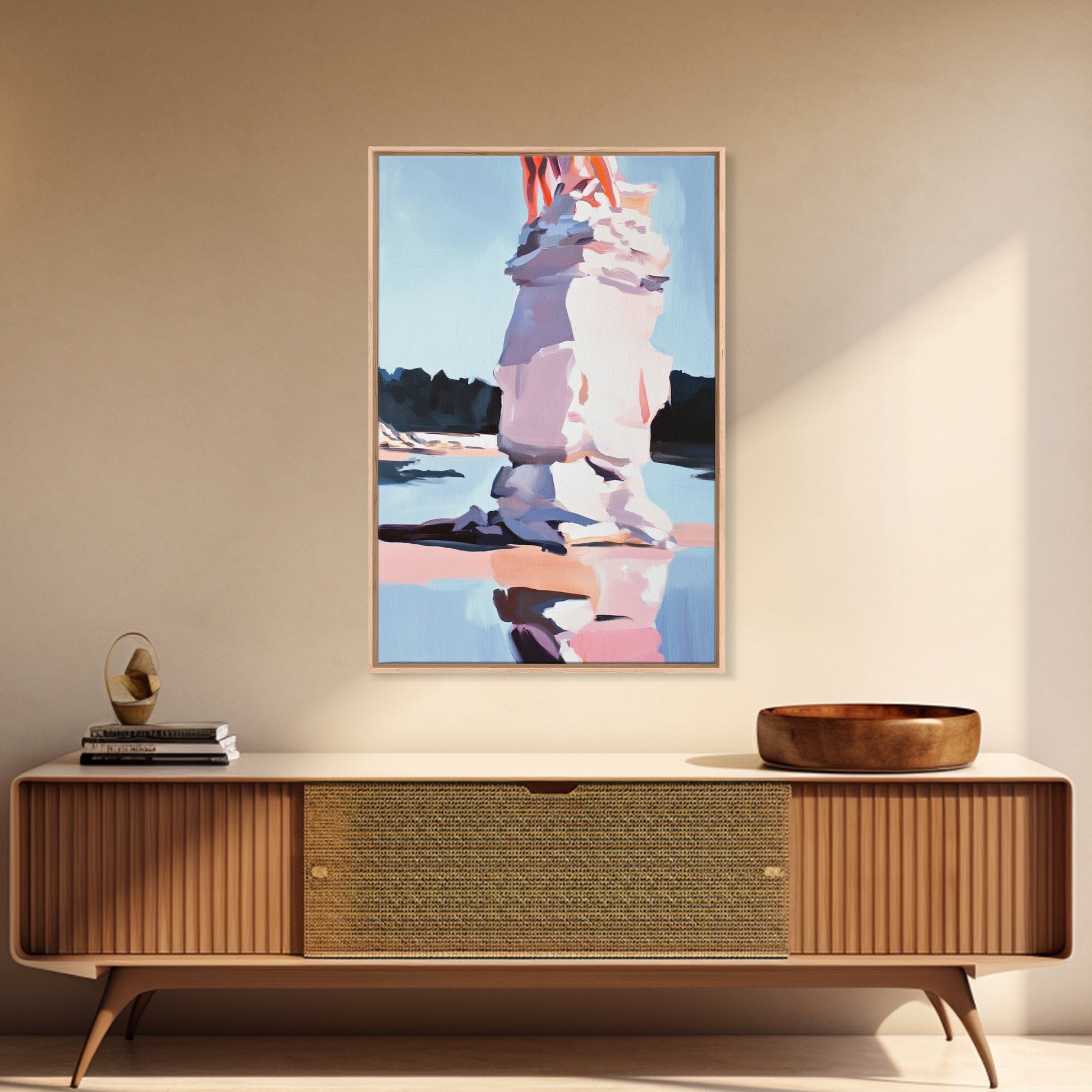 Pink Ice, Abstract, Winter Wall Art, Modern Home Decor, Pastel Landscape, Nature Inspired, Contemporary Art, Framed Canvas Print
