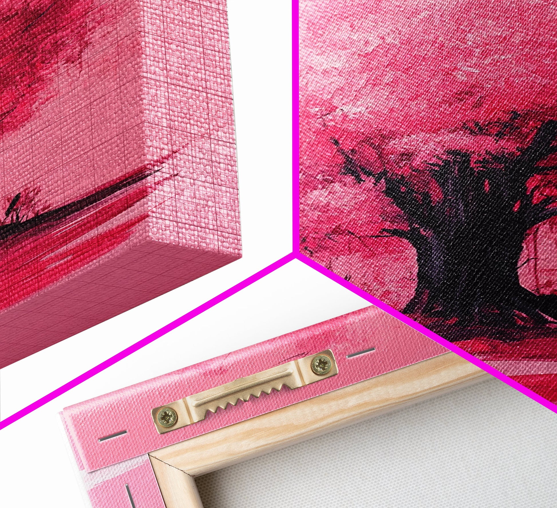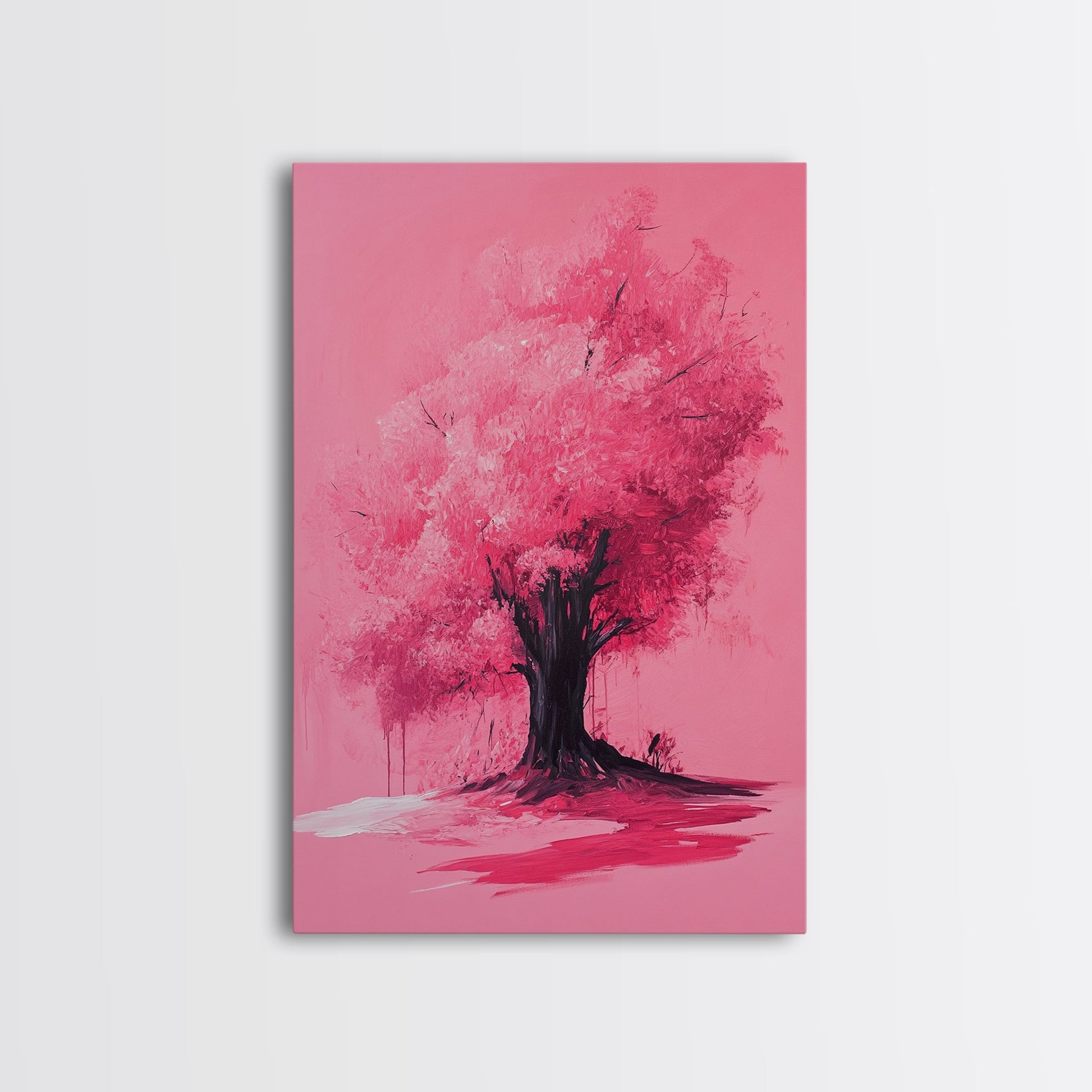 Pink Maple Tree Preppy Painting Print, Girl's Dorm Room Wall Art Home Decor, Trendy Wall Art, Pink Decor