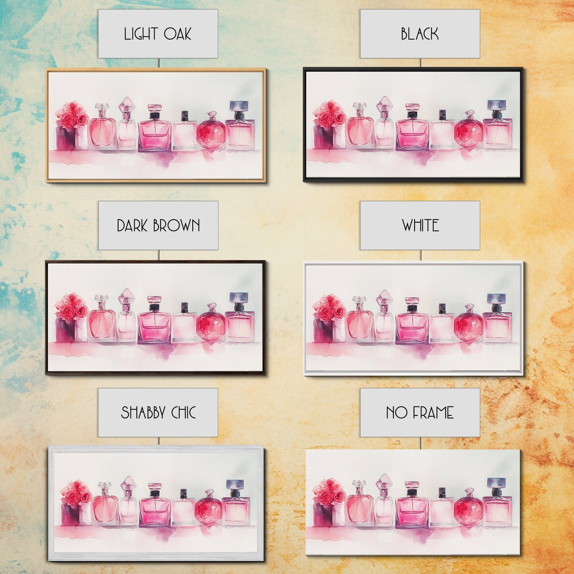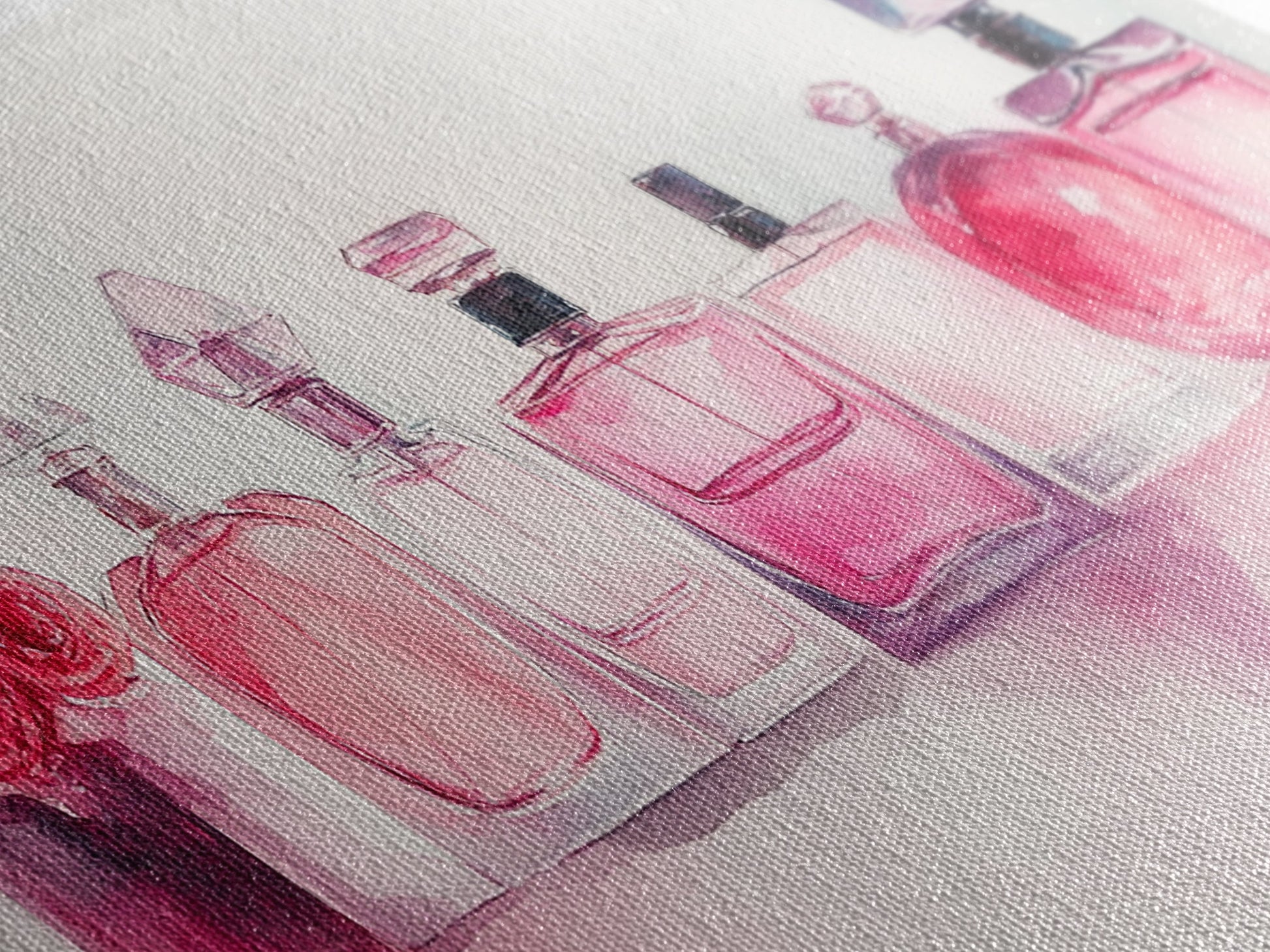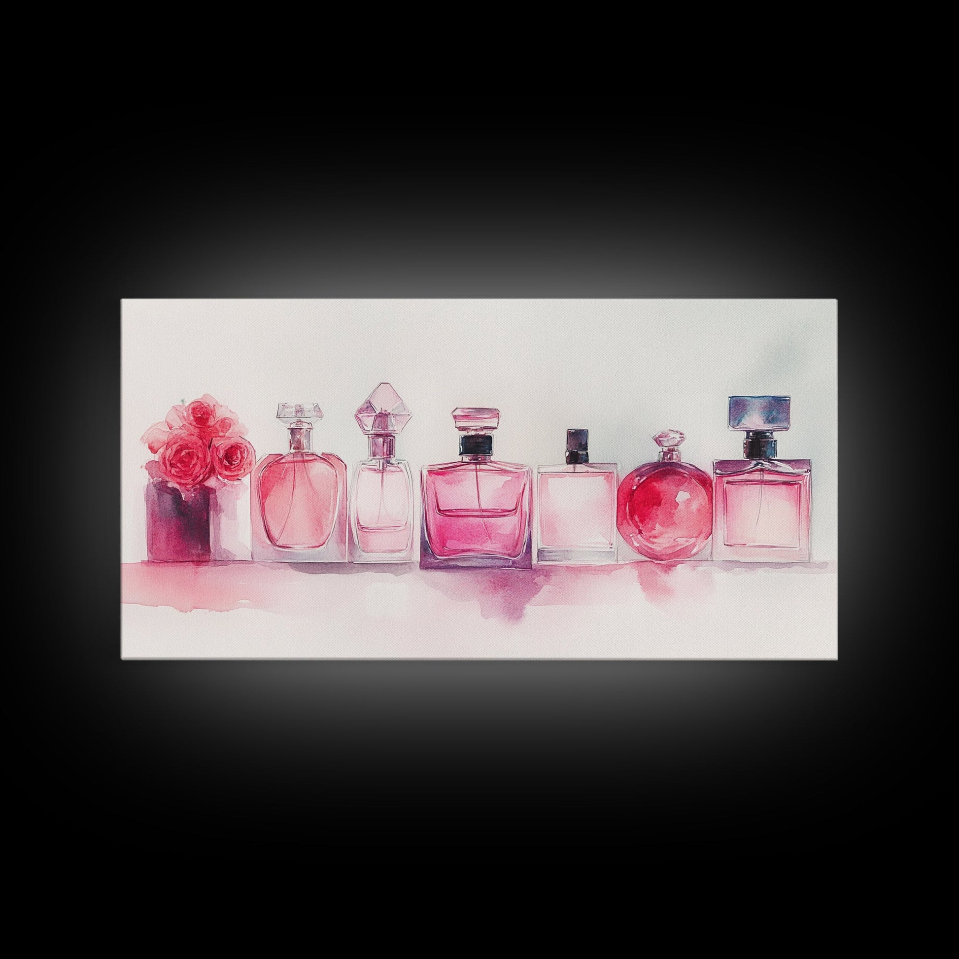 Pink Perfume Painting Framed Canvas Print, Light Pink Bedroom Art Coastal Cowgirl Wall Art, Minimalist Art Rustic Decor Gift Idea