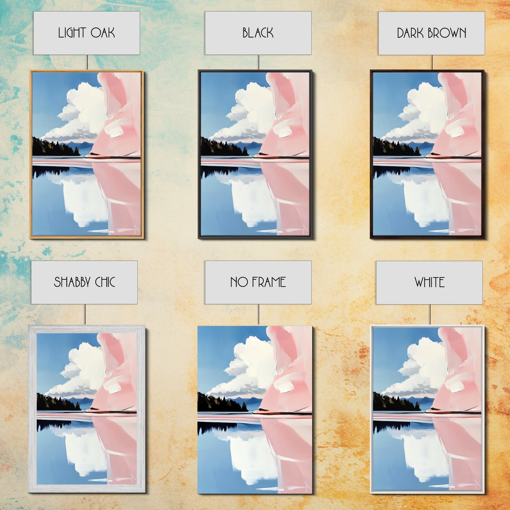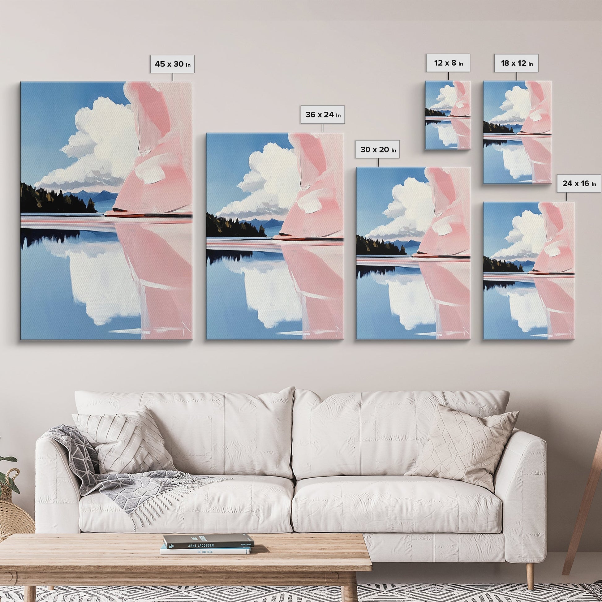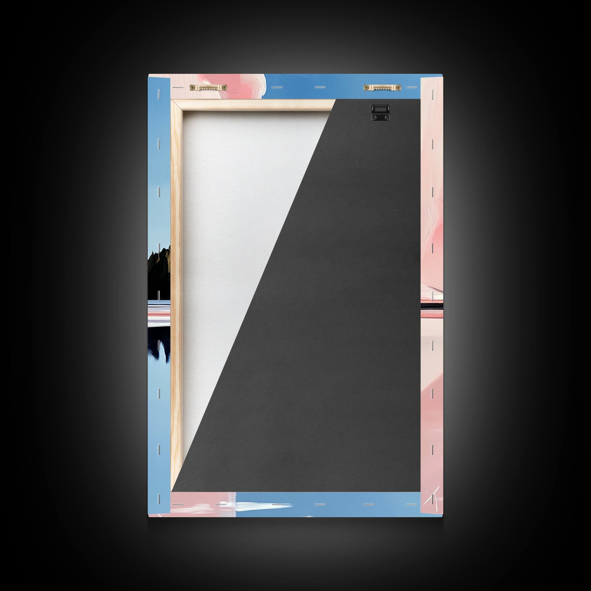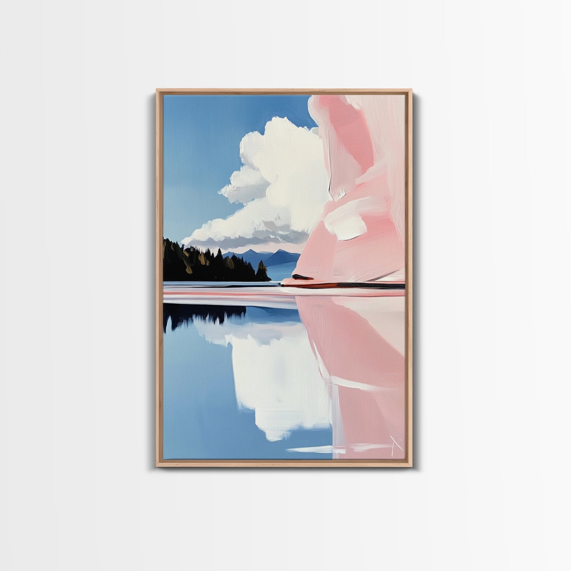 Pink Rock Reflection, Abstract Landscape, Serene Water Art, Framed Canvas Print, Modern Wall Decor, Minimalist Nature, Living Room Art