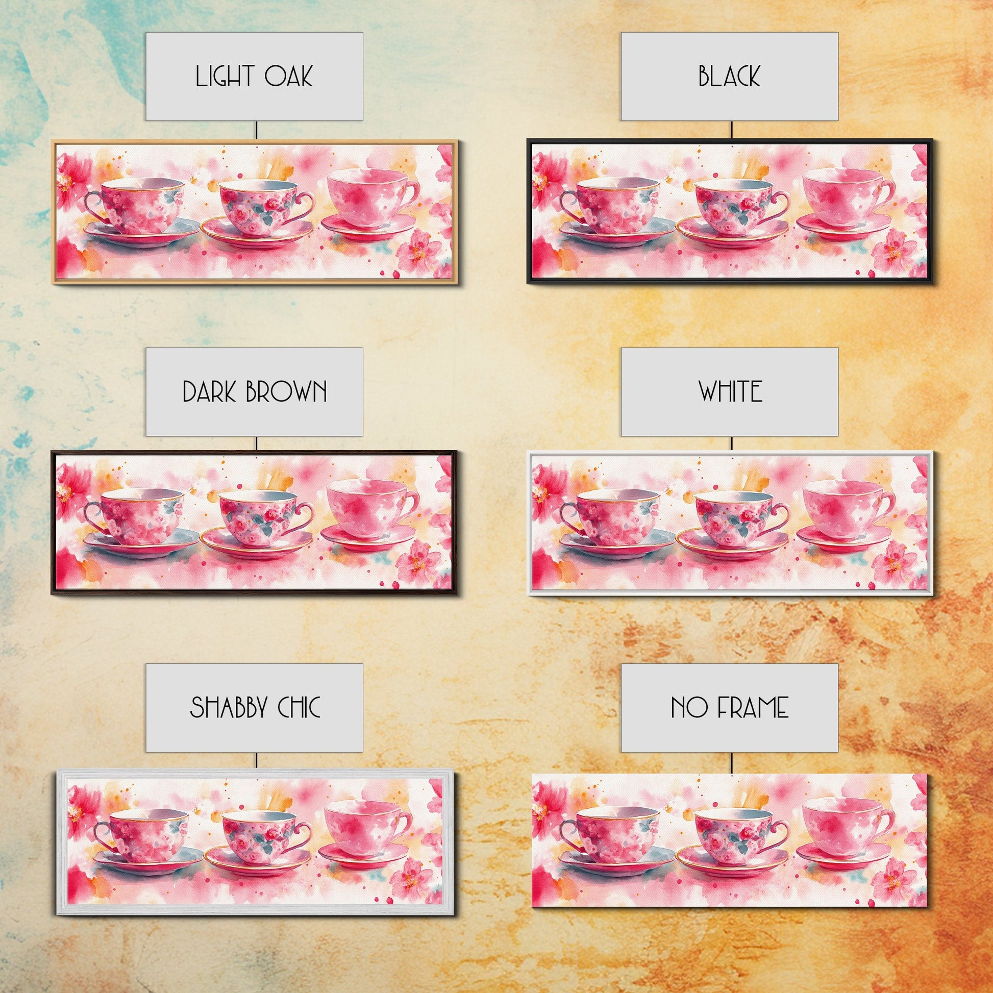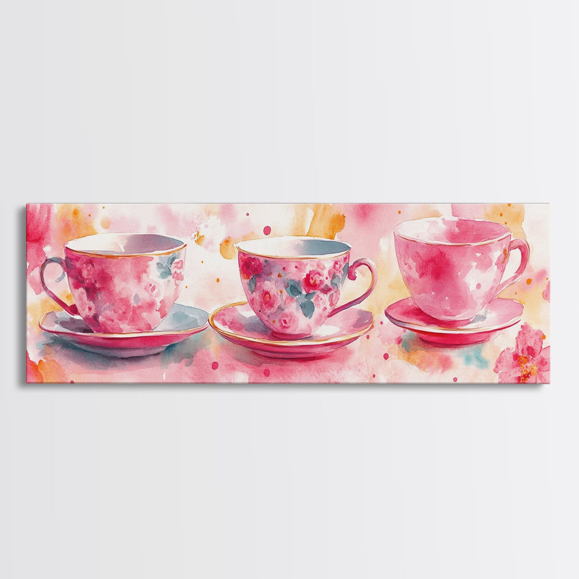 Pink Teacup Canvas Print Feminine Whimsical Kitchen Art Horizontal Pink Artwork Vintage Rustic Wall Art Living Room Framed Art