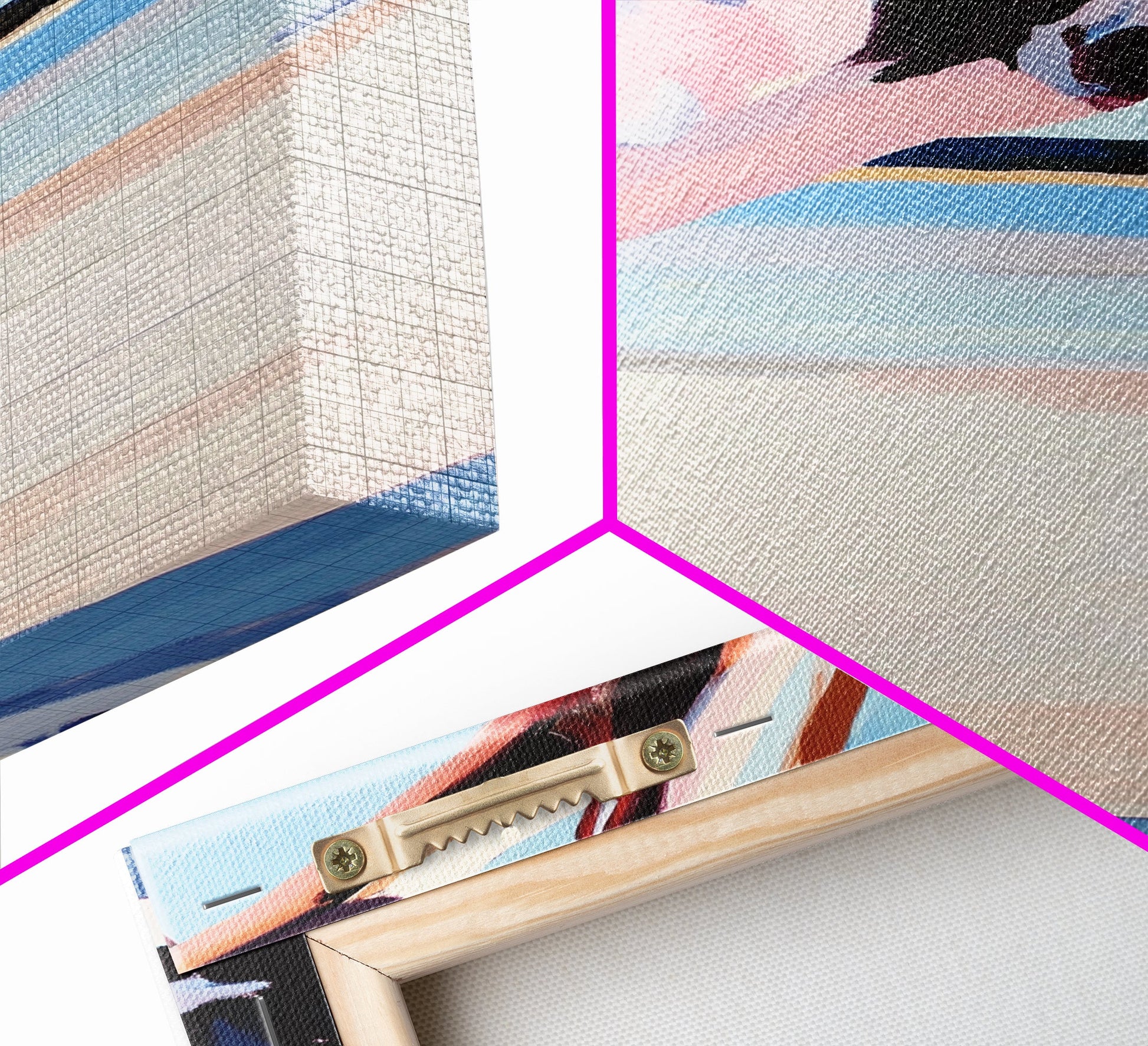 Hello and thank you for taking the time to view our modern high quality giclée artwork! We offer both posters and stretched canvas prints. Our posters are printed on Ultra Matte 60 lb / 230 GSM high quality photo paper, with a thickness of 10 mil. Our canvases are printed on museum grade 350 GSM canvas material with ECO friendly archival grade ink, then hand stretched and stapled over premium, FSC certified and shrink resistant frames. Designed and built to last a lifetime.