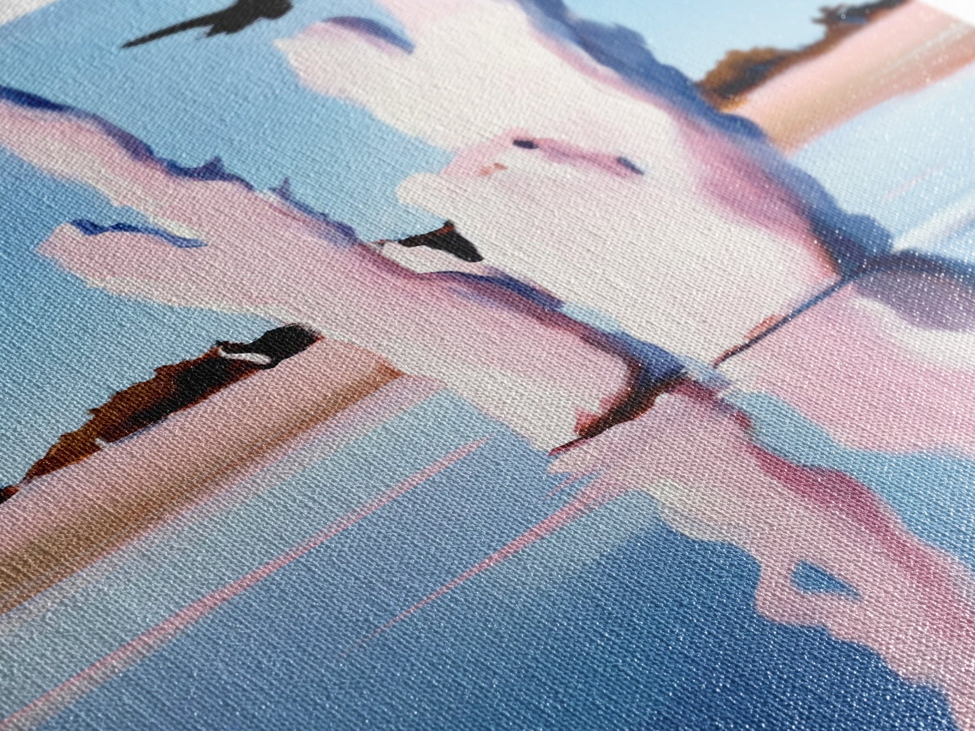 Most of our canvases are made in the USA, with the exception of canvases ordered with the light oak unstained frames, and any large canvases (24x48, 30x60, 16x48 and 20x60) ordered WITH a frame. These are temporarily made in and shipped from Europe, while we try to find a more consistent supplier in the USA.