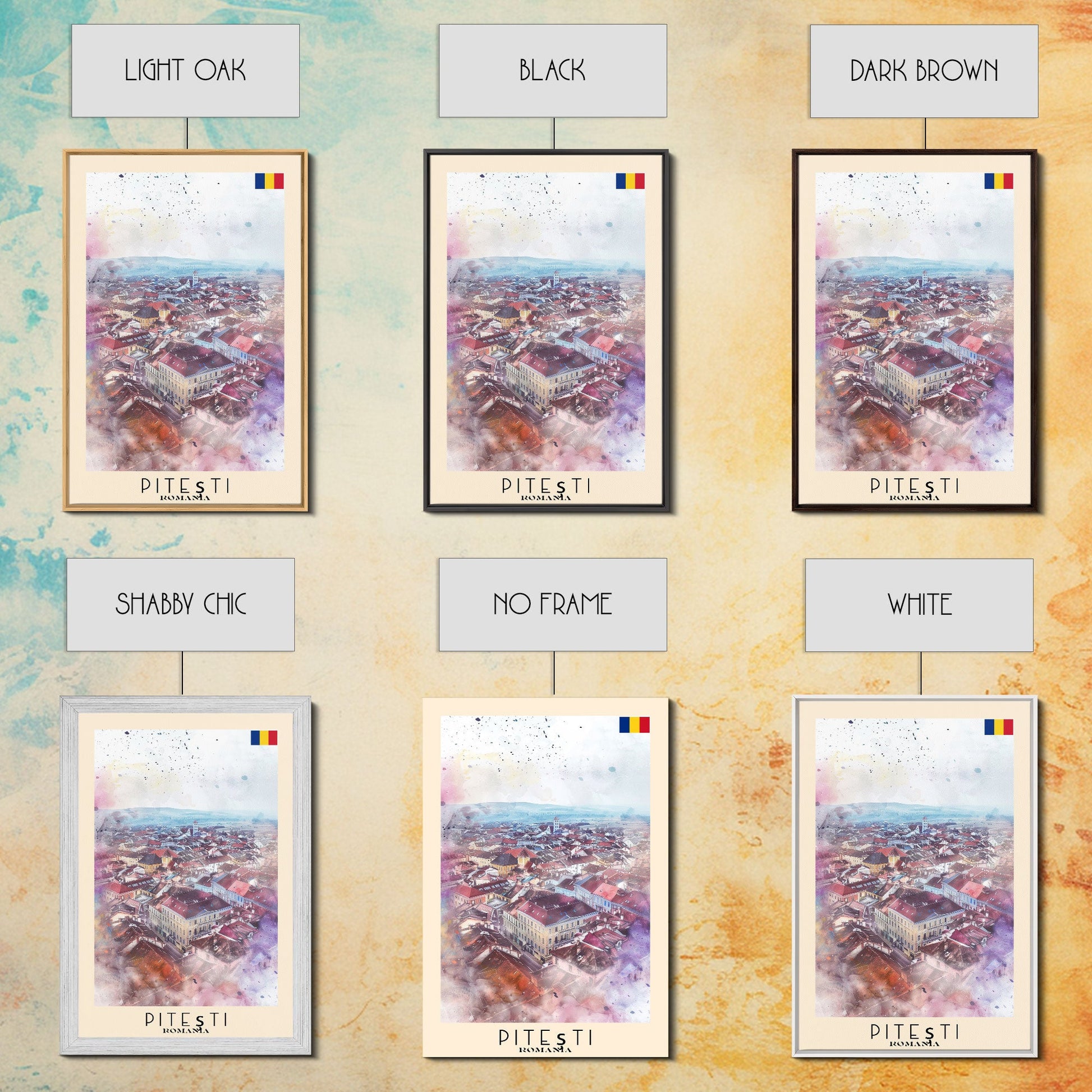 Piteti Romania Travel Poster Framed Canvas Print, Watercolor Painting, Scenic Wall Art, Home Decor, Romanian Cityscape, Classic Art