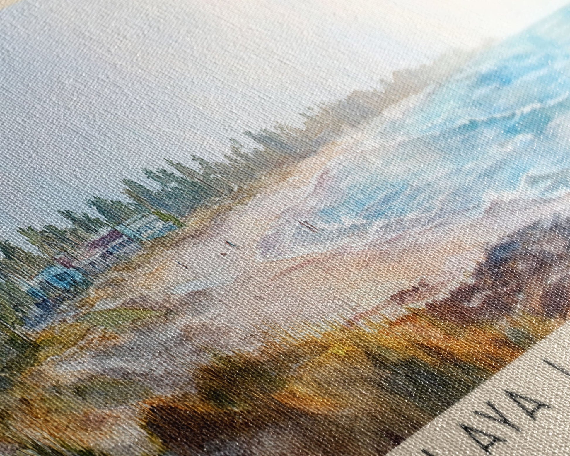 Most of our canvases are made in the USA, with the exception of canvases ordered with the light oak unstained frames, and any large canvases (24x48, 30x60, 16x48 and 20x60) ordered WITH a frame. These are temporarily made in and shipped from Europe, while we try to find a more consistent supplier in the USA.