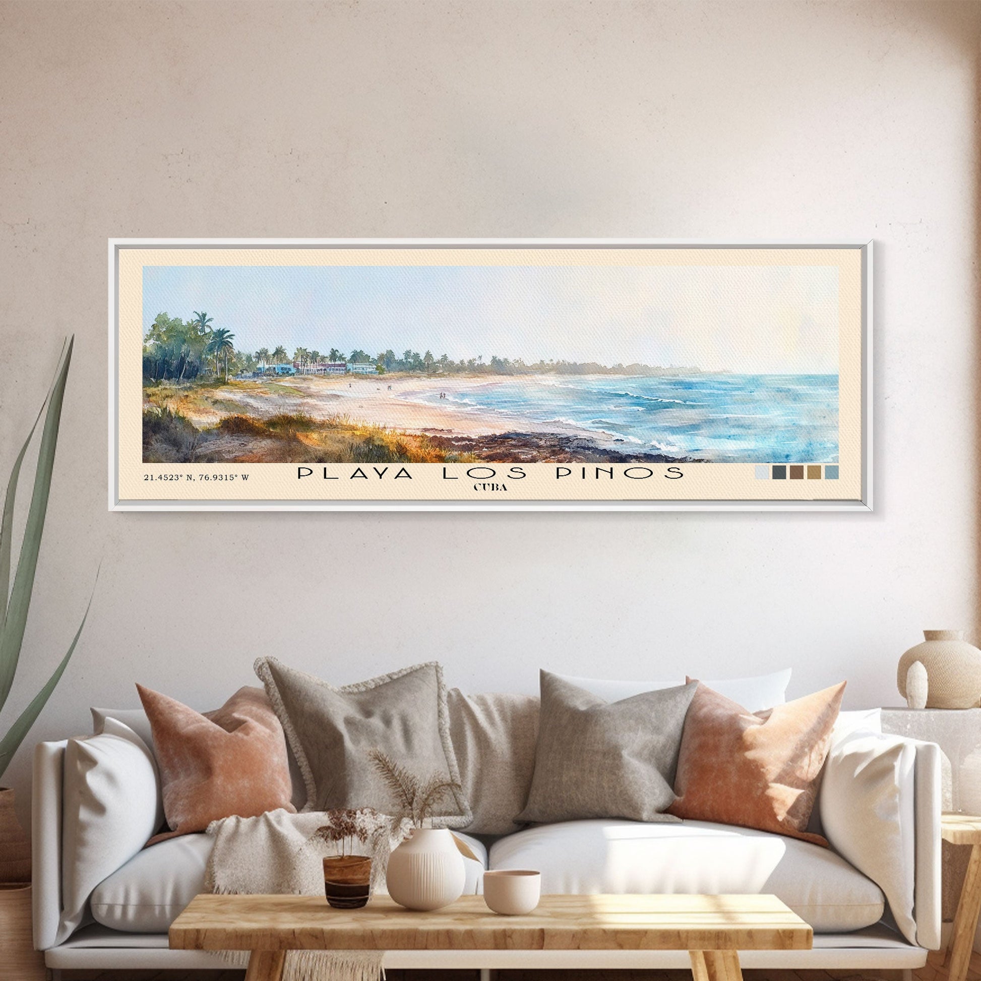 Playa Los Pinos, Cuba Watercolor Print, Vacation Gift, Cuba Wall Art, Beach Painting, Beach Decor, Large Wall Art, Wood Frame Art