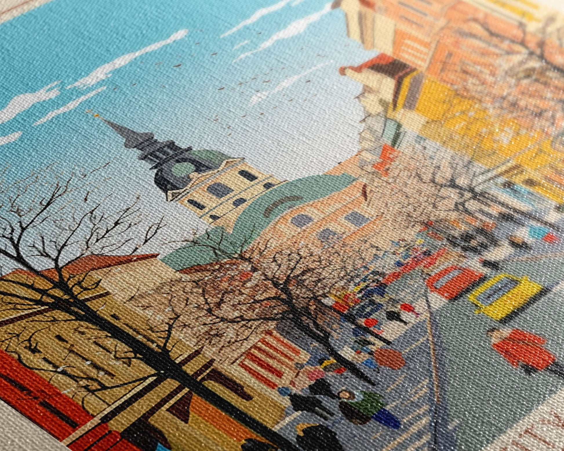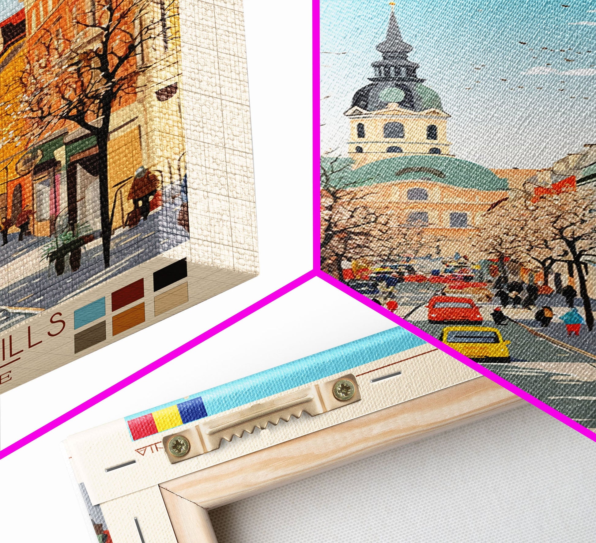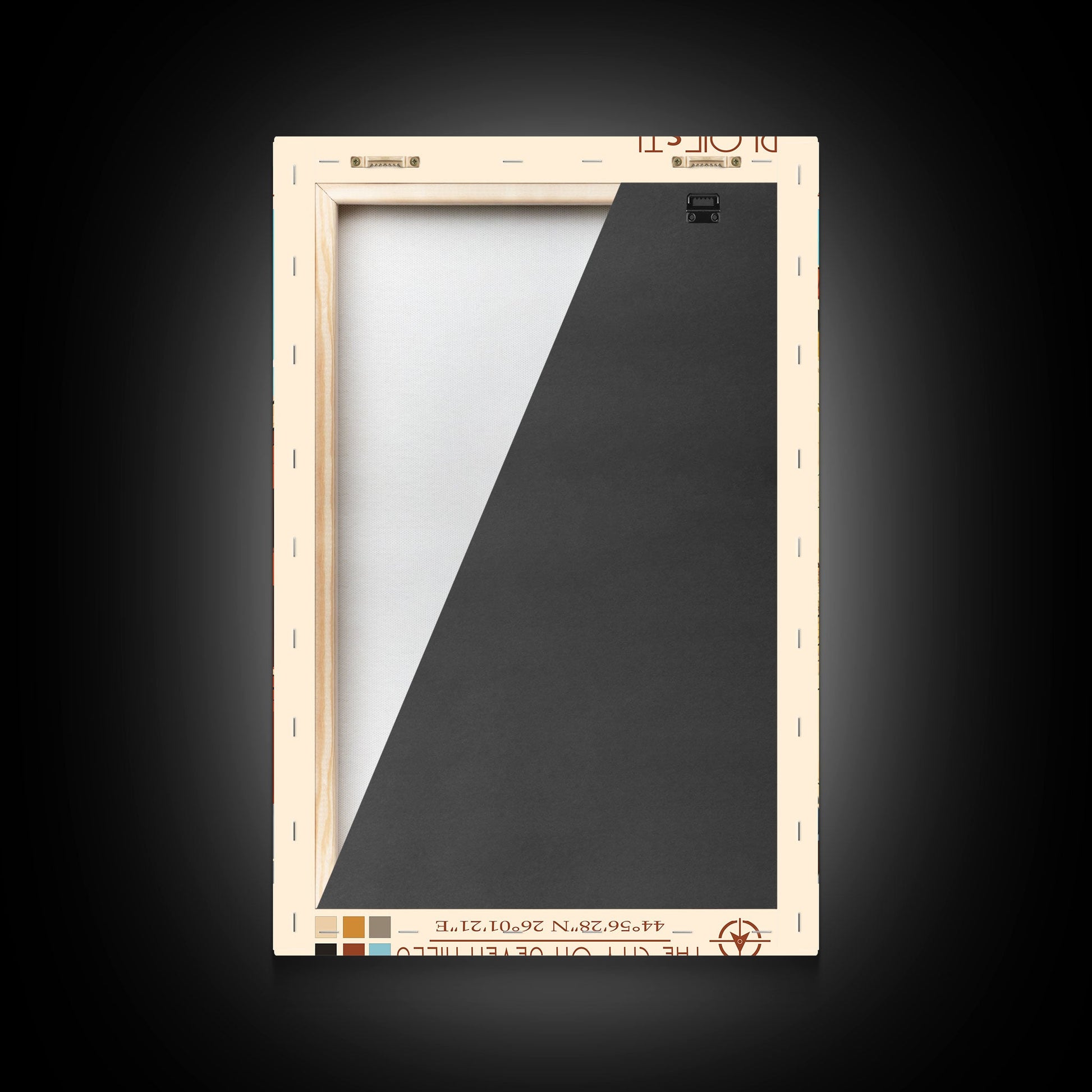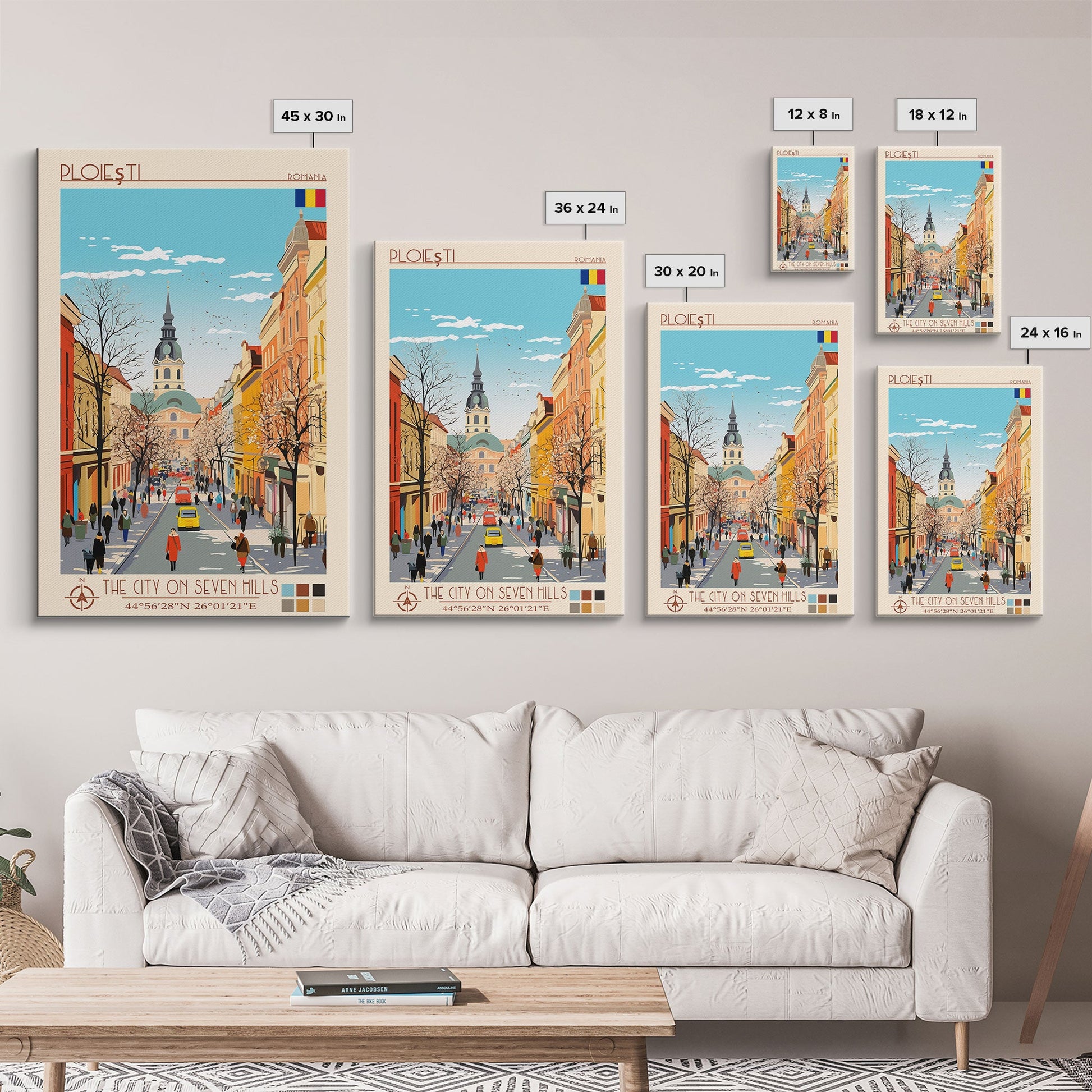 Ploiești Romania Travel Poster Framed Canvas Print, Midcentury Modern Art, Pop Art Wall Decor, Scenic Wall Art, Bedroom Decoration