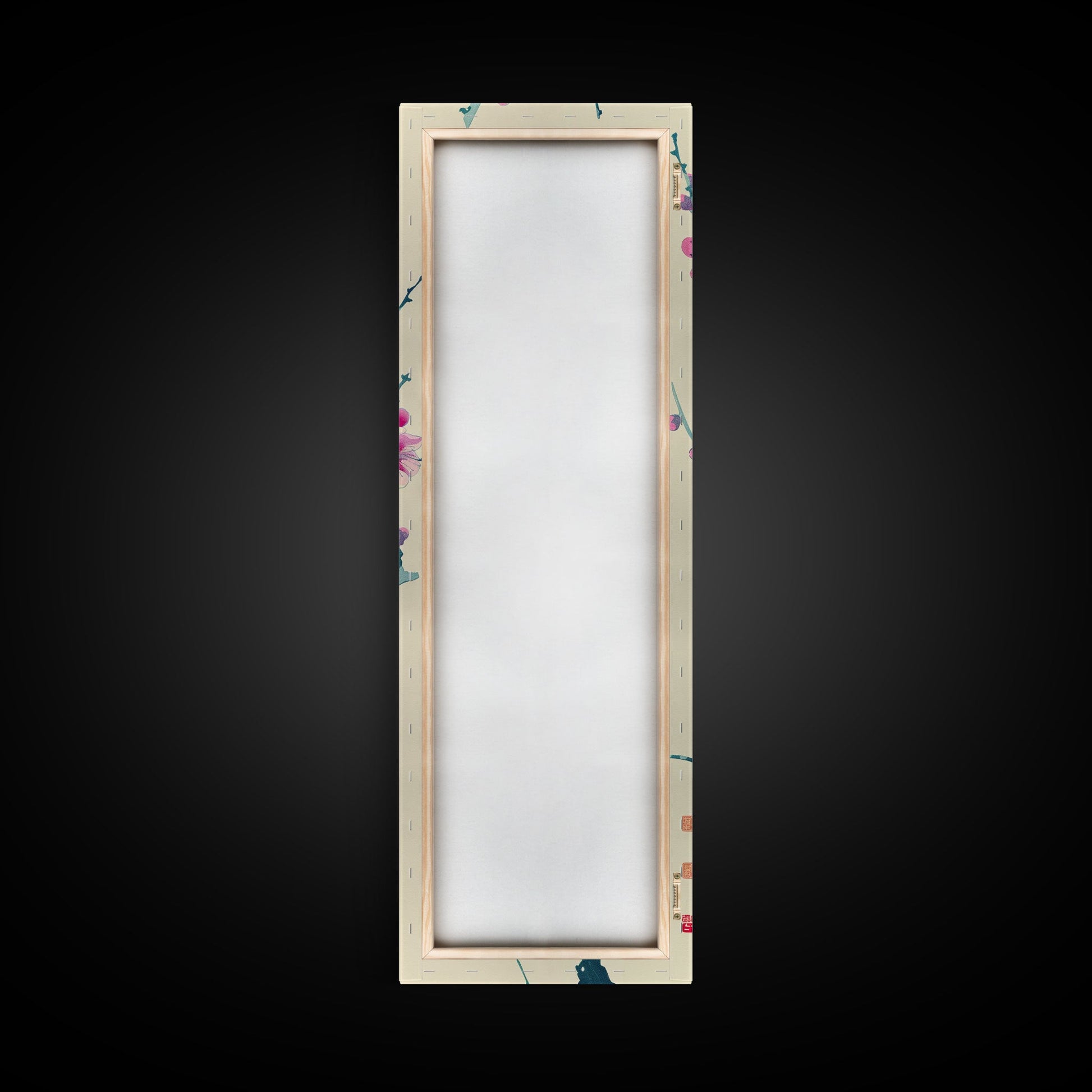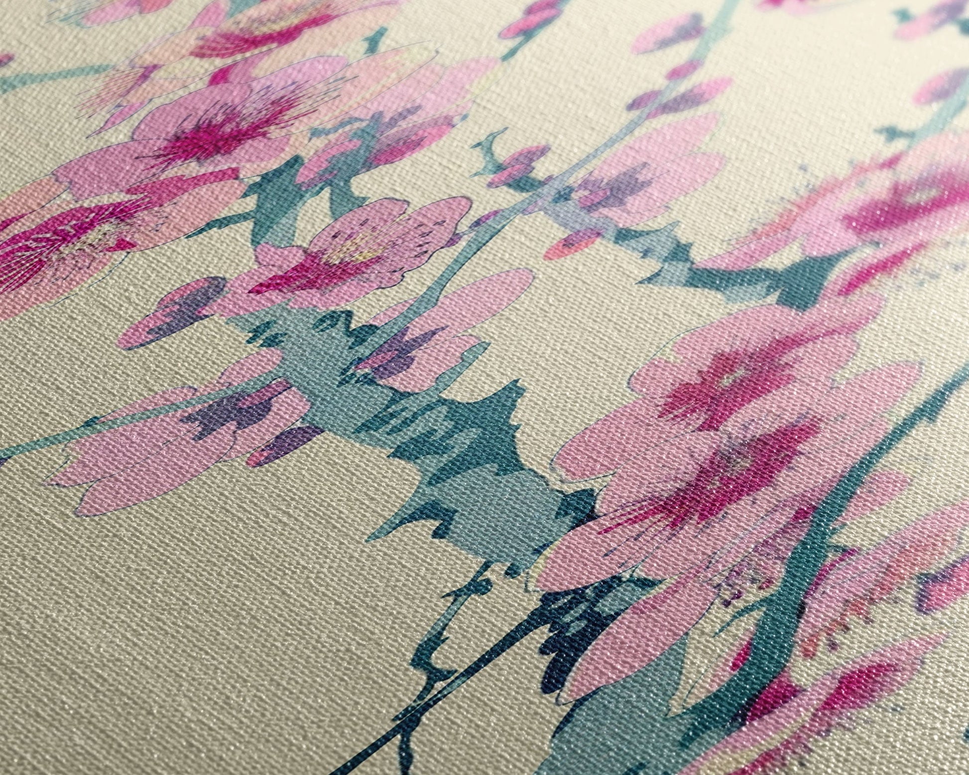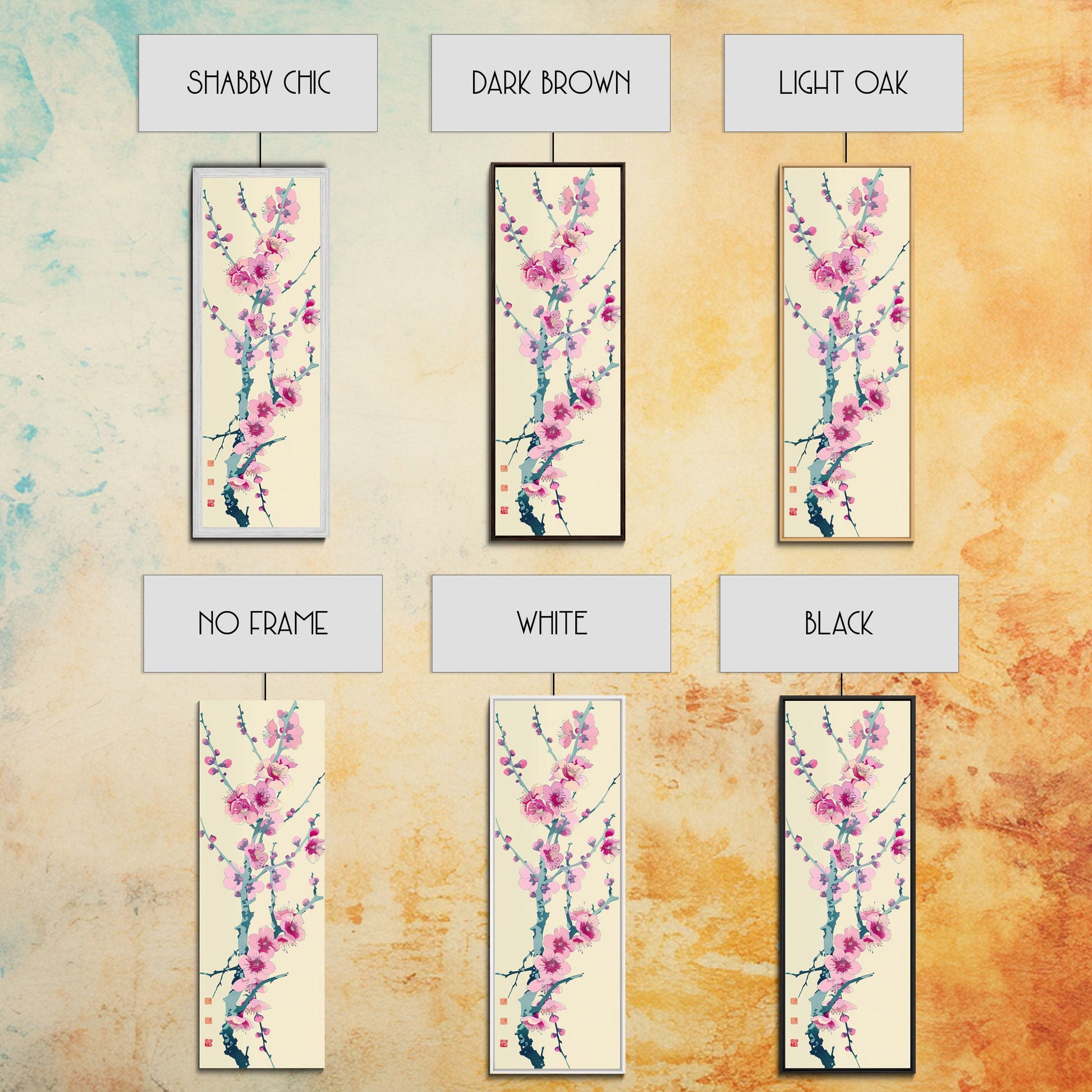 Plum Blossom Branch in Japanese Skinny Art with Delicate Pink Flowers – Framed Canvas Print
