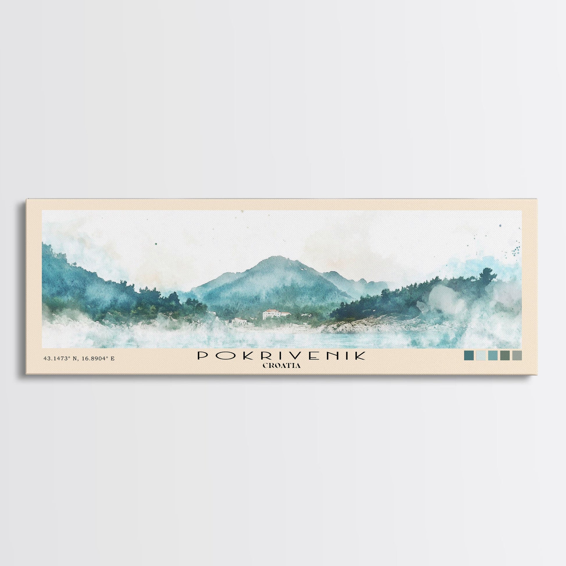 Pokrivenik, Croatia Watercolor Print, Vacation Gift, Croatia Wall Art, Beach Painting, Beach Decor, Large Wall Art, Wood Frame Art