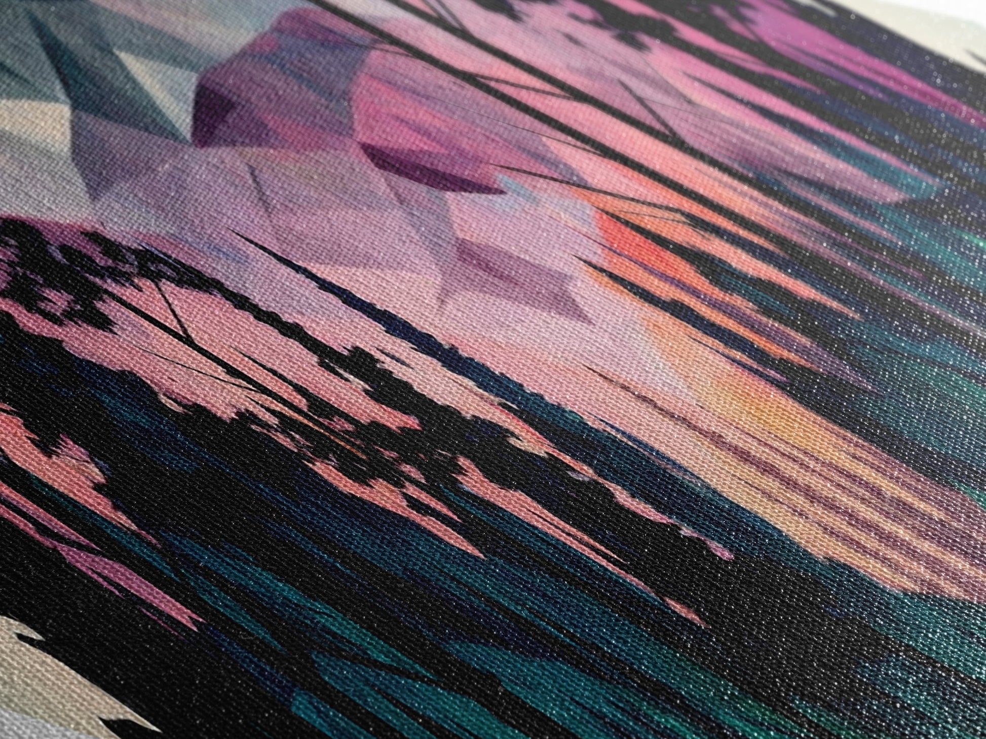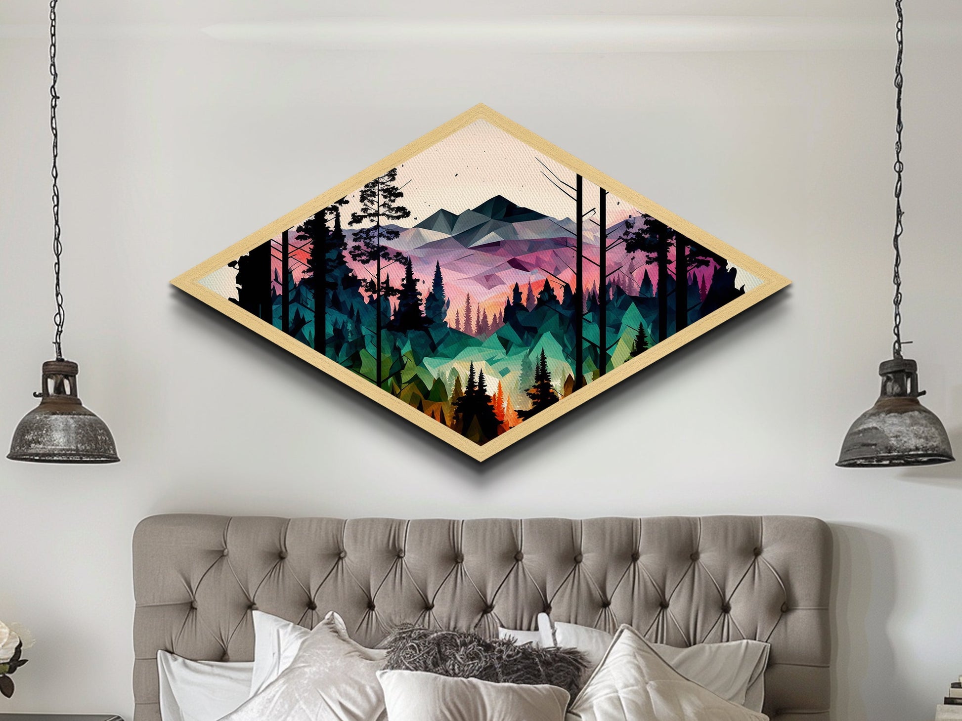 Polygonal Peaks View – Diamond Shaped Geometric Mountain Landscape Canvas Art Print, Nature Forest Sunrise Wall Accent