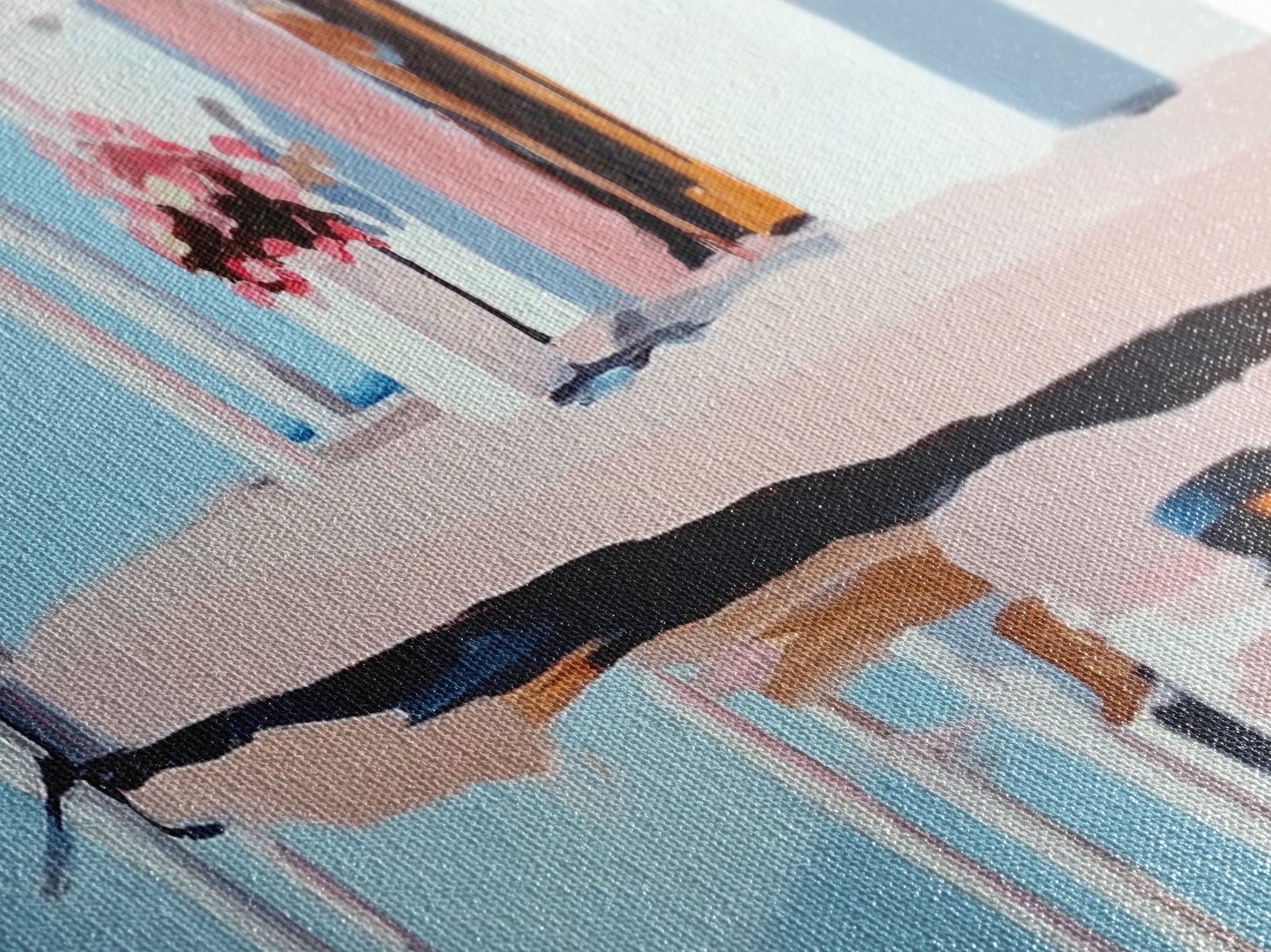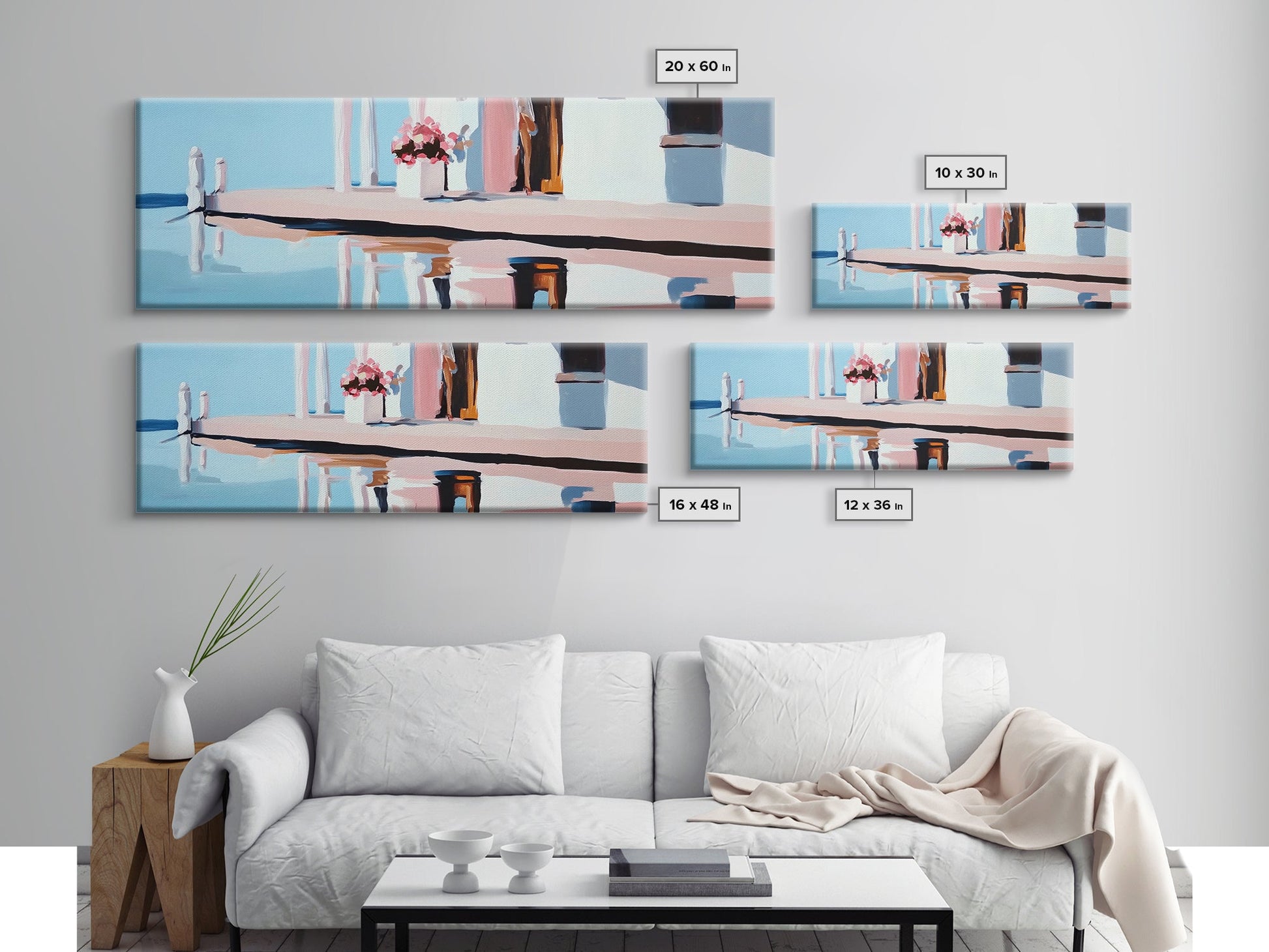 Poolside Reflection, Elegant Patio, Coastal Artwork, Framed Canvas Print, Summer Aesthetic, Modern Living Room Decor, Soft Blues