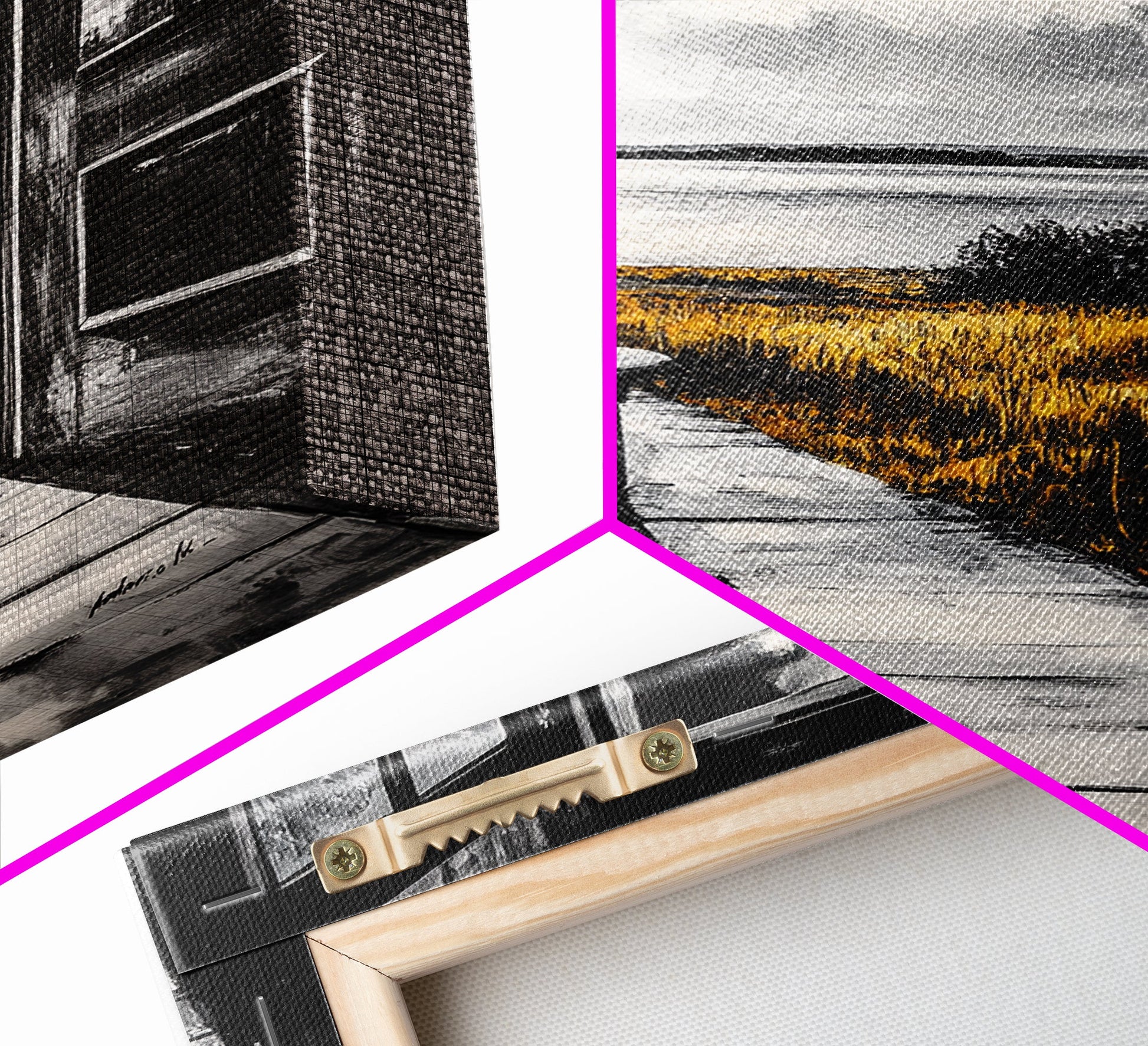 *SHIPPING: Every canvas is carefully wrapped in bubble wrap and foam corner protectors, and shipped fully assembled and ready to hang with sawtooth hangers in a flat box. All you need is a hammer!