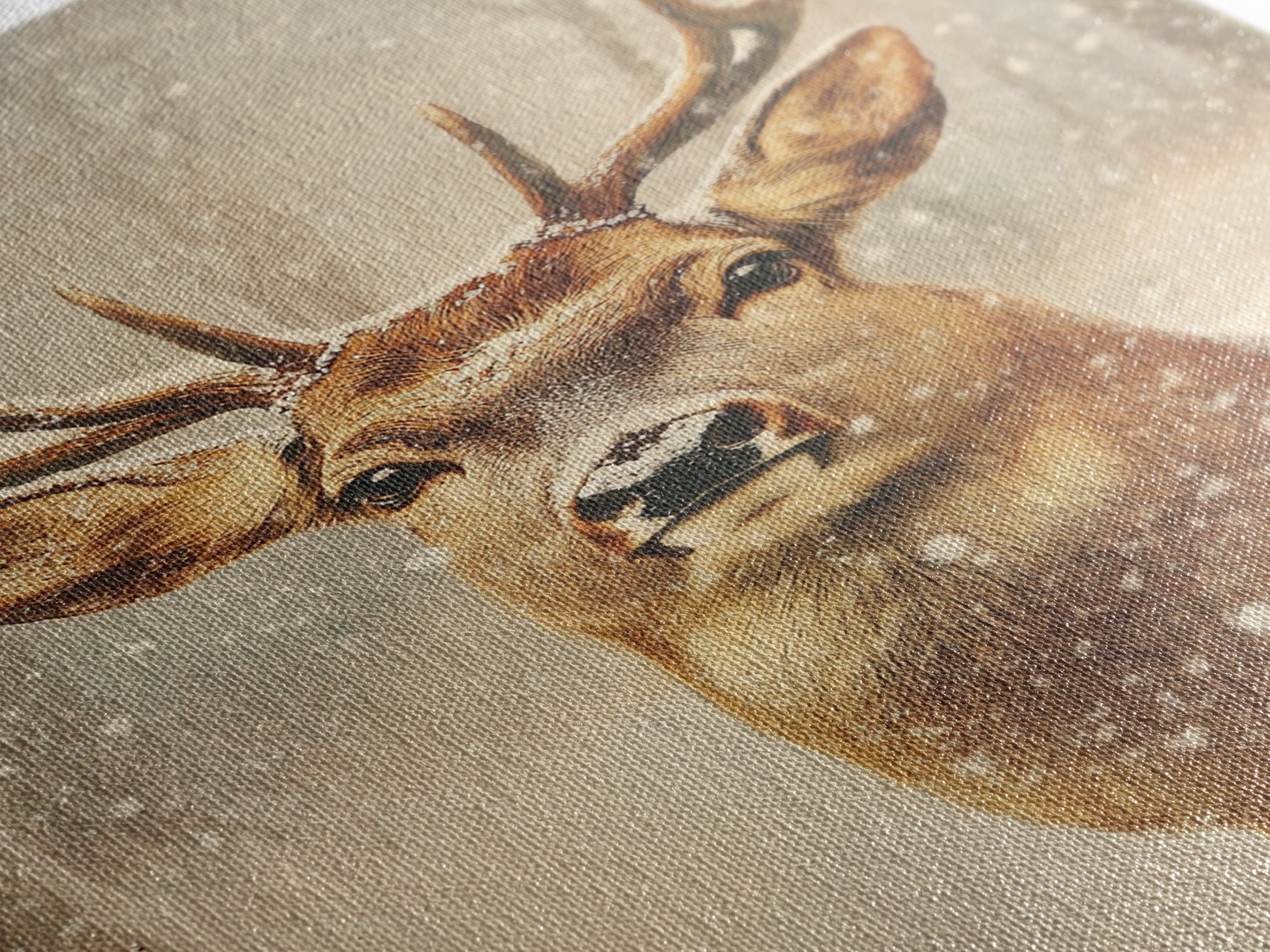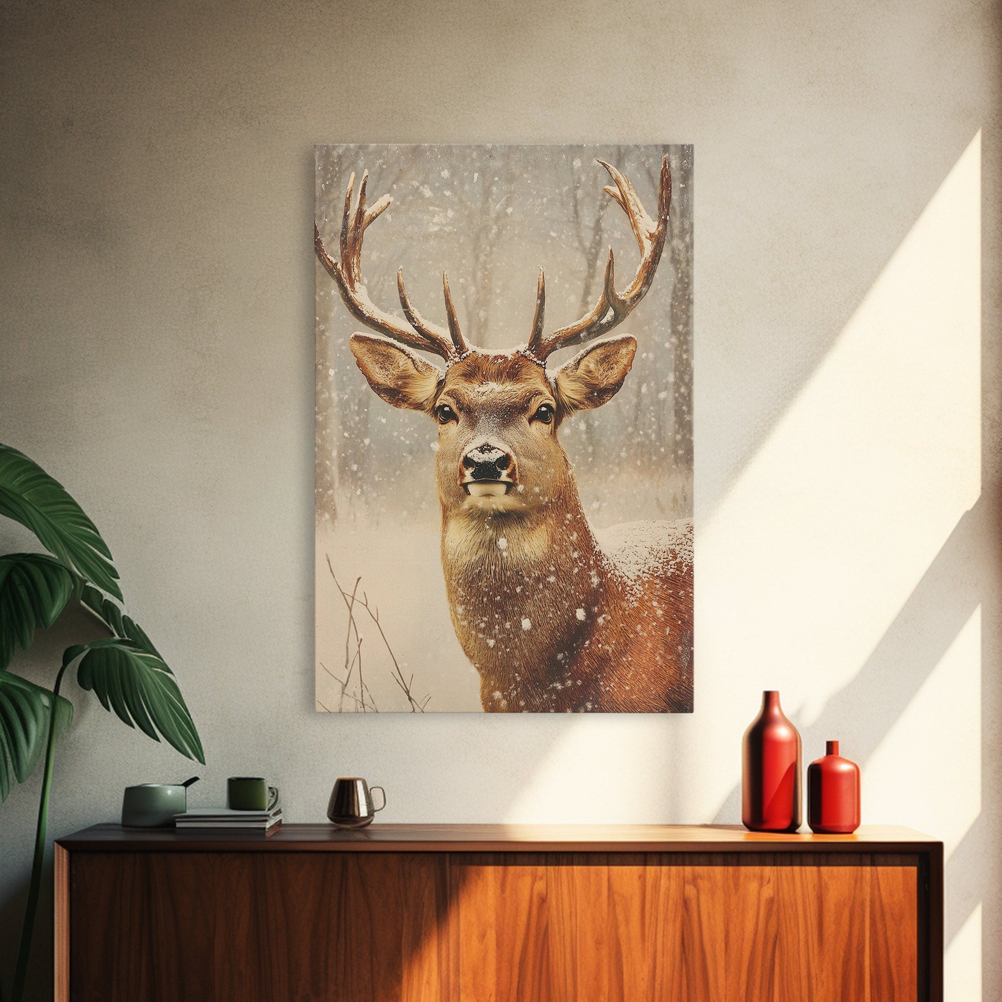 Portrait of a Deer in Winter, Framed Canvas print, Winter Decor, Winter Not Christmas Wall Art, Seasonal Decor