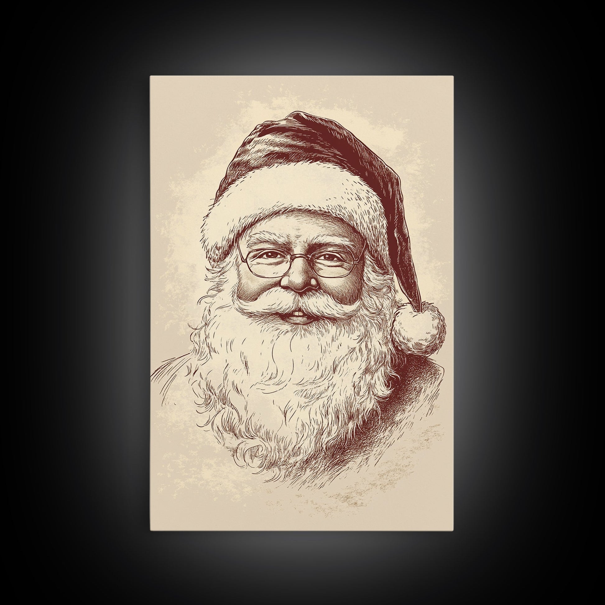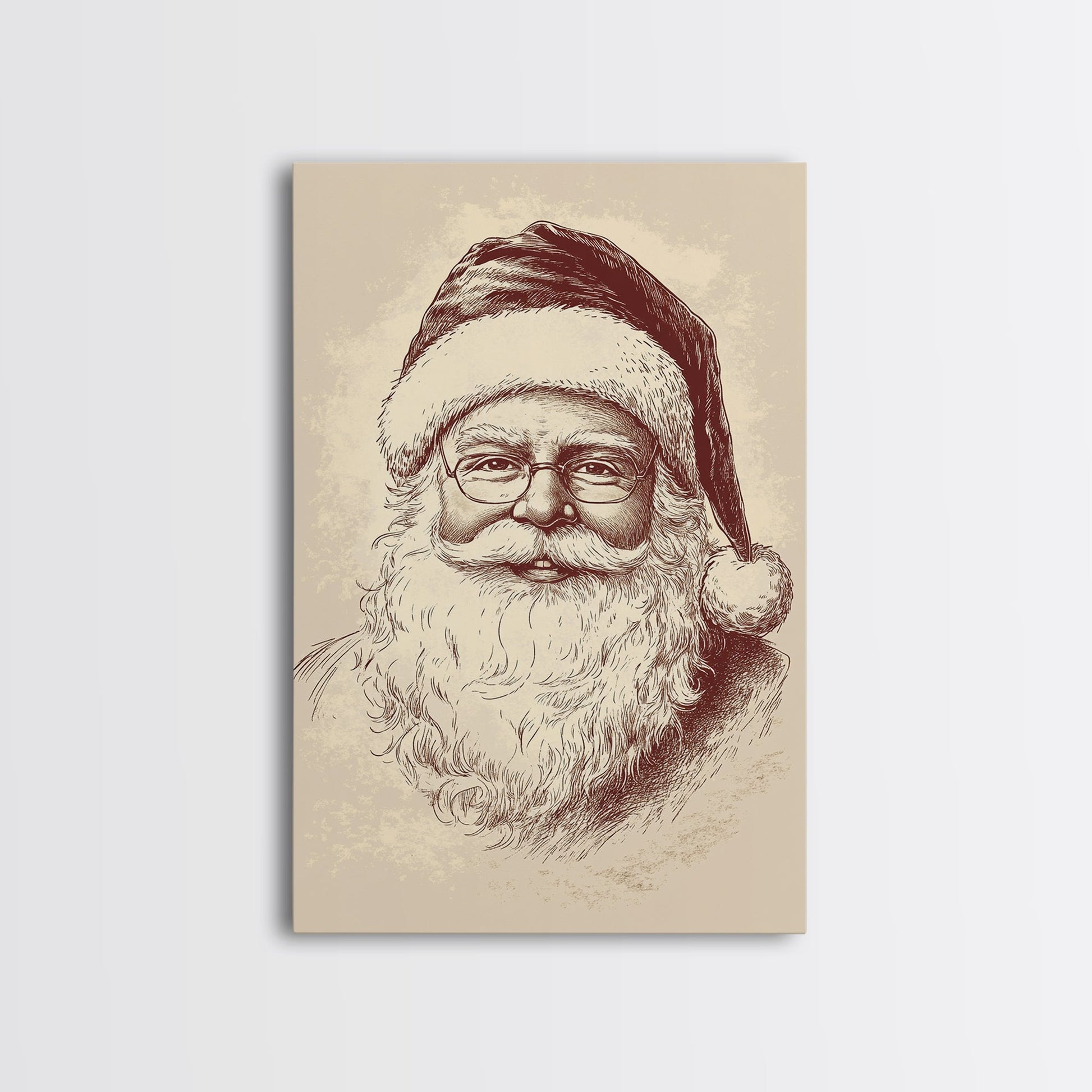 Portrait of Santa Clause Canvas Print - Framed Canvas - Minimalist Christmas Art - Boho Christmas Art - Rustic Christmas Art
