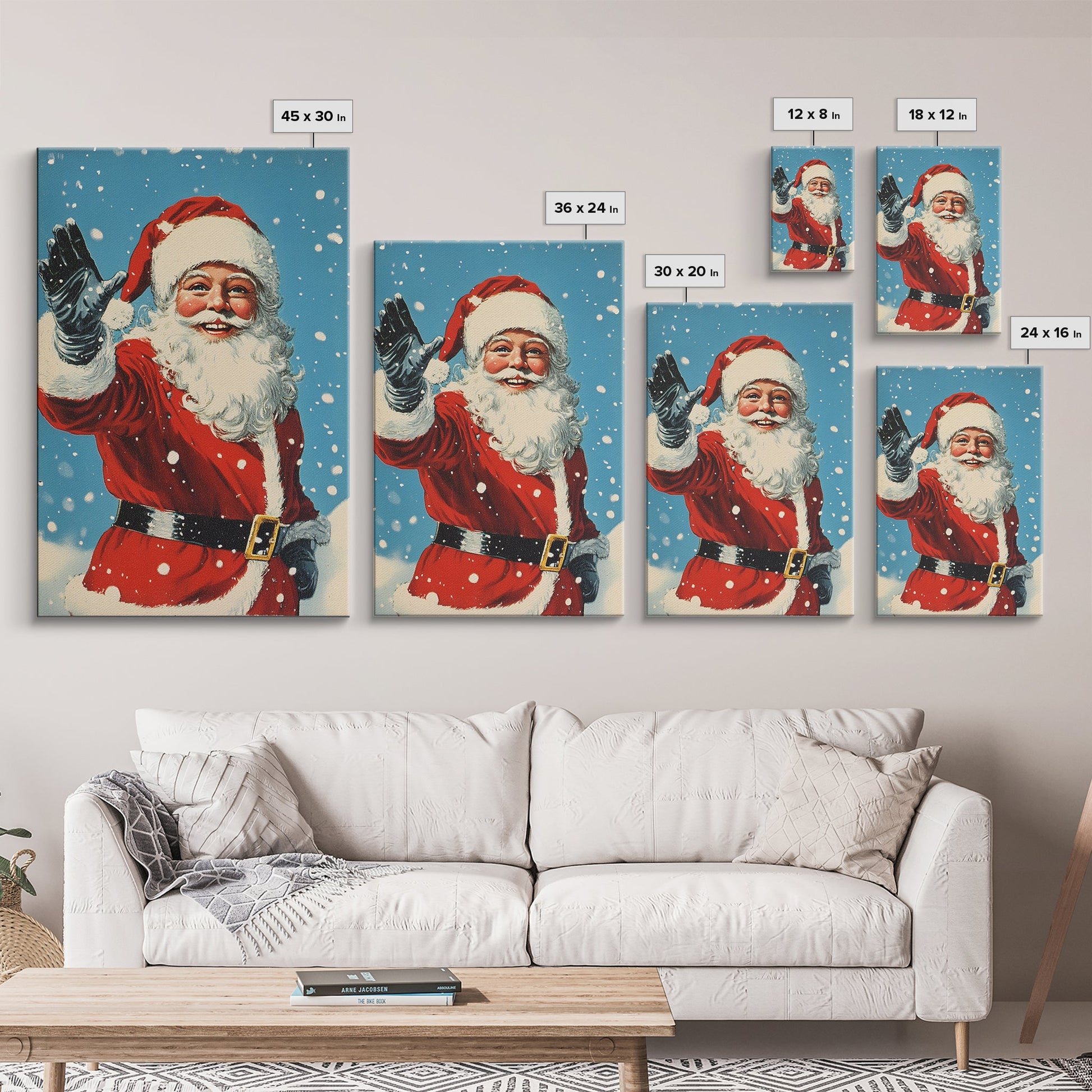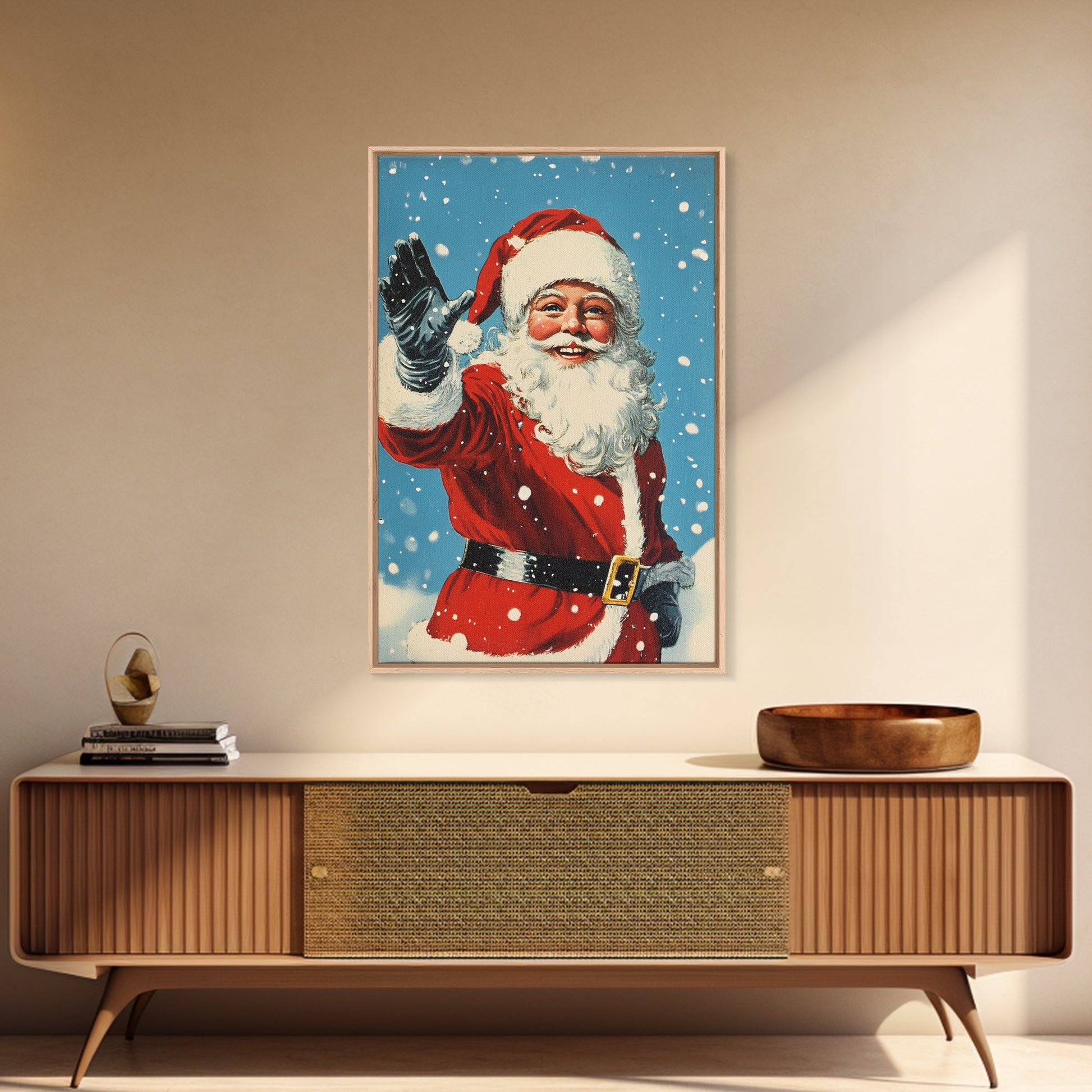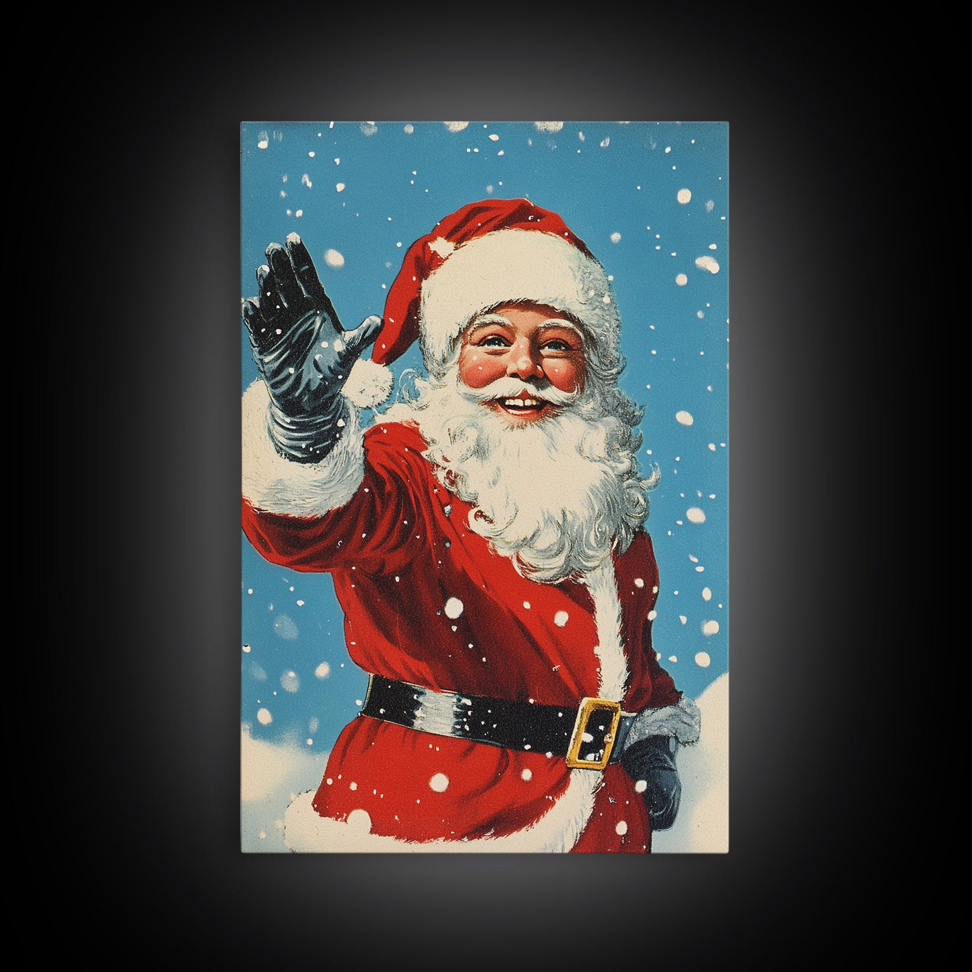 Portrait of Santa Waving Framed Canvas Print, Santa Painting, Santa Art, Santa Home Decor, Christmas Wall Art, Seasonal Christmas, Clearance Christmas