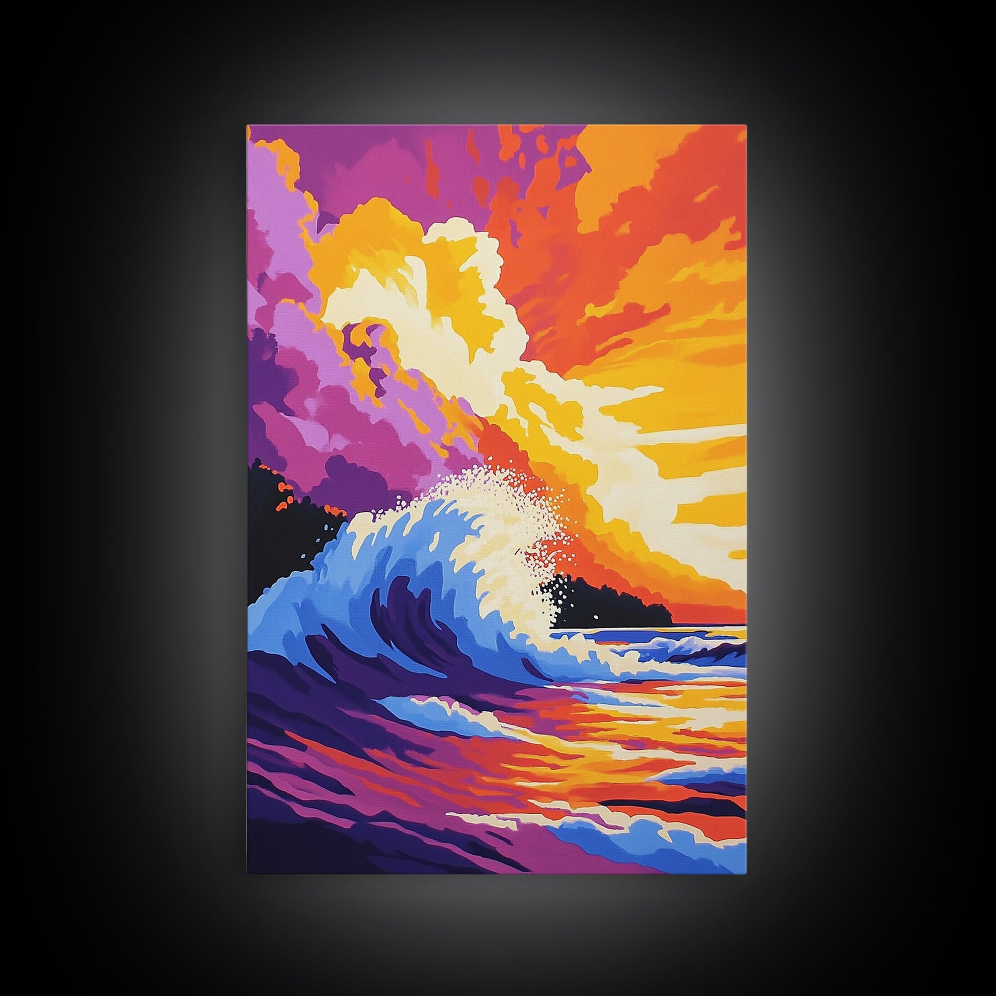 Powerful Ocean Wave, Surfing Wall Art, Vibrant Sunset Seascape, Coastal Home Decor, Framed Canvas Print, Beach House Living Room Art