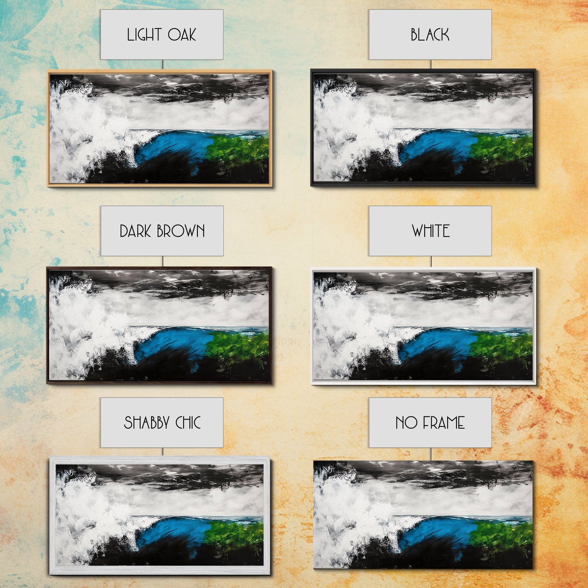 Powerful Wave, Ocean Energy, Coastal Vibes, Modern Abstract, Blue and Green Art, Large Statement, Beach House, Framed Canvas Print