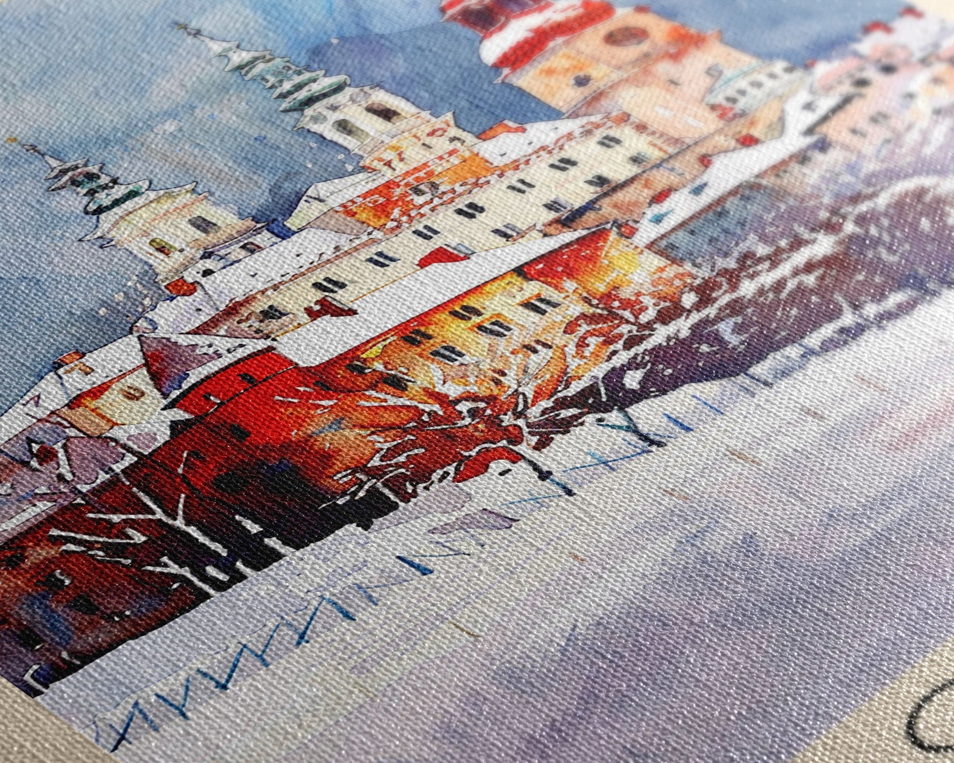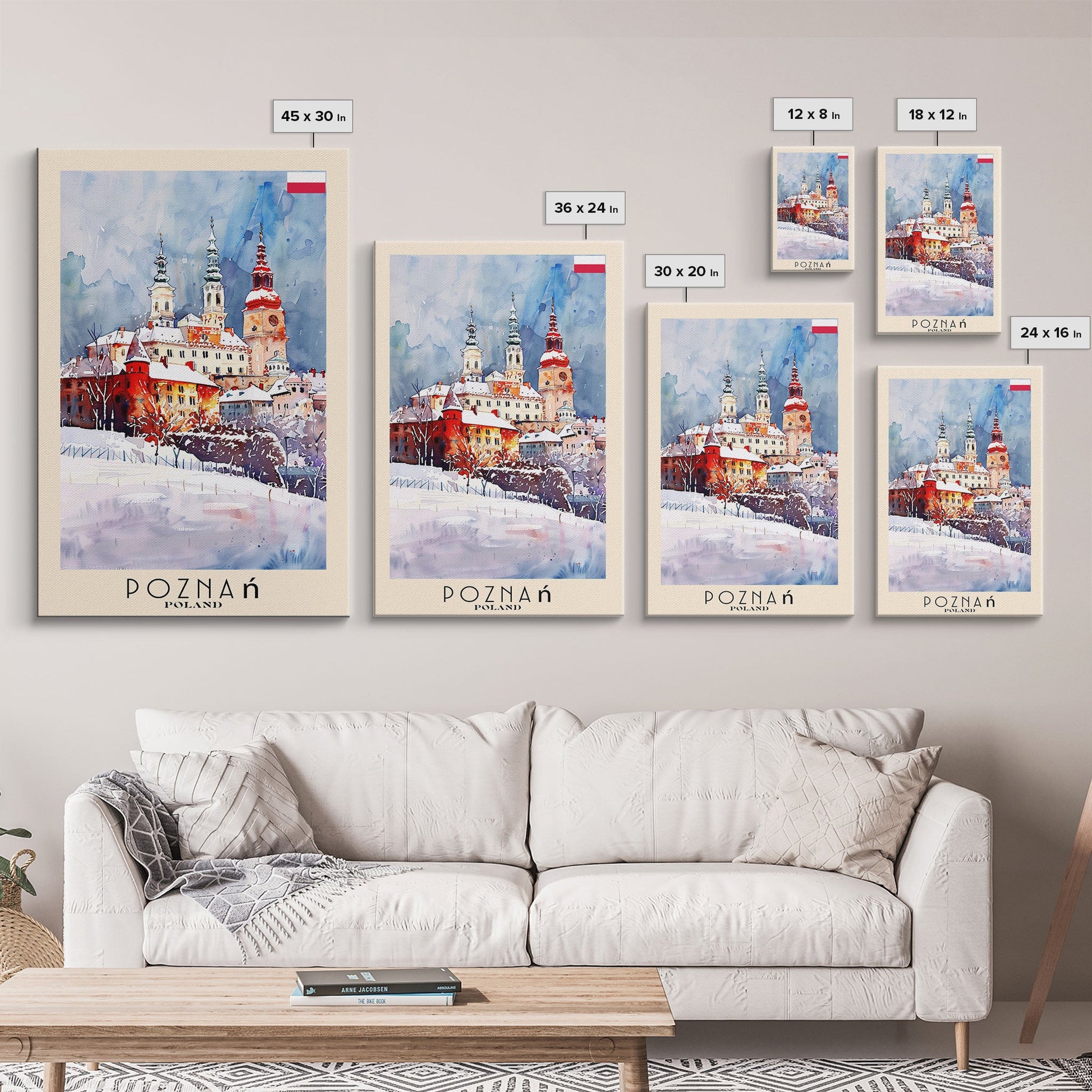 Poznan Poland Travel Poster Framed Canvas Print, Watercolor Painting, Scenic Wall Art, Home Decor, Polish Cityscape, Modern Art