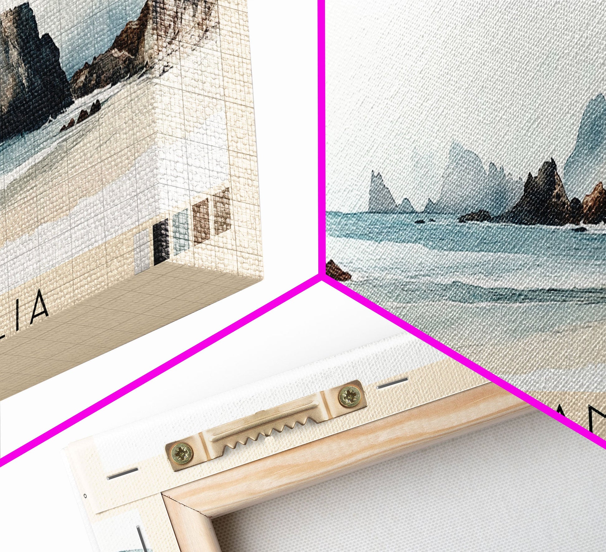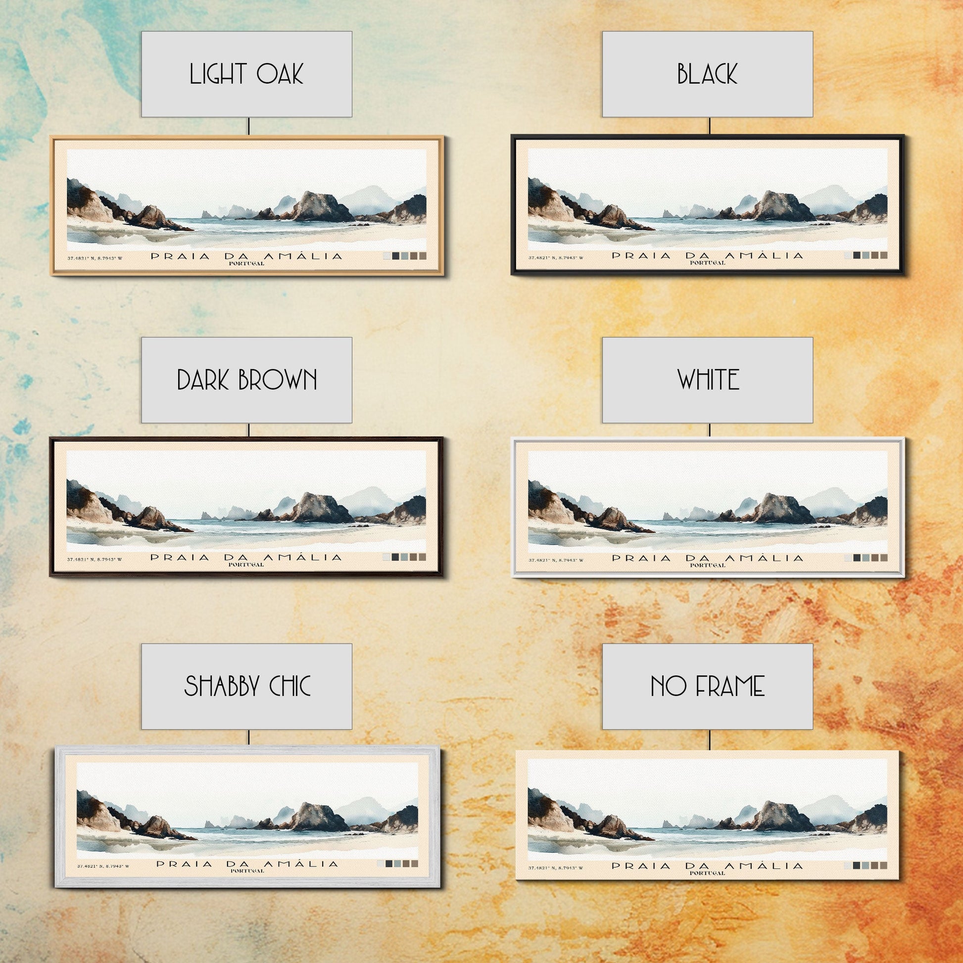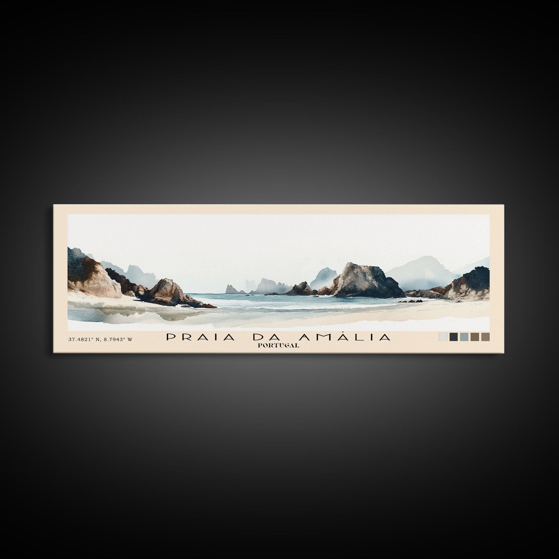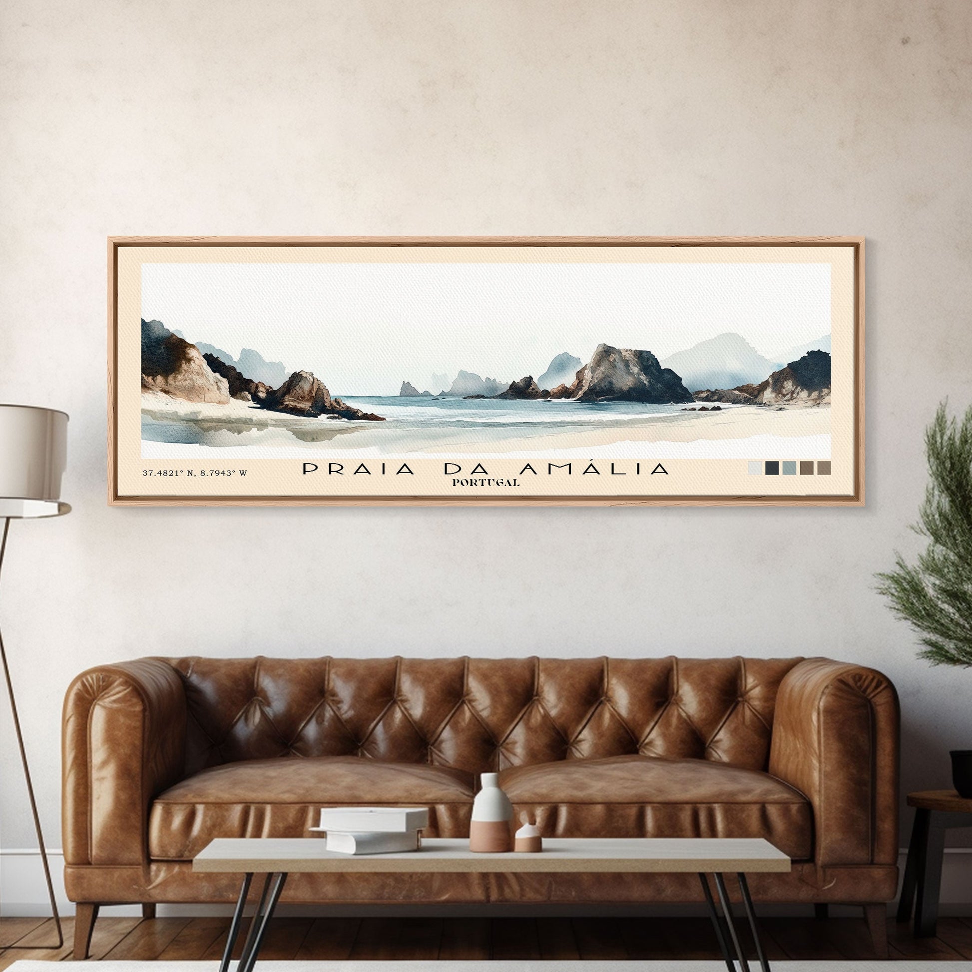 Praia da Amália, Portugal Watercolor Beach Print, Vacation Gift, Portugal Wall Art, Framed Canvas Print, Framed Beach Painting