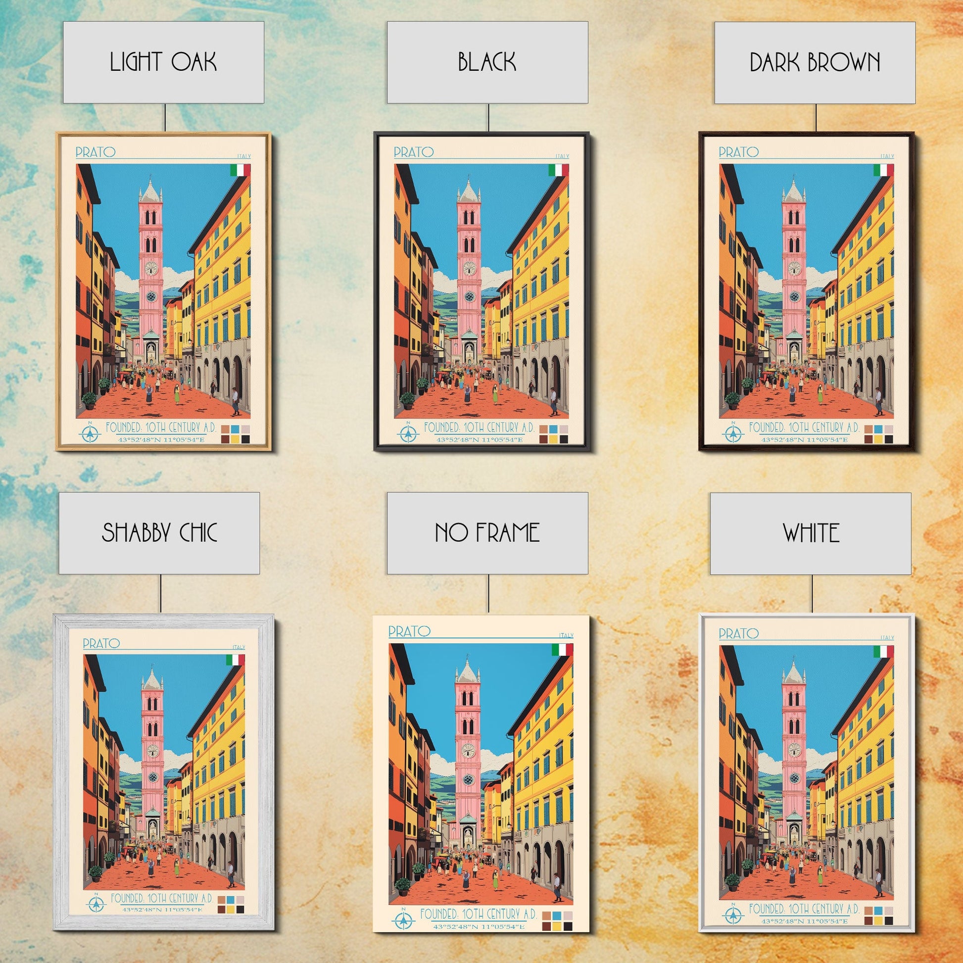 Prato Italy Travel Poster Framed Canvas Print, Midcentury Modern Art, Pop Art Wall Decor, Home Decor, Vacation Gift, Office Art