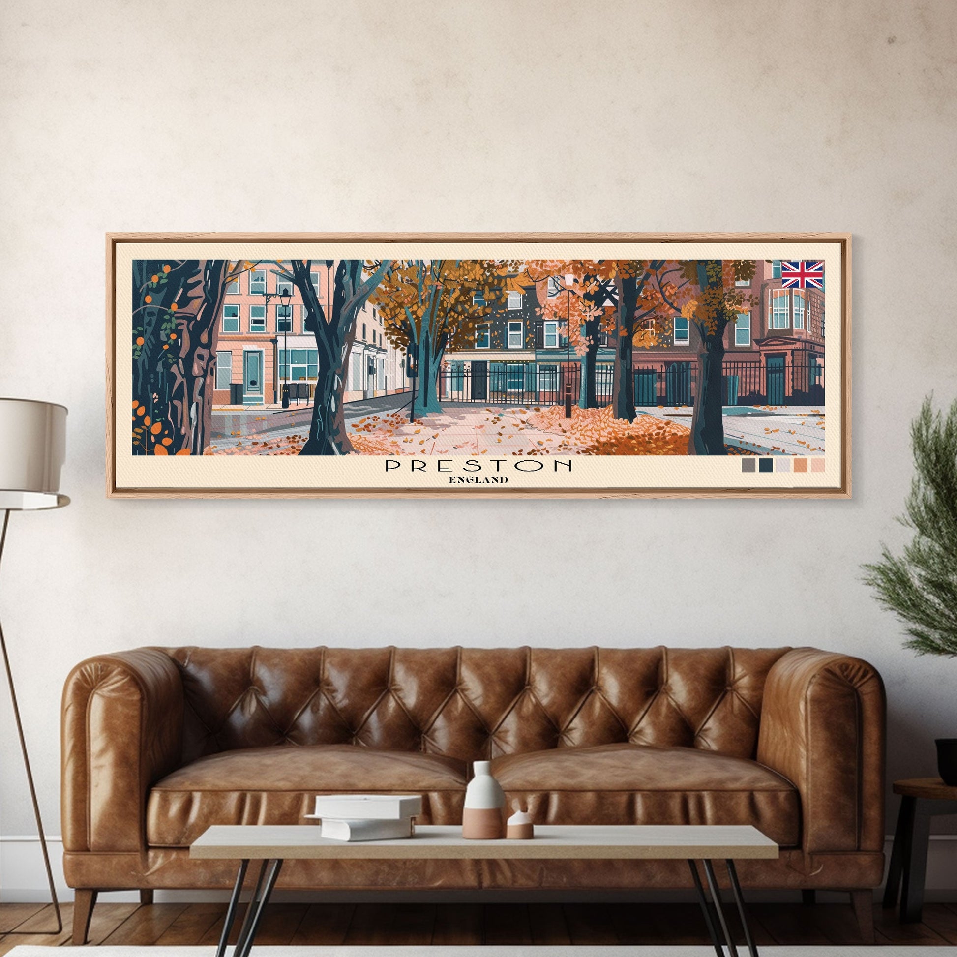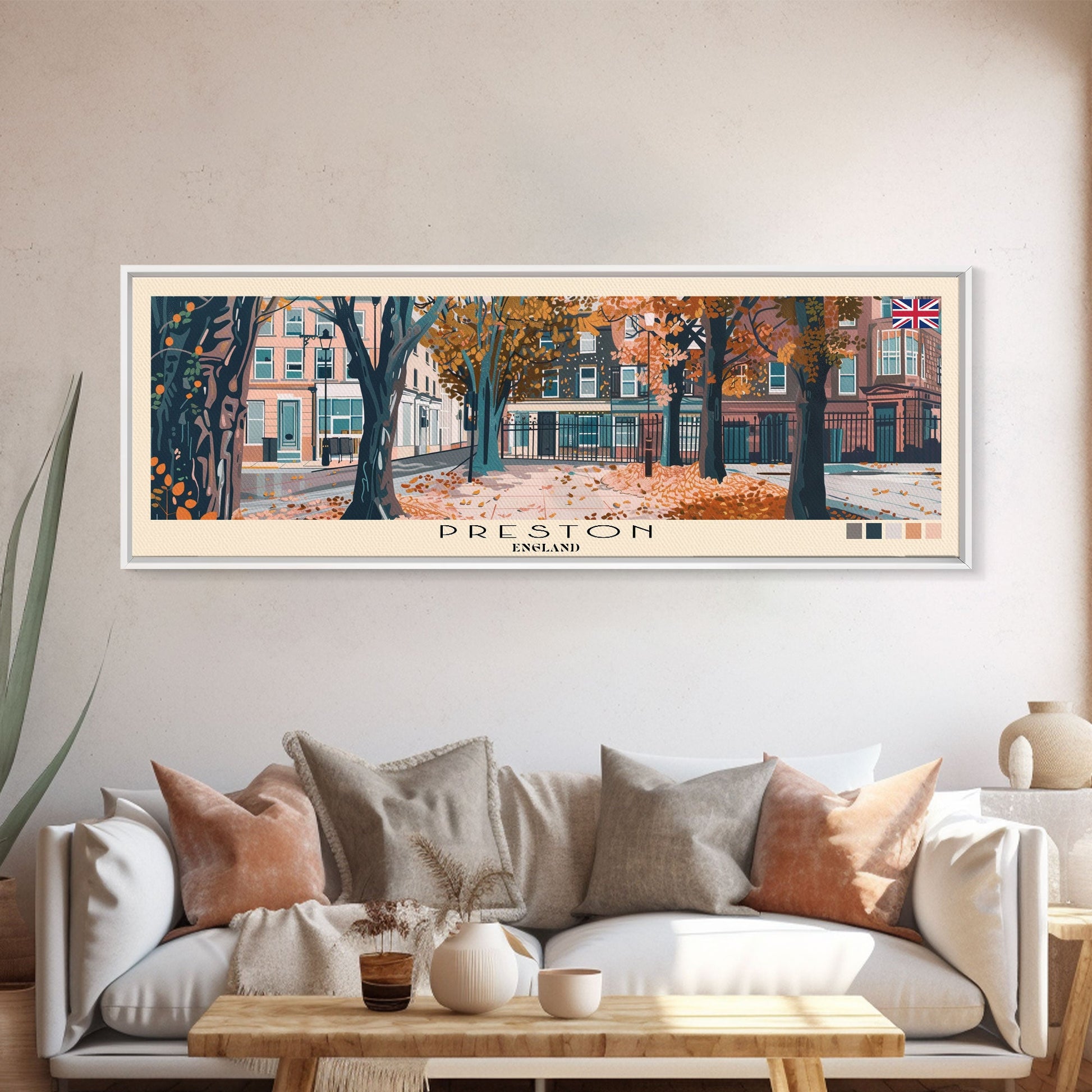 Preston, England Panoramic Canvas Print, Preston, England Painting, England Art, Preston Travel Poster, Travel Art, Guest Room Painting