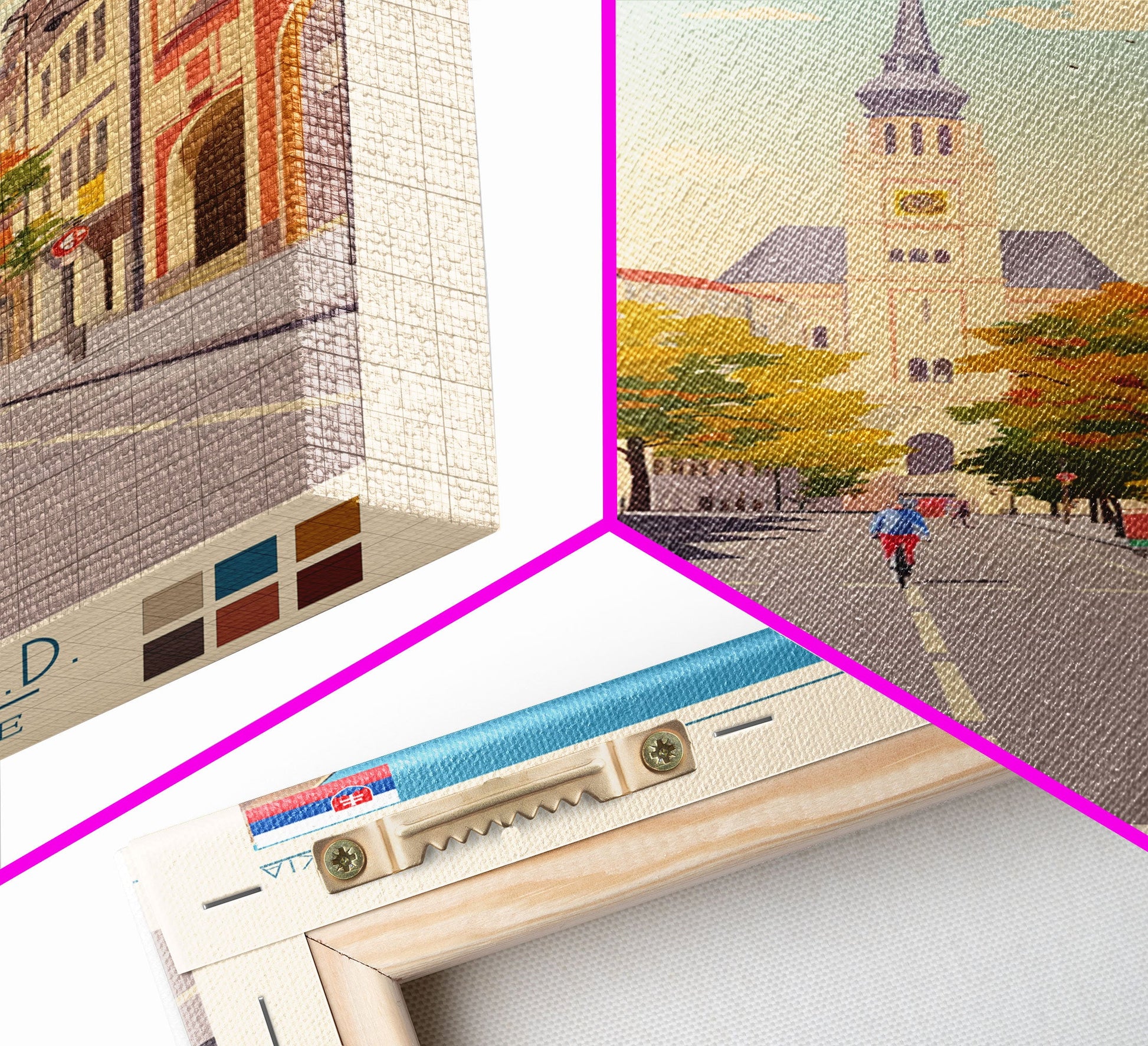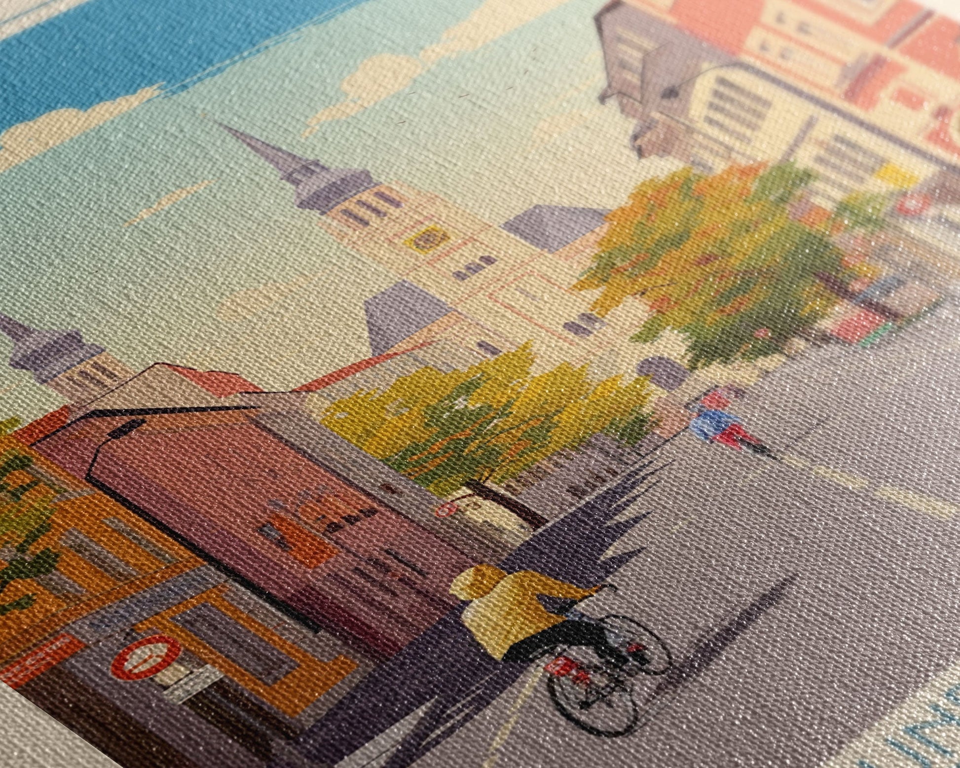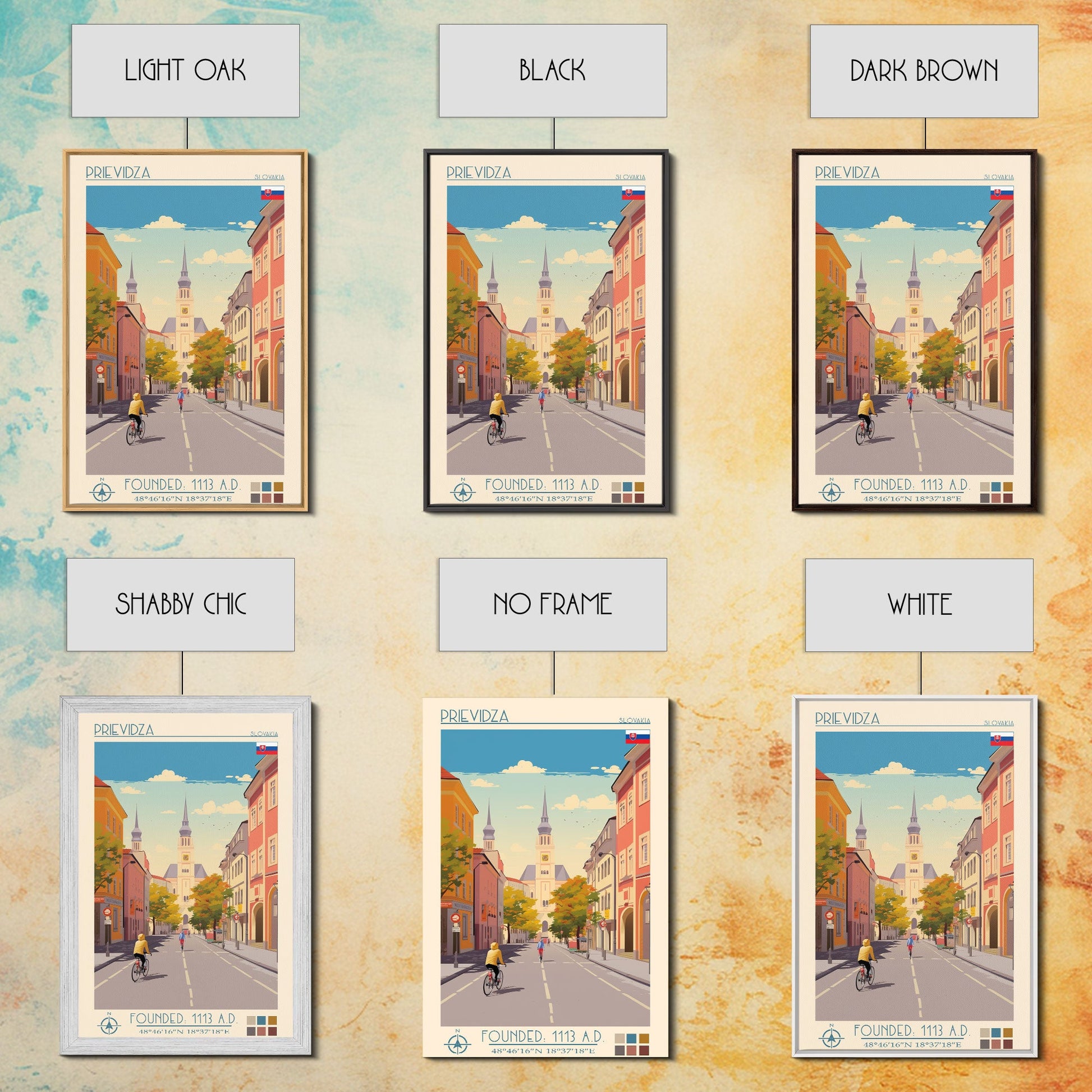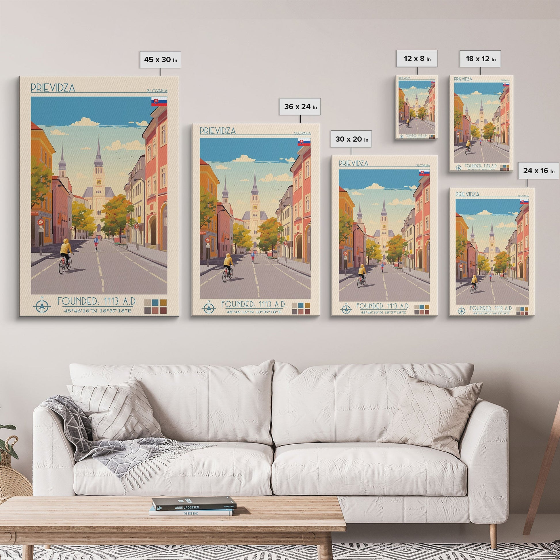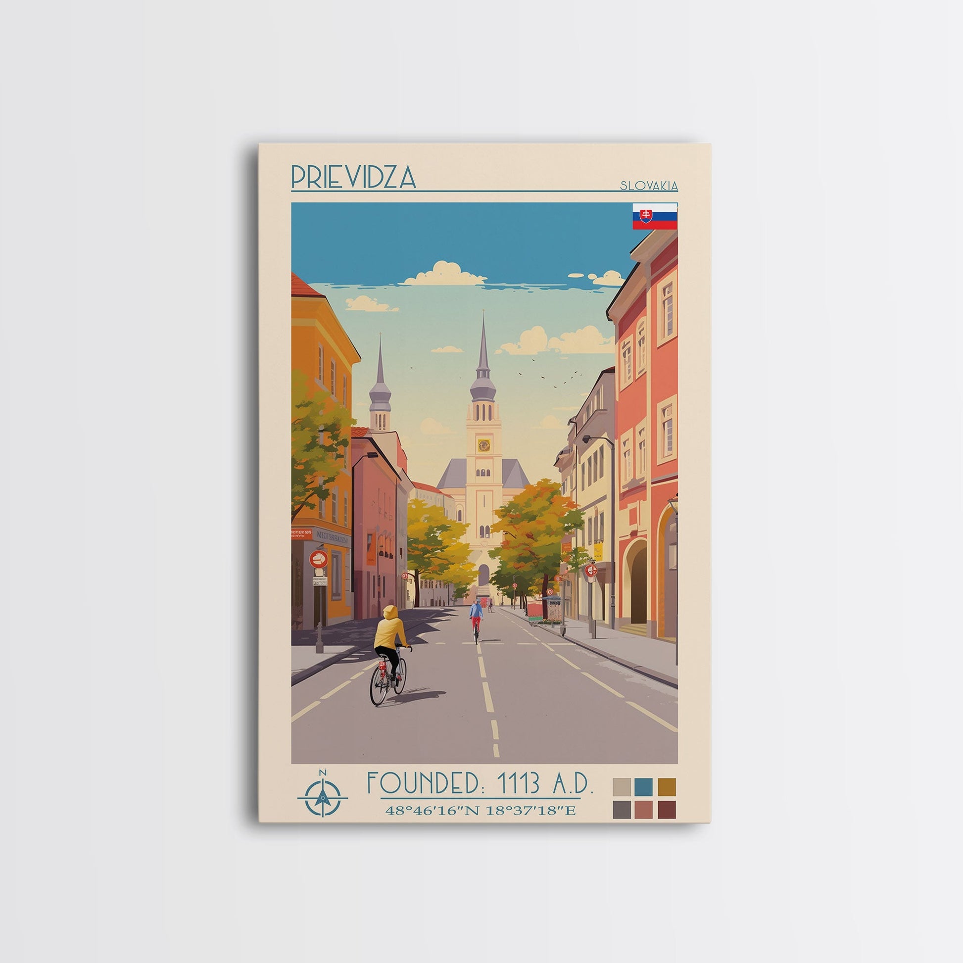 Prievidza Slovakia Travel Poster Framed Canvas Print, Midcentury Modern Art, Pop Art Wall Decor, Scenic Wall Art, Living Room Decoration, Office Art